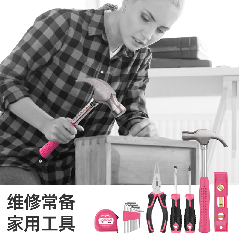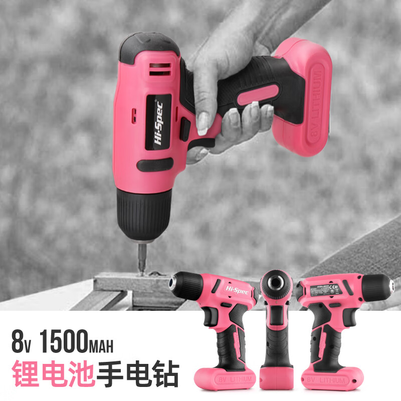 KSHKHispec household multifunctional electric drill set electric screwdriver hardware tool box set home repair combination pink 8V lithium electric drill tool box fairy hands-on model