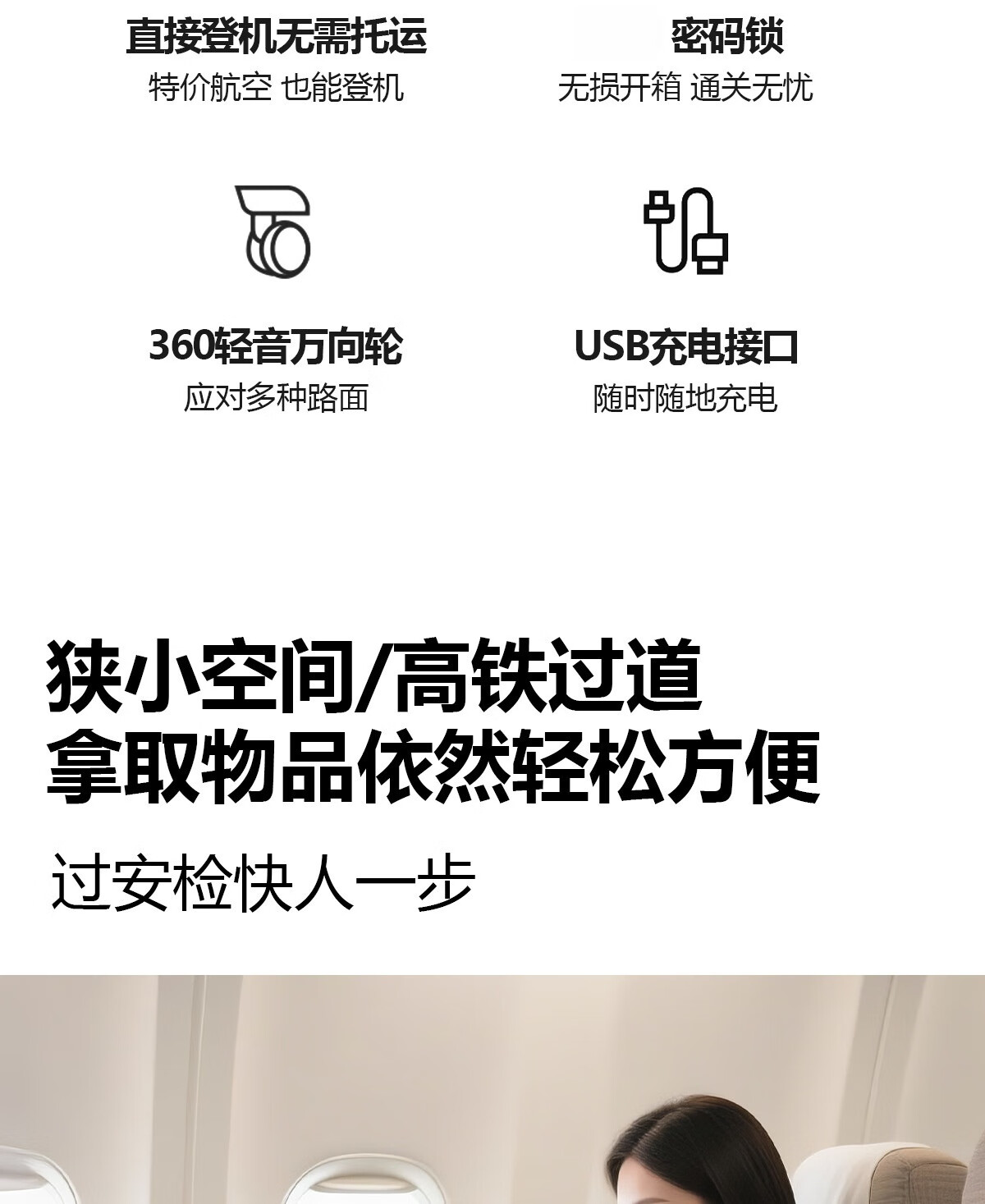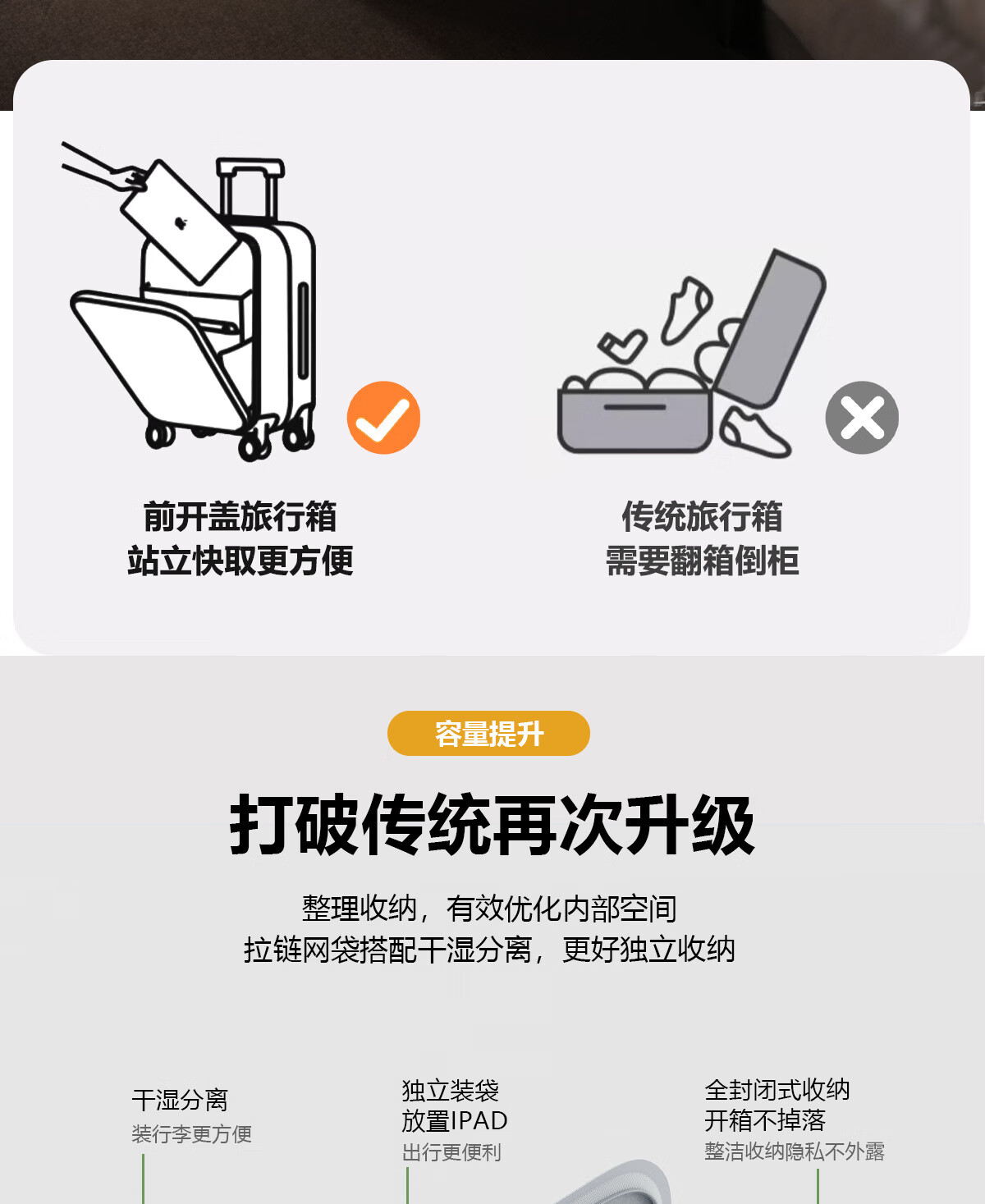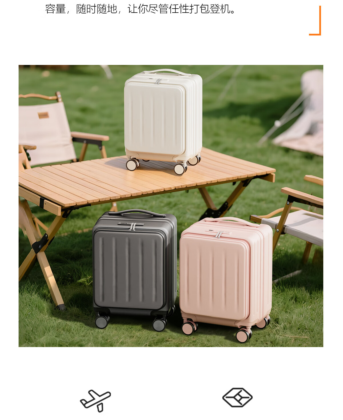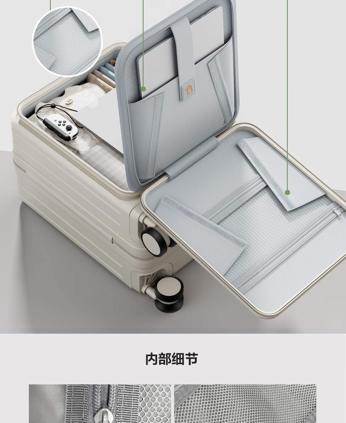 Kangaroo (KANGAROO) 14-inch suitcase can get on the plane, front opening boarding case, small lightweight portable trolley case, low-cost airline business trip suitcase, ivory white - front opening computer compartment - USB charging interface 14 inches, free of charge for airlines