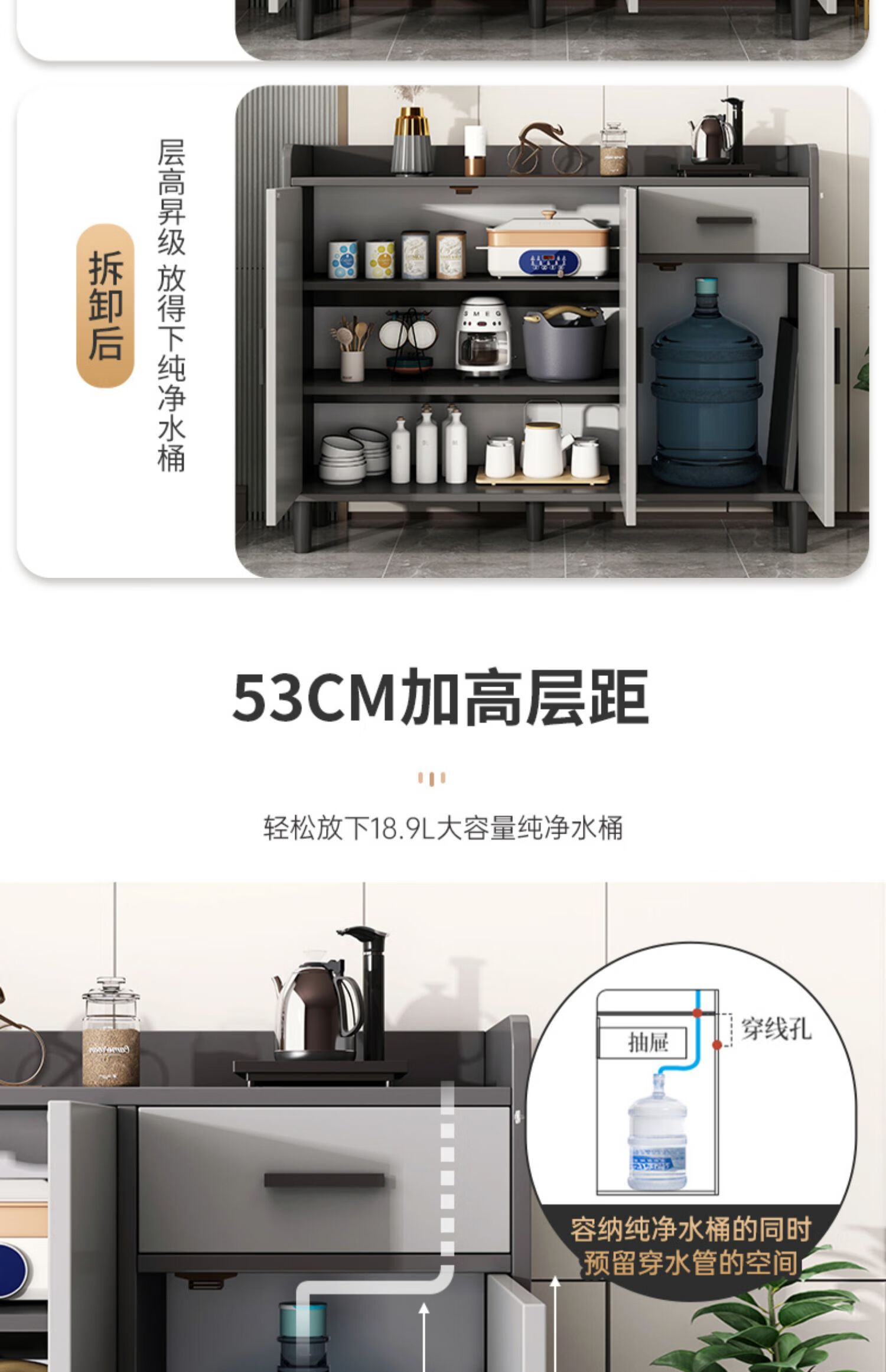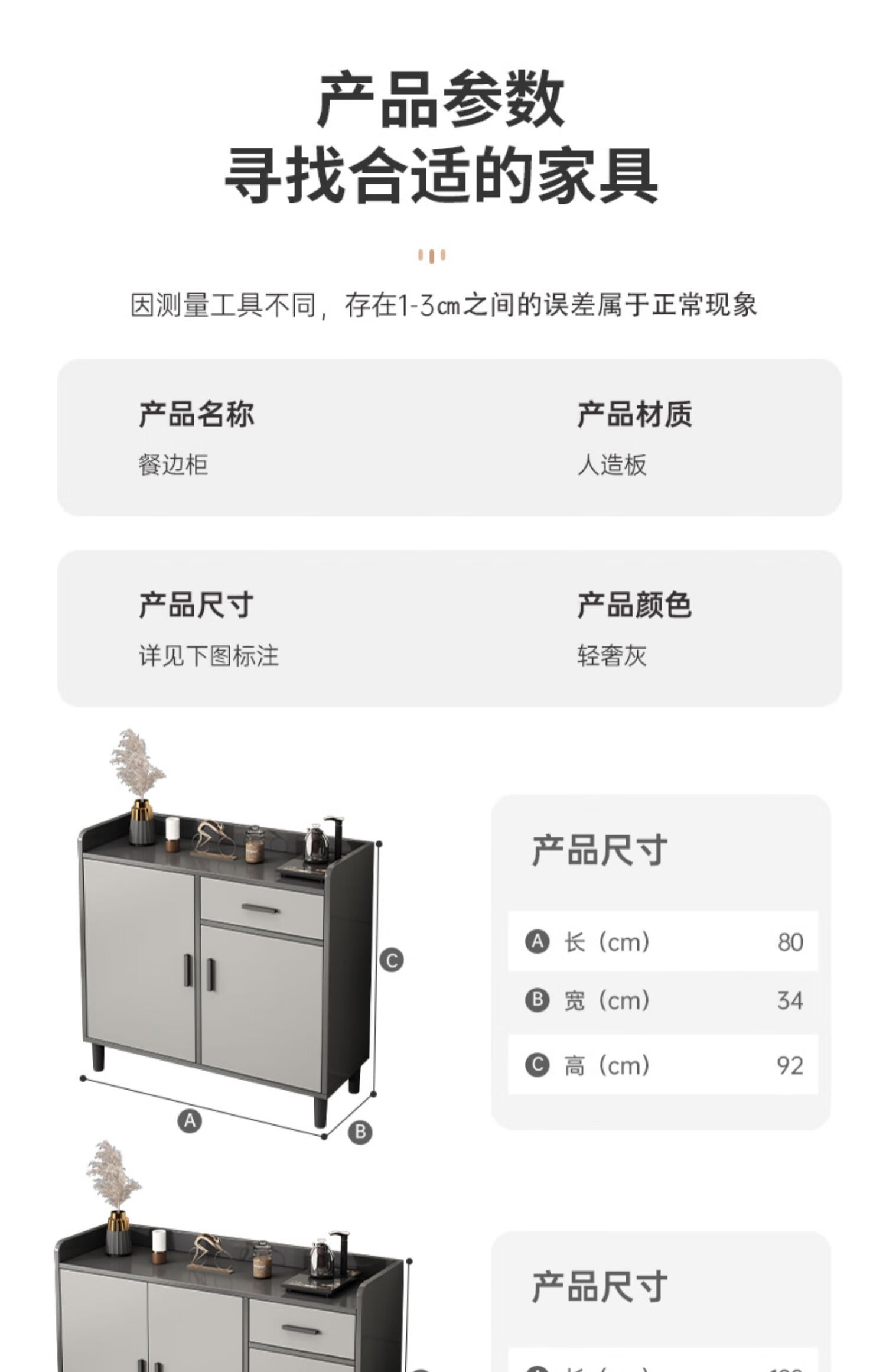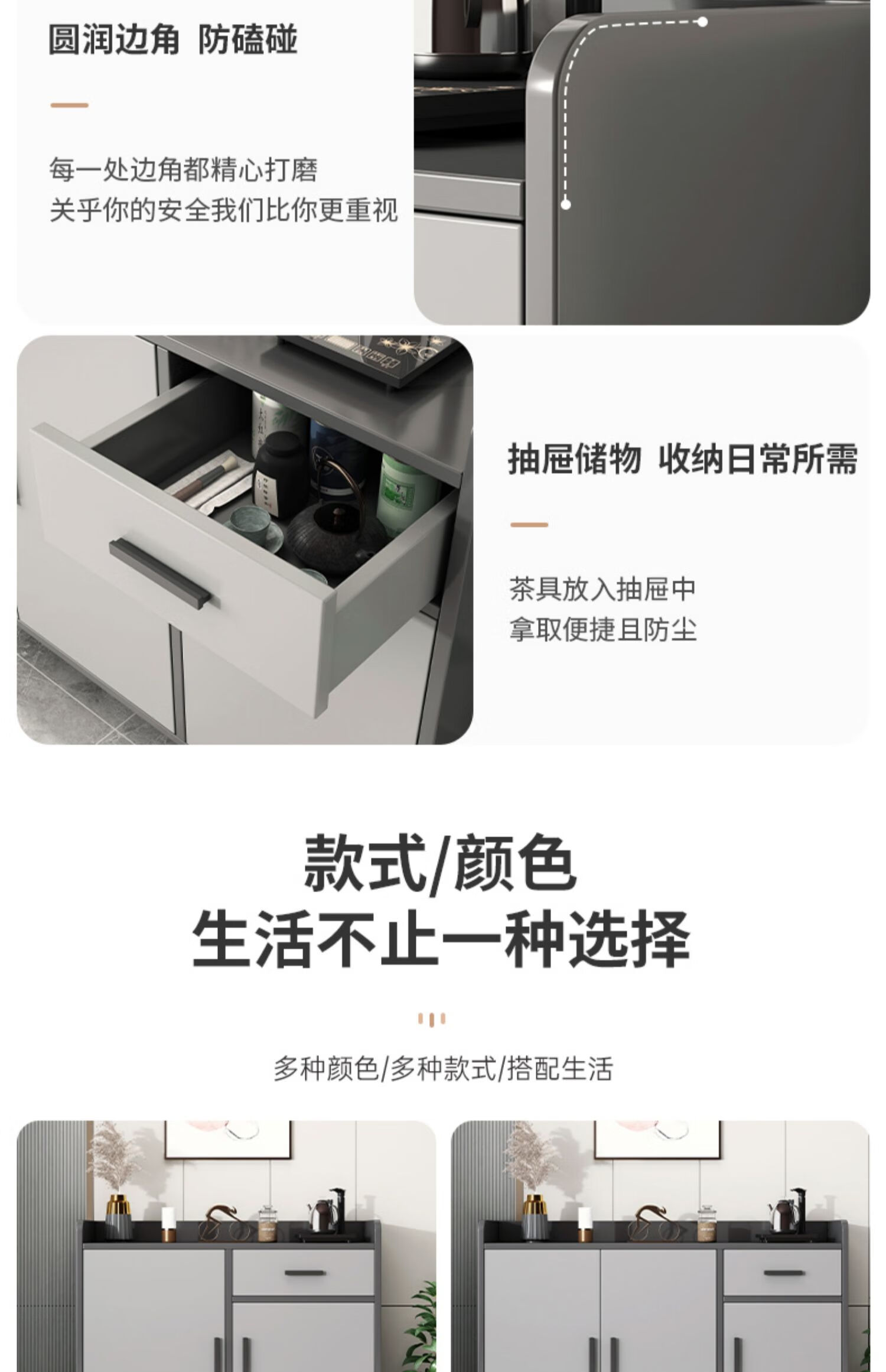 Tea cabinet storage cabinet modern minimalist living room side cabinet storage cabinet wall-mounted integrated storage cabinet household small cabinet visible cabinet door light luxury gray 80*34*92CM
