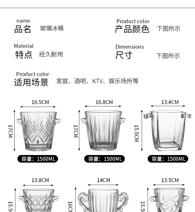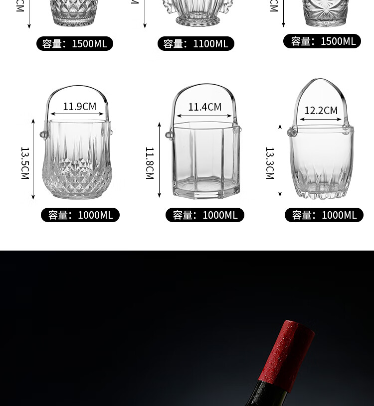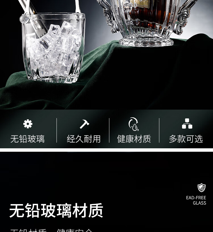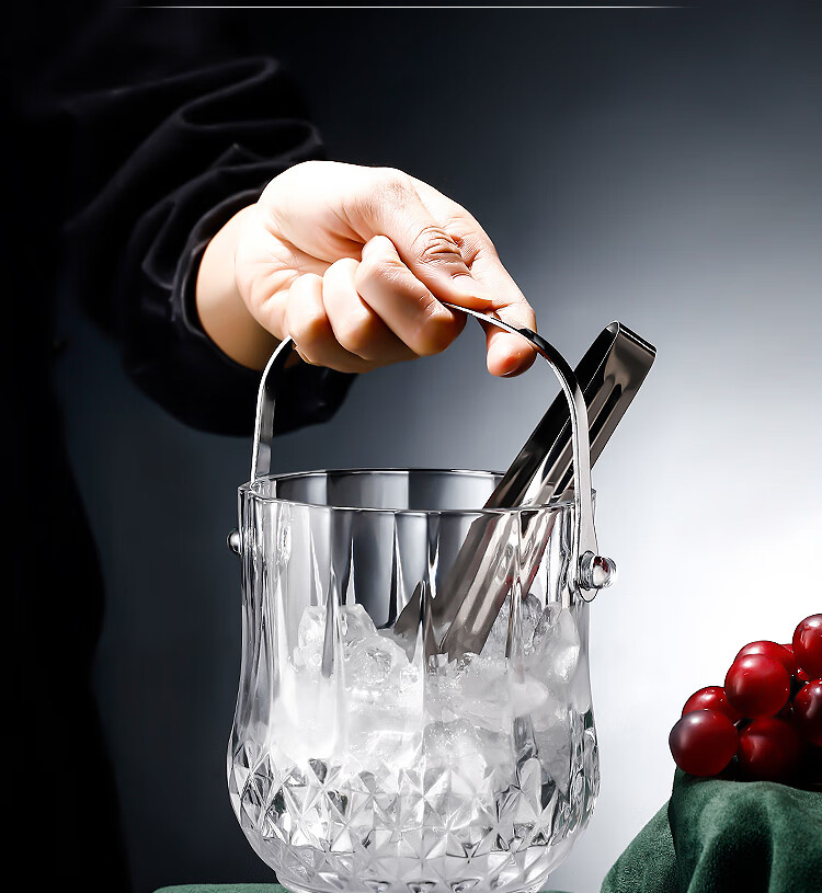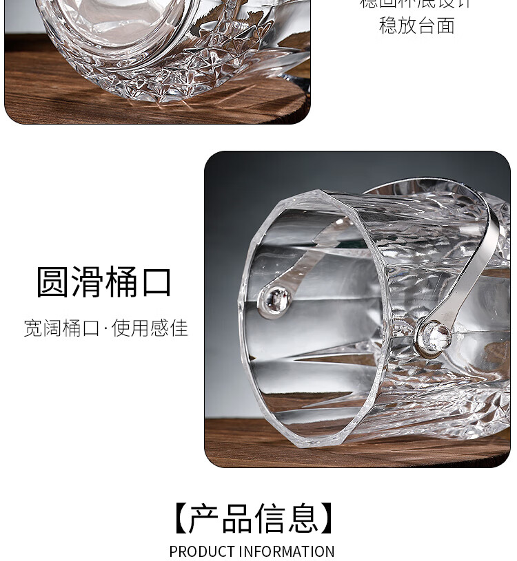 Tuojin Germany imported quality thickened glass ice bucket insulated red wine beer ice bucket KTV bar size small ice cube No. 1 diamond glass ice bucket