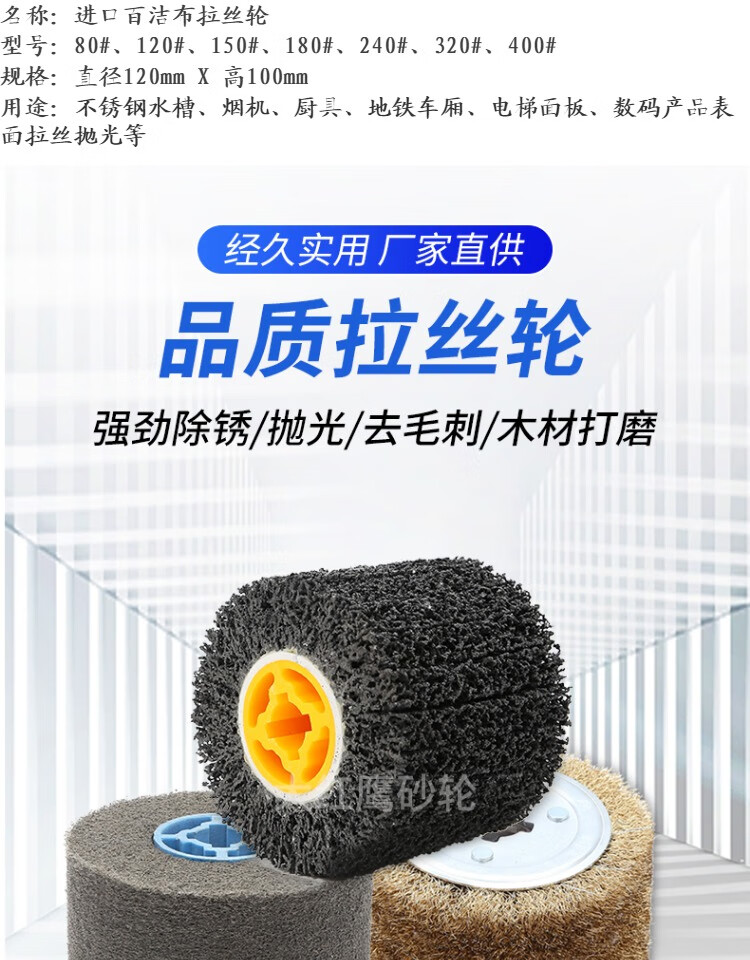 He Jiagong drawing wheel scouring pad wheel metal stainless steel special aluminum iron alloy polishing wheel drawing machine metal drawing wheel yellow thick drawing wheel 46# wear-resistant model