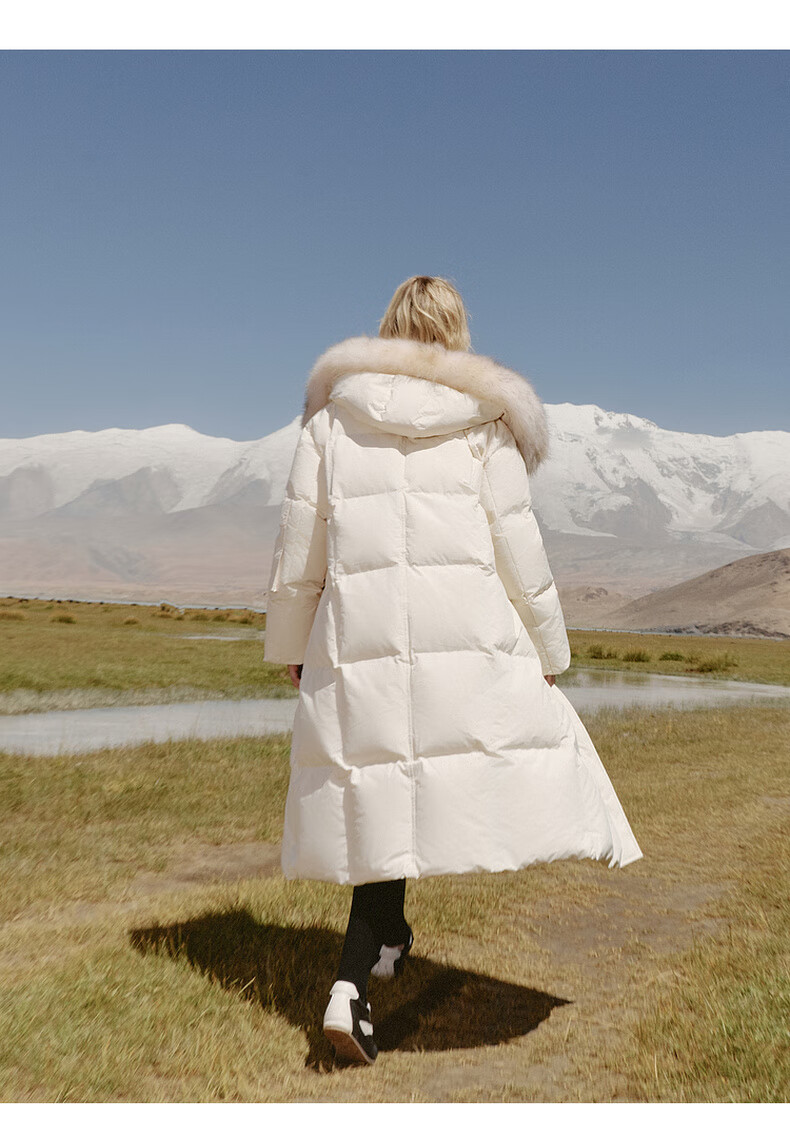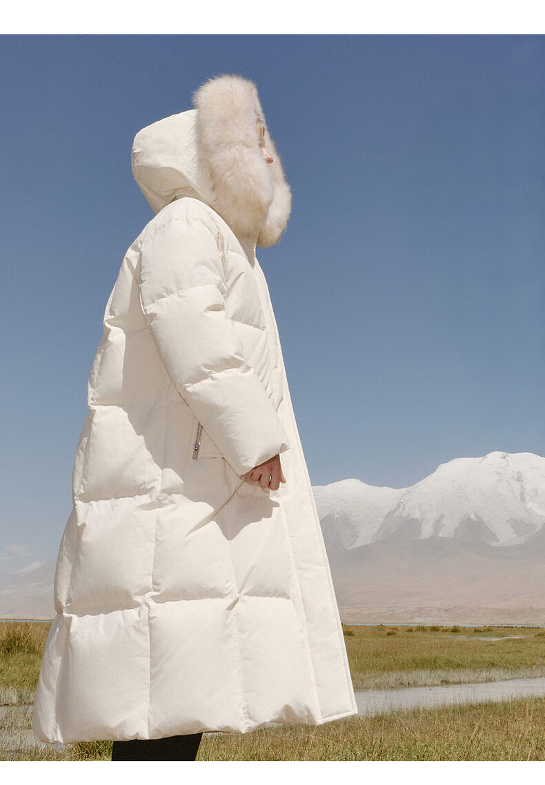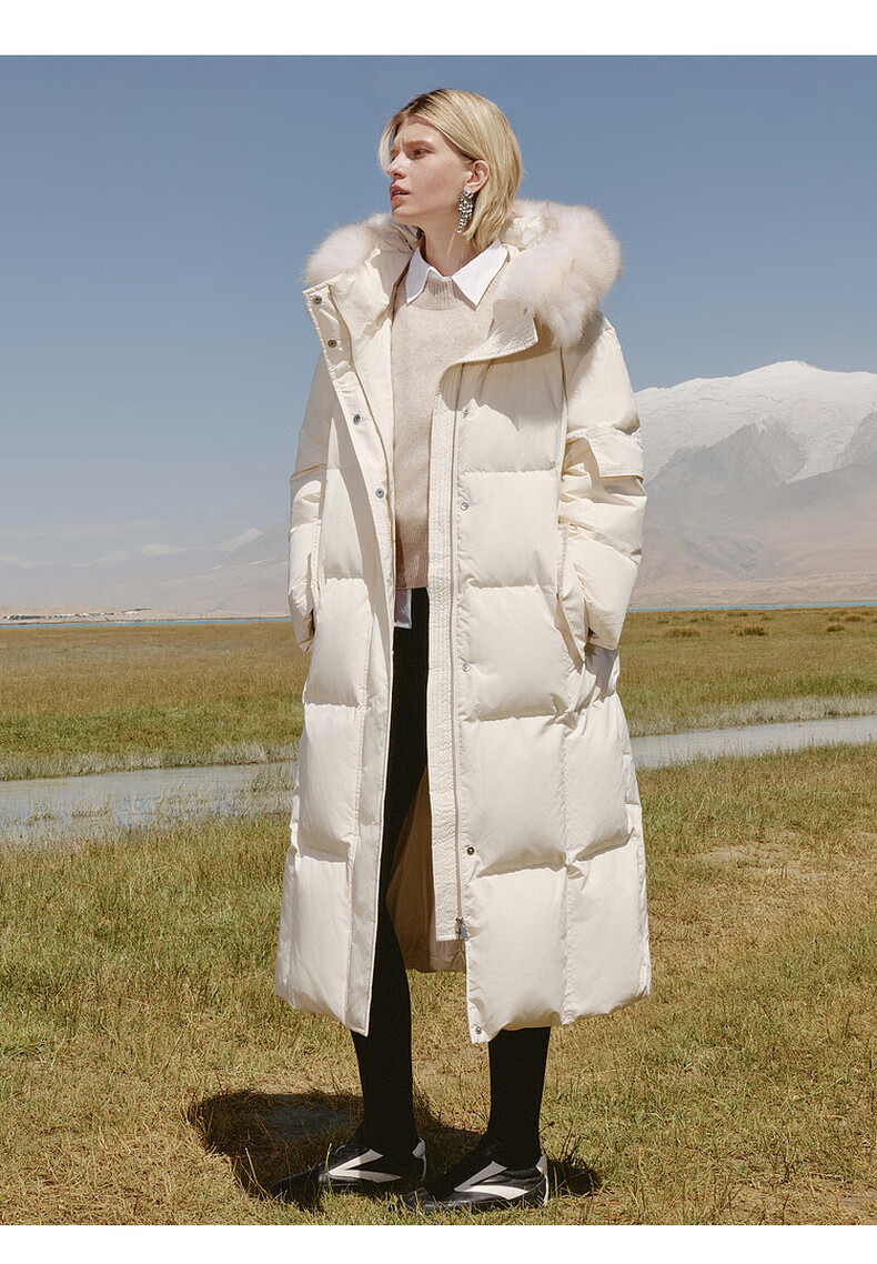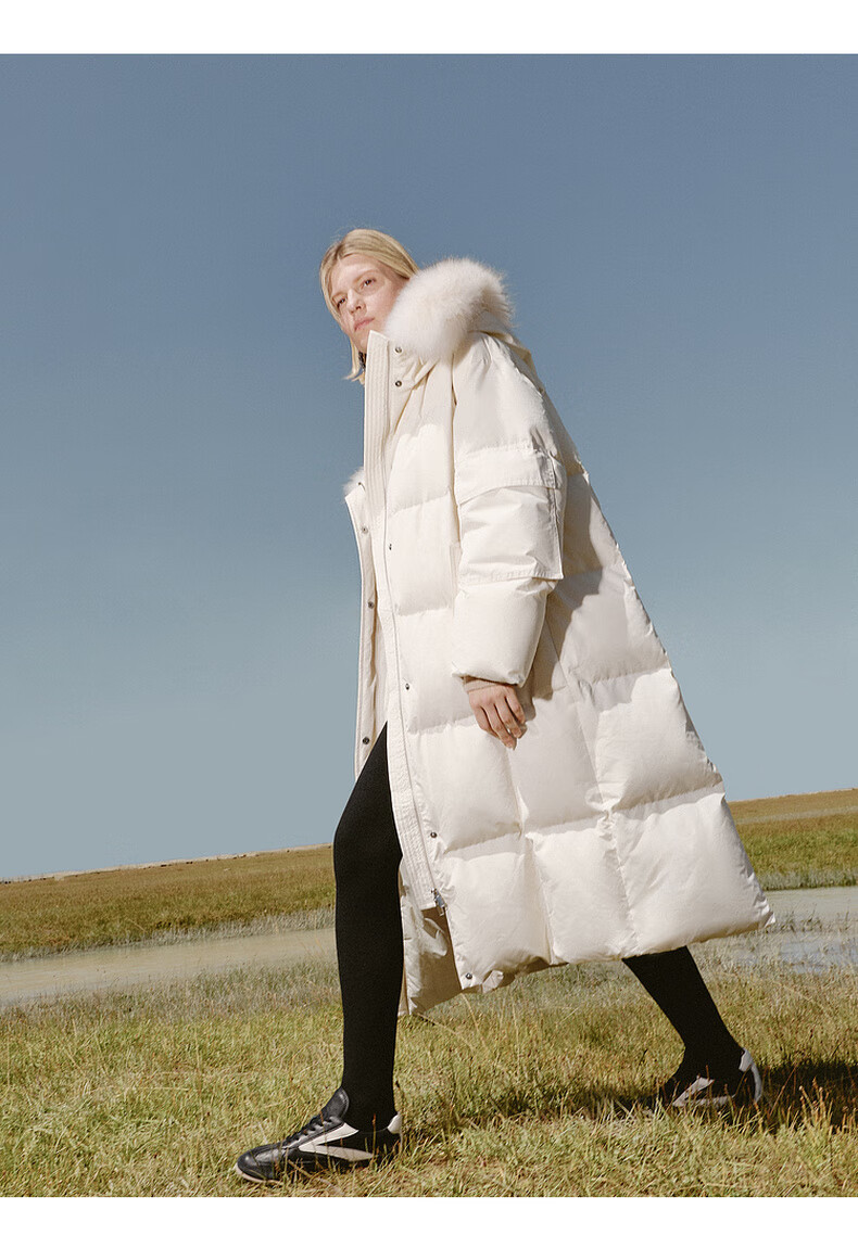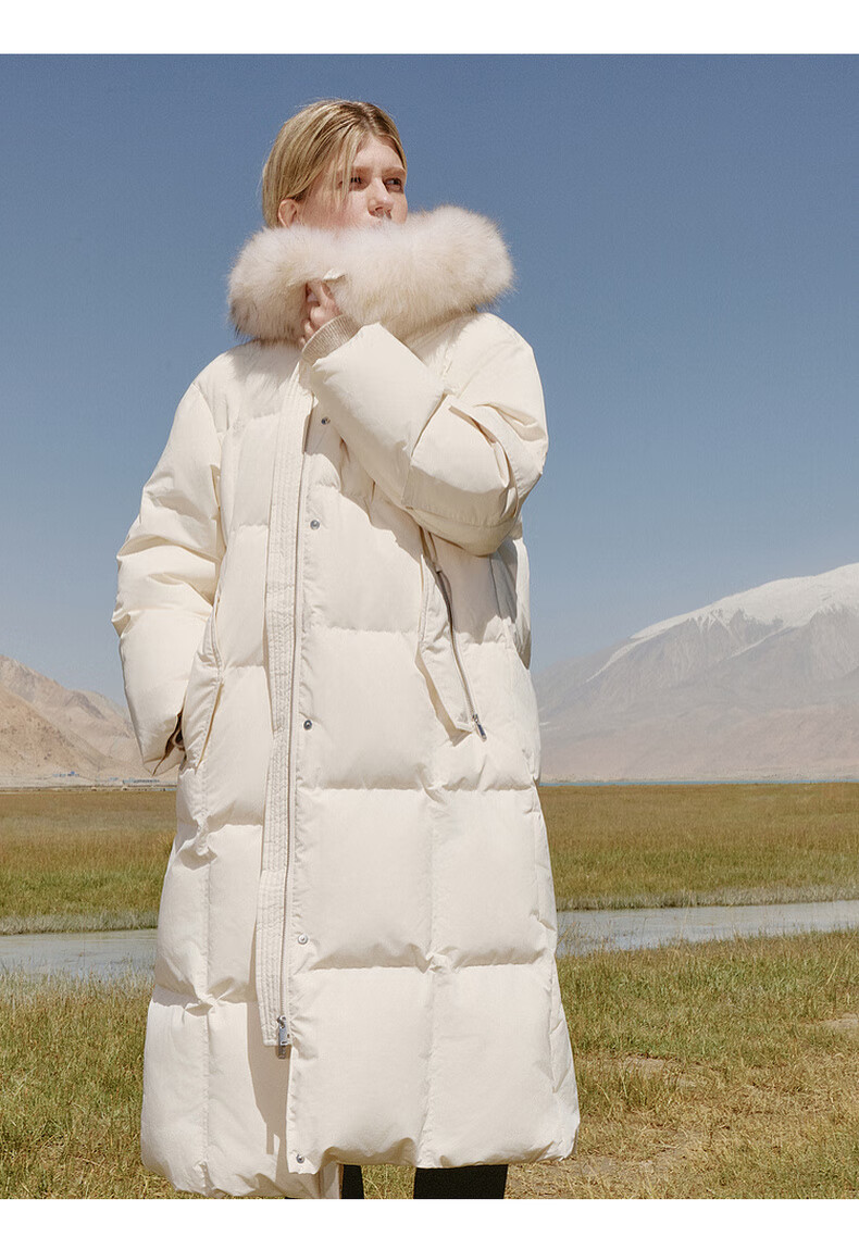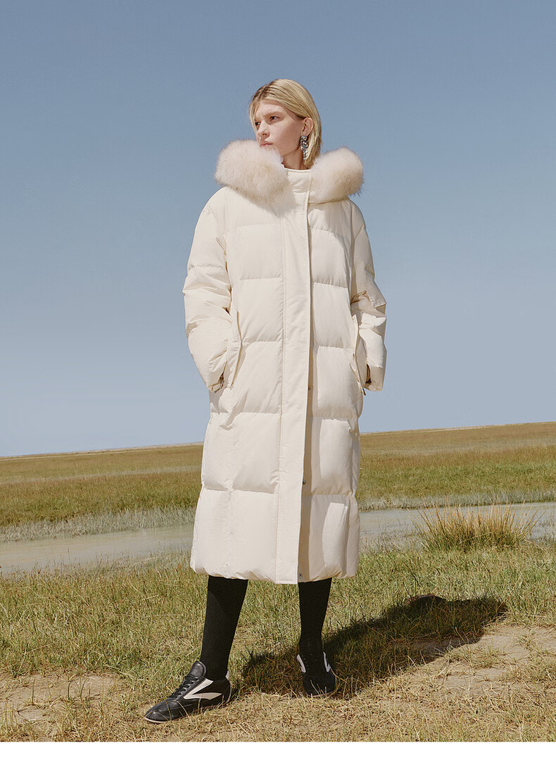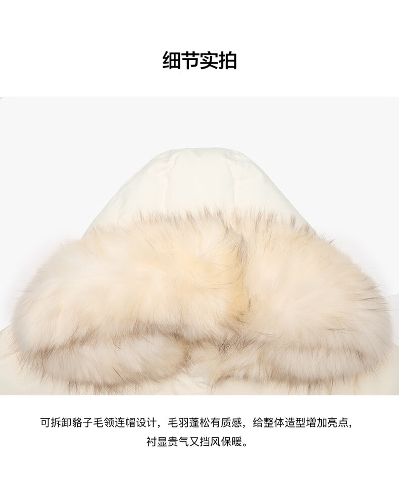 Edition down jacket women's raccoon fur collar hooded long windproof light warm goose down jacket beige color S size is a bit large, it is recommended to order one size smaller