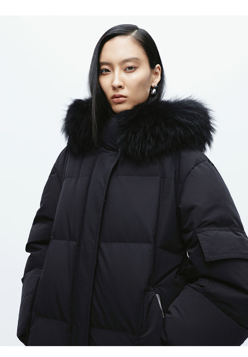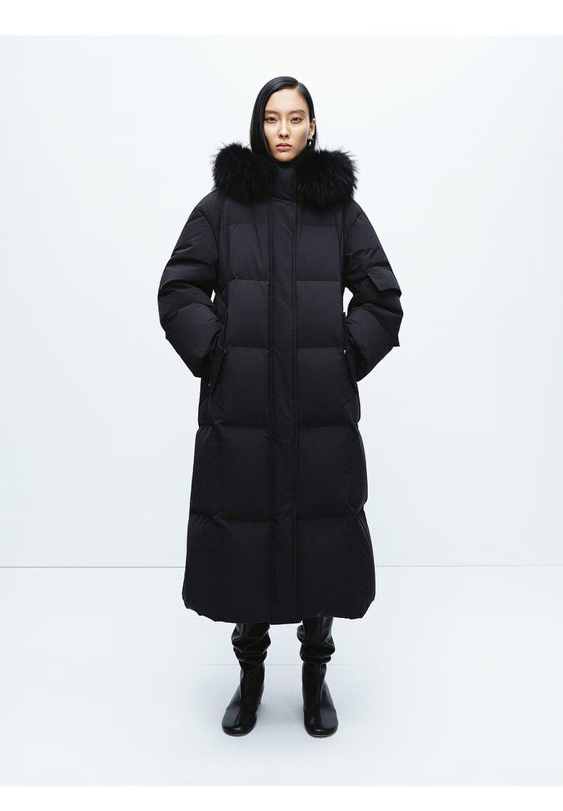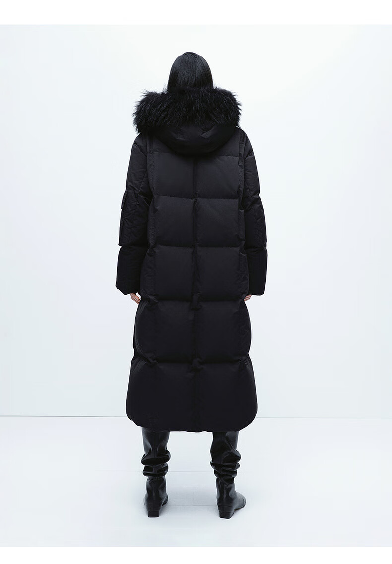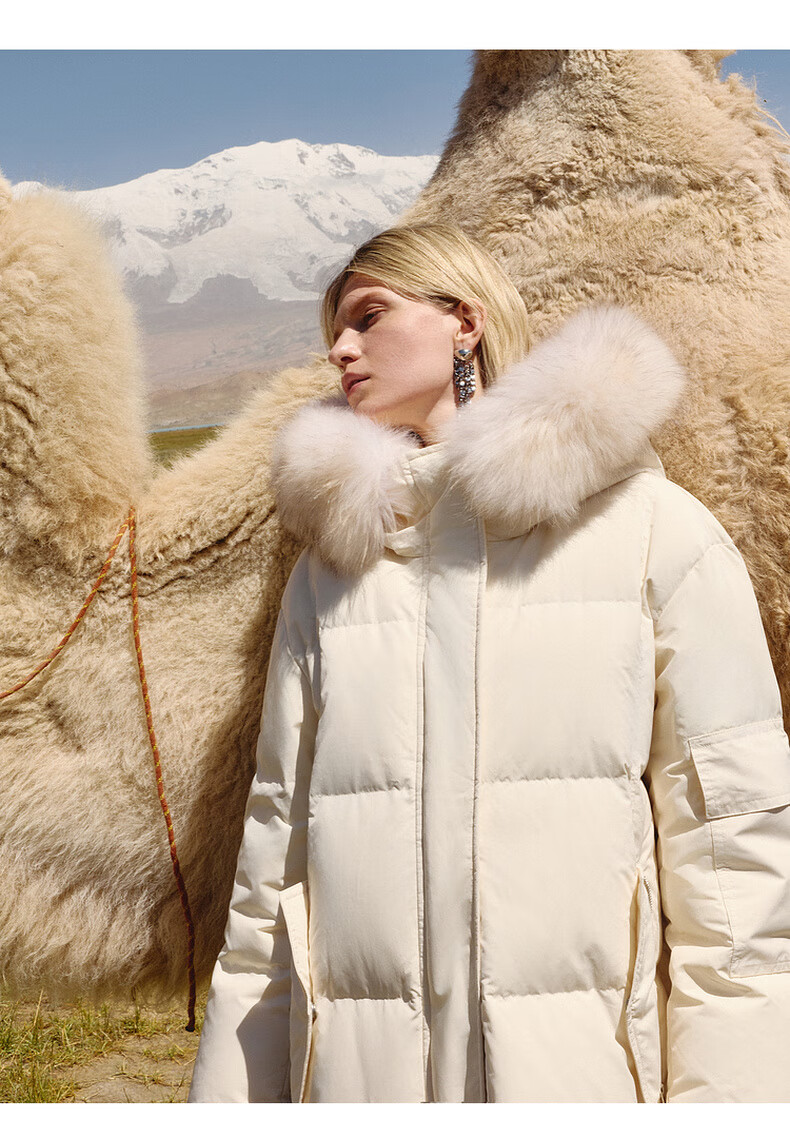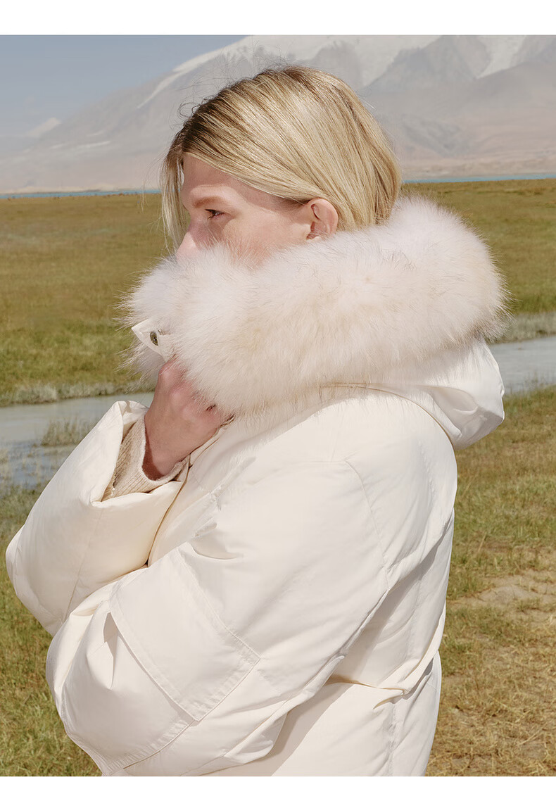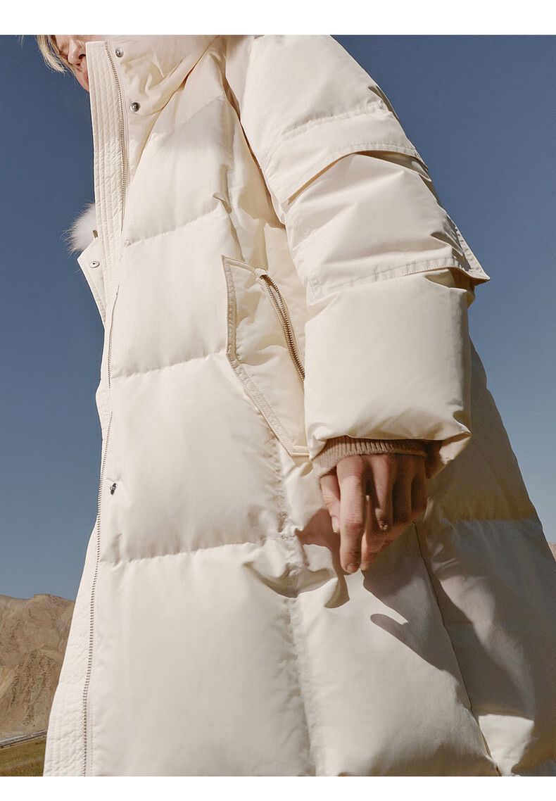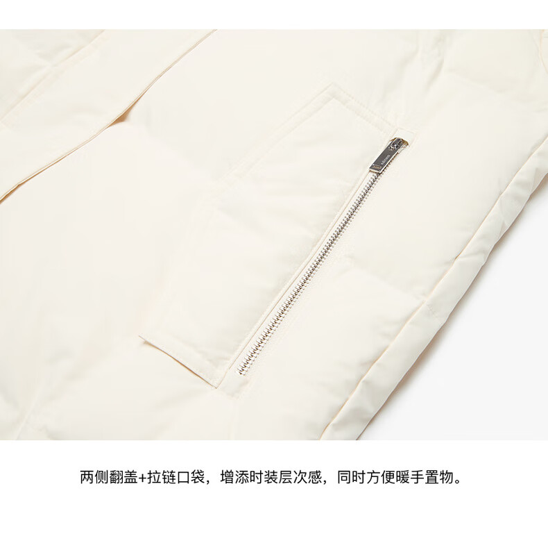 Edition down jacket women's raccoon fur collar hooded long windproof light warm goose down jacket beige color S size is a bit large, it is recommended to order one size smaller