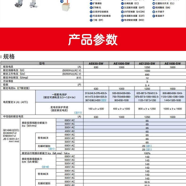 Mitsubishi frame circuit breaker AE1000-1250A-1600A2000A2500A3200A- AE1000SW3P1000A drawer type 65kA