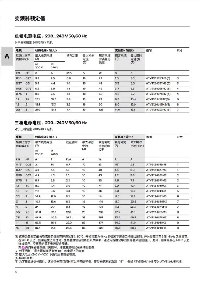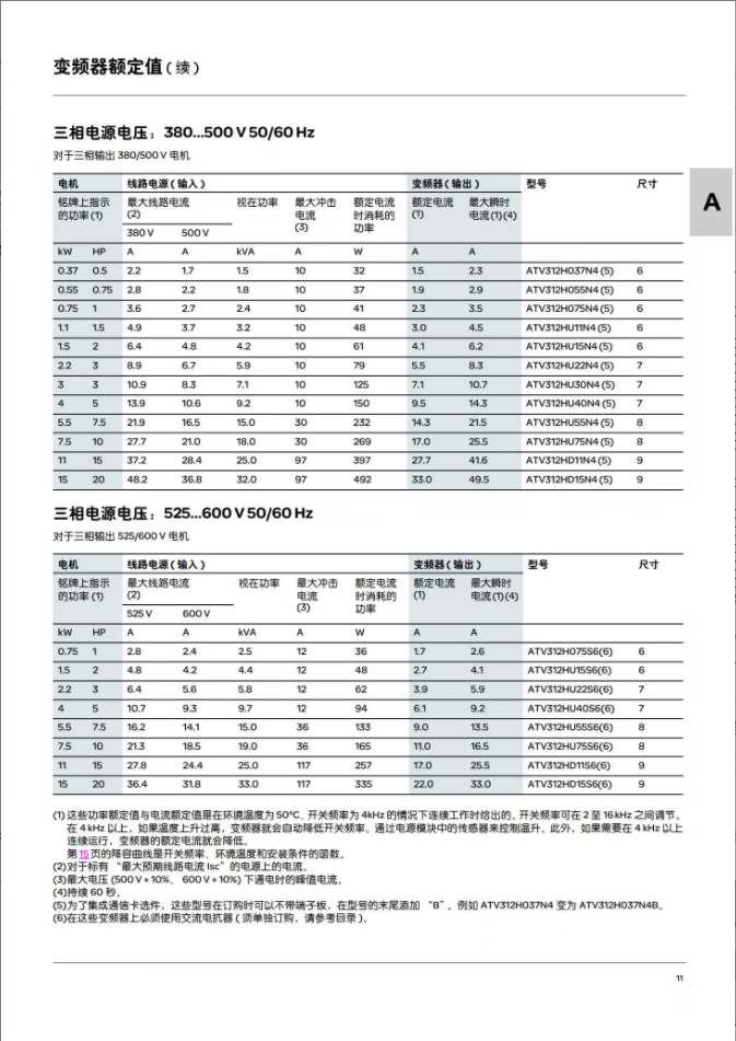 Schneider ATV312HU22N4/HU30N4/HU40N4/HU55N4/HU75N4/HD11N4 ATV312HD15N415KW