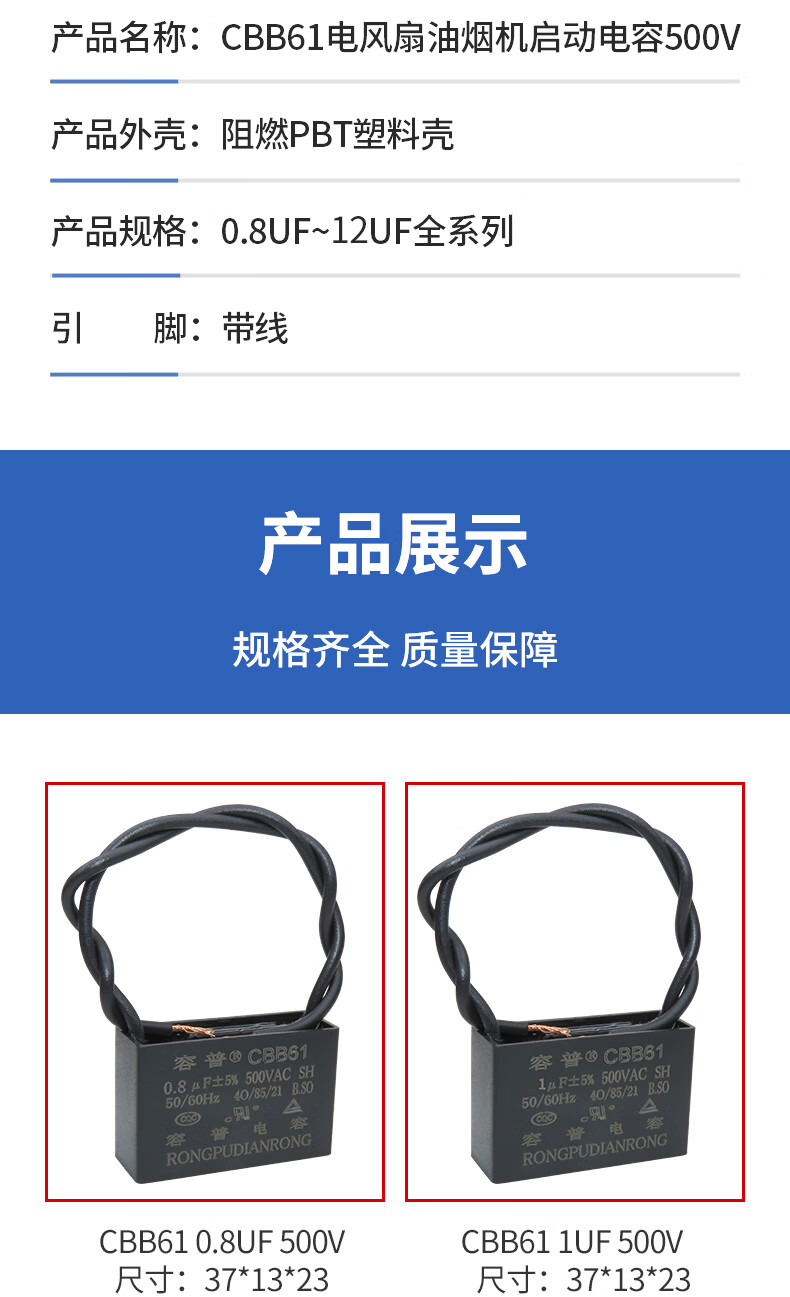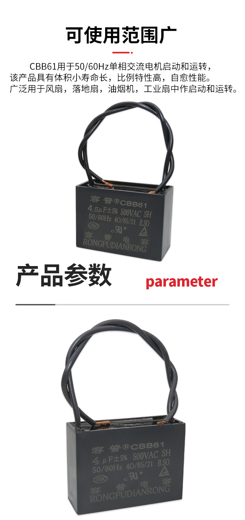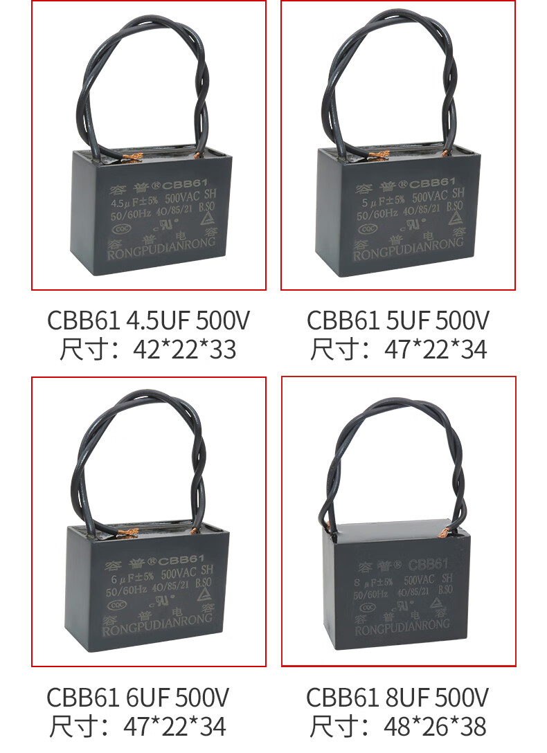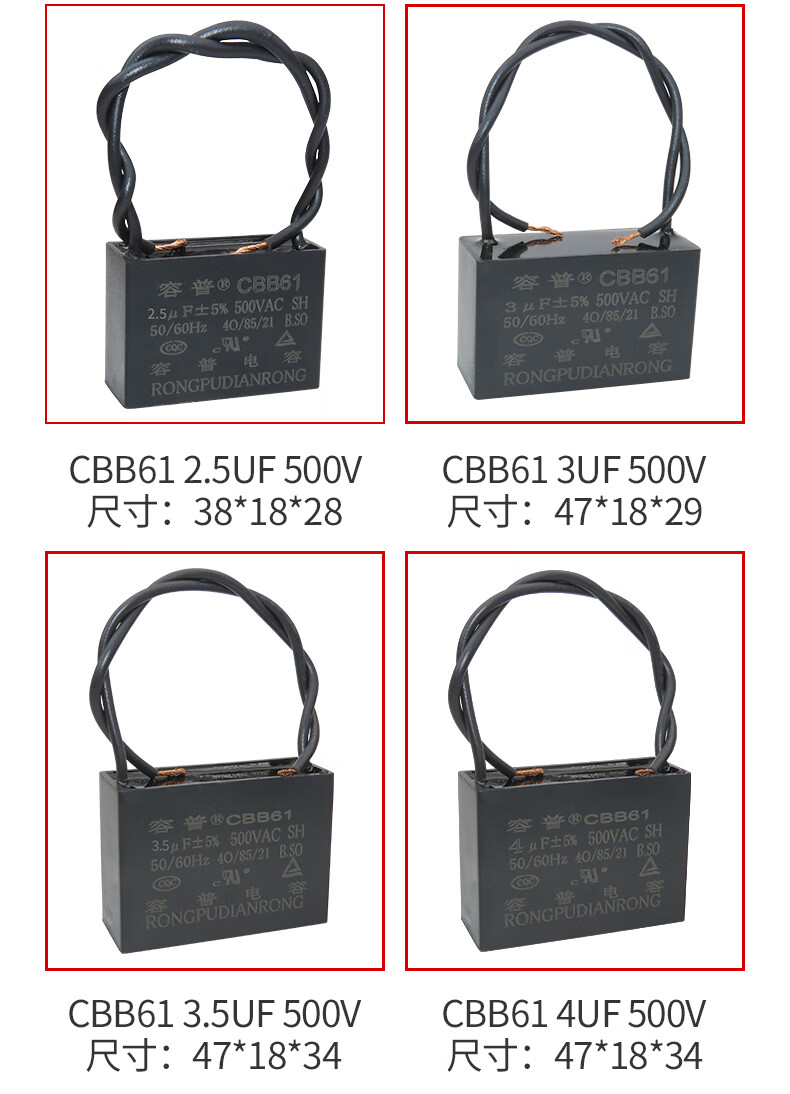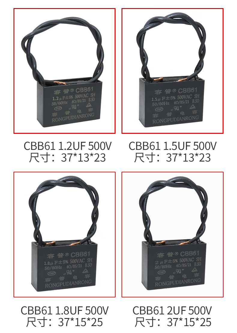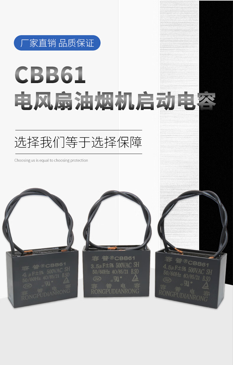 CBB61 fan ceiling fan range hood starting capacitor 500V 0.8/1/1.5/1.8/2/2.5/3/4UF 2.5UF_500V