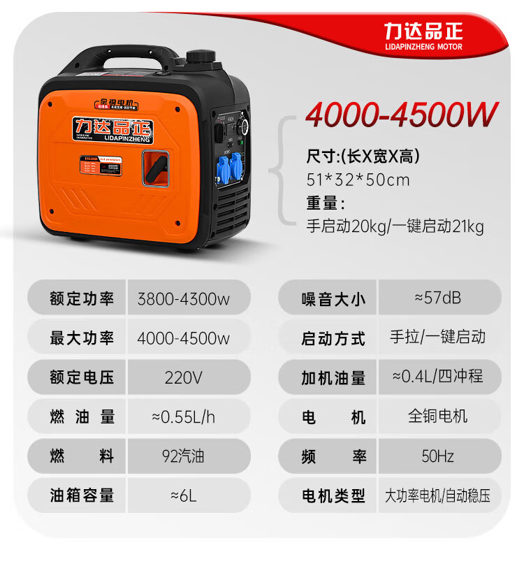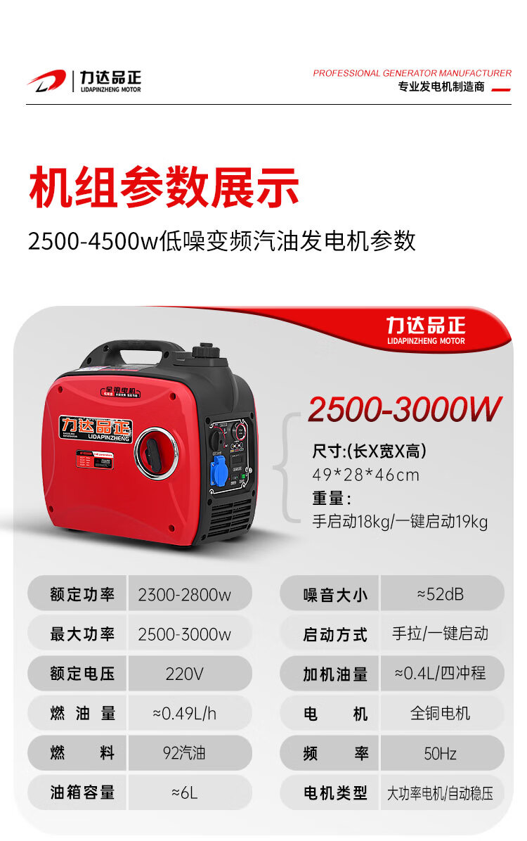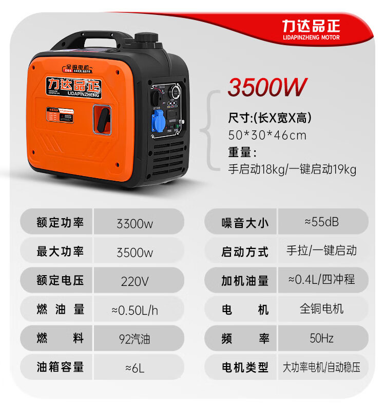 Lidapinzheng variable frequency gasoline generator single-phase 220V small household 2/3KW/4kW outdoor commercial convenient low noise 3000W-one-button start-variable frequency model-220V