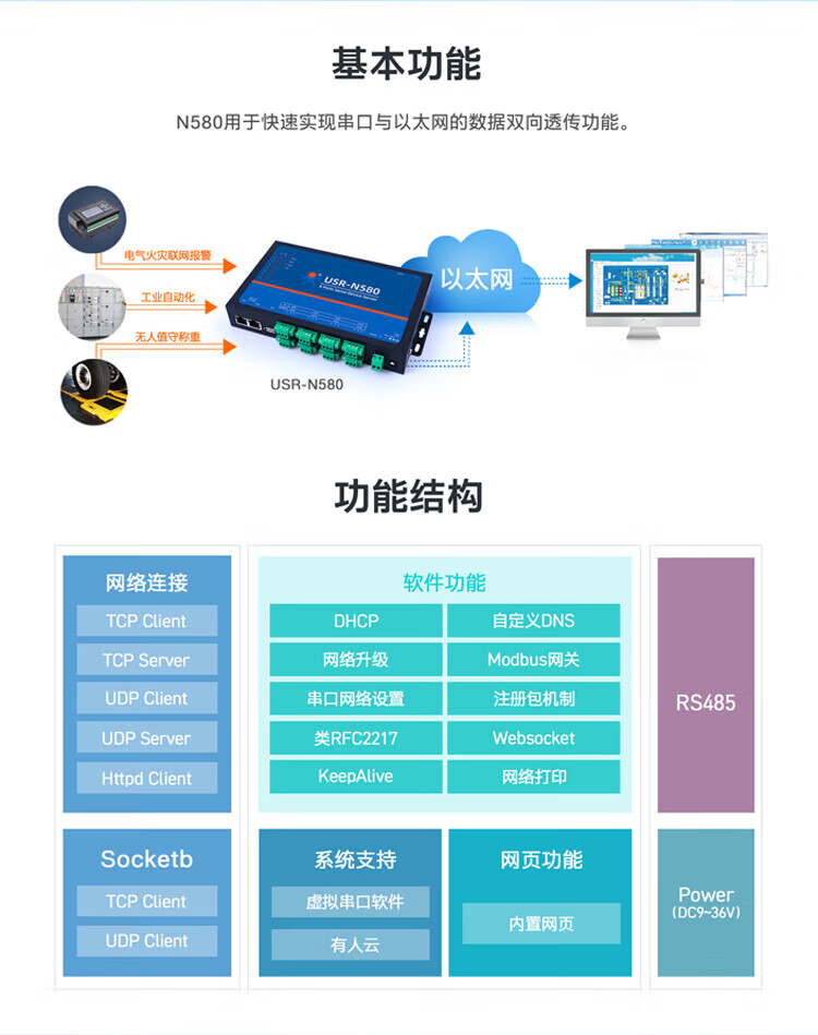 Someone's 8-channel serial port server RS485 to Ethernet industrial wireless network port module Internet of Things USR-N580 USR-N5808 channel 485 to Ethernet