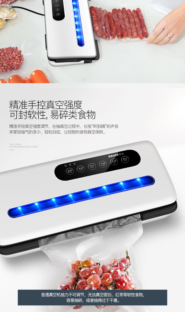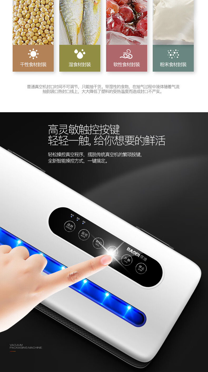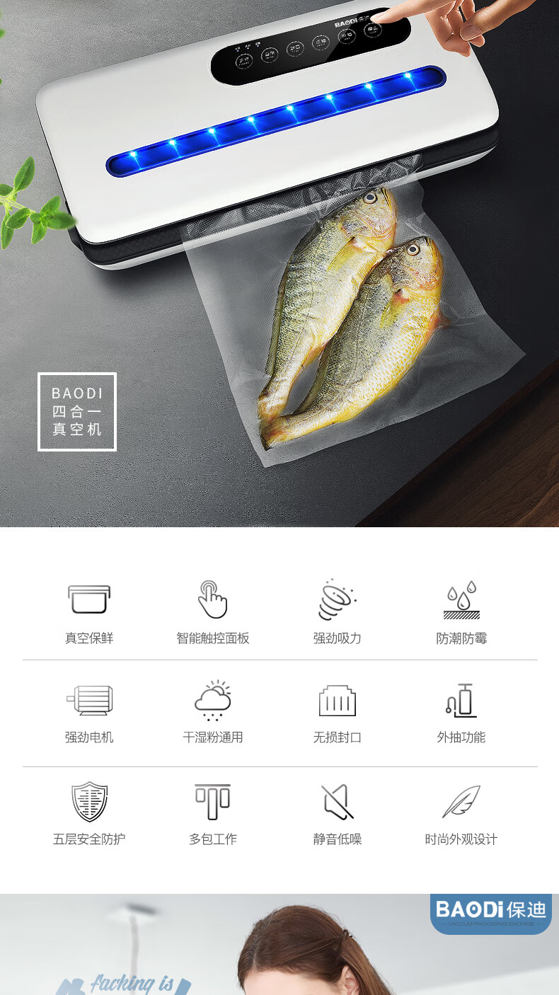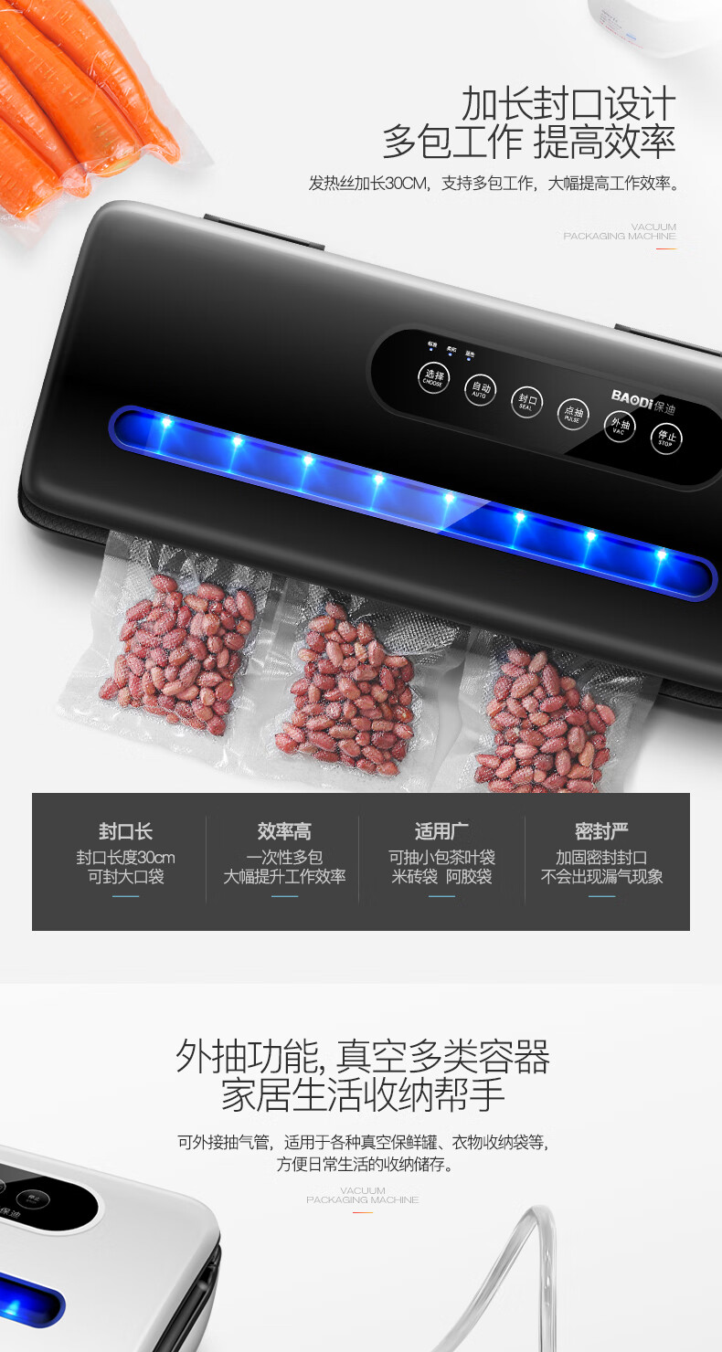 Yanuoju Baodi vacuum sealing machine food sealing and preservation machine vacuum machine packaging machine household vacuum machine small commercial basic model vacuum rate 99%-white