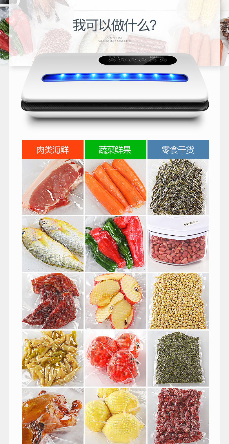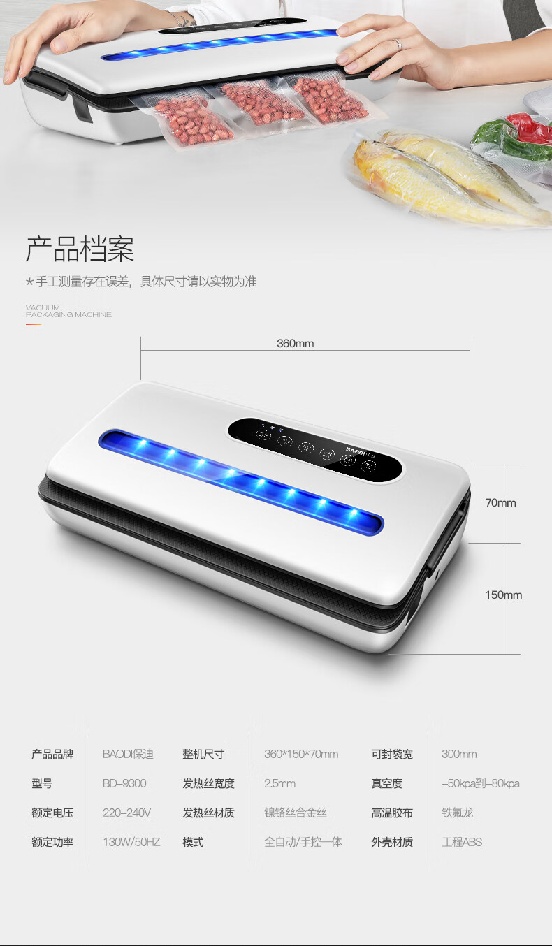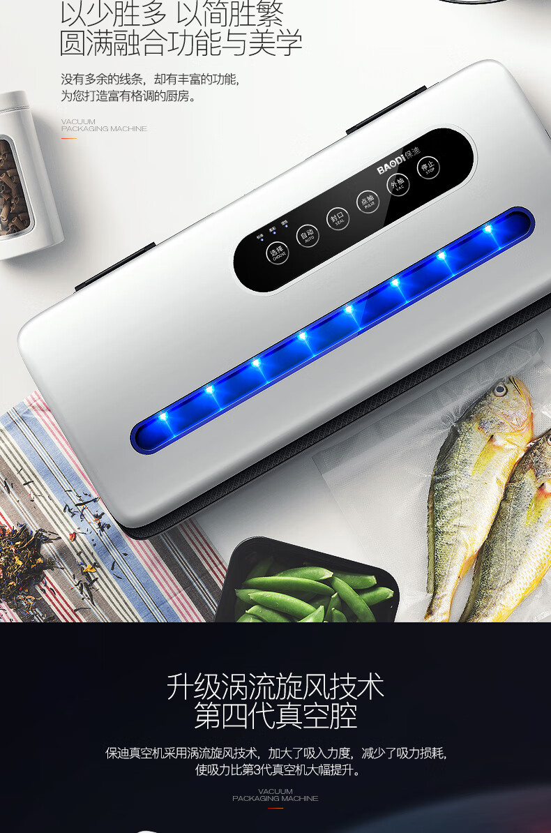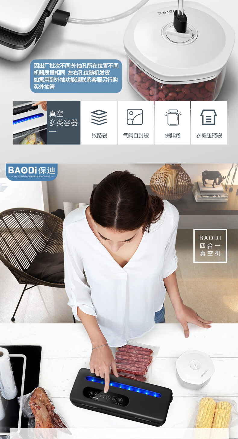 Yanuoju Baodi vacuum sealing machine food sealing and preservation machine vacuum machine packaging machine household vacuum machine small commercial basic model vacuum rate 99%-white