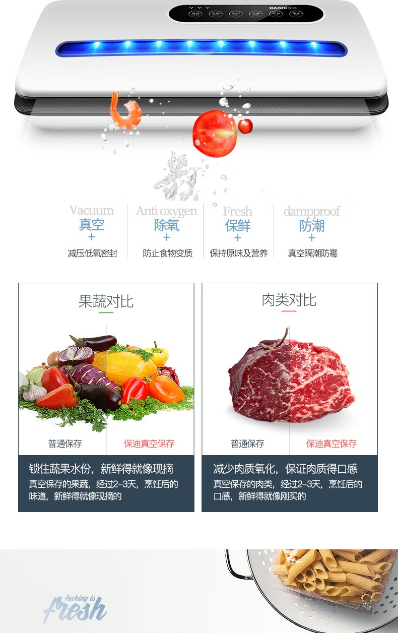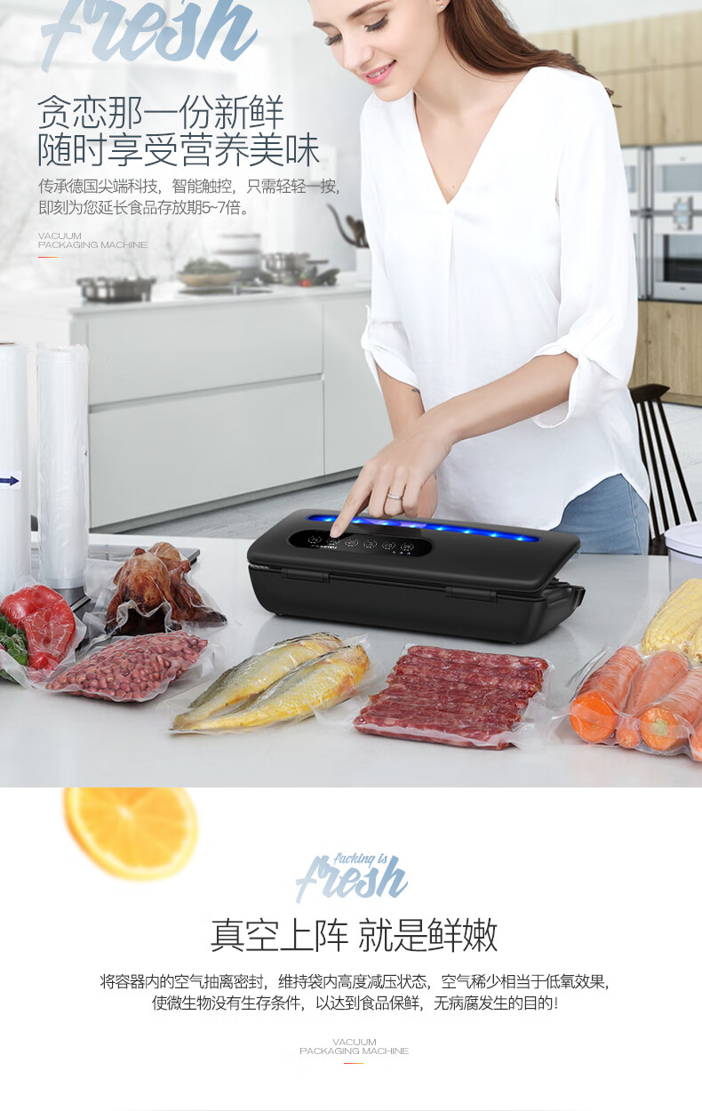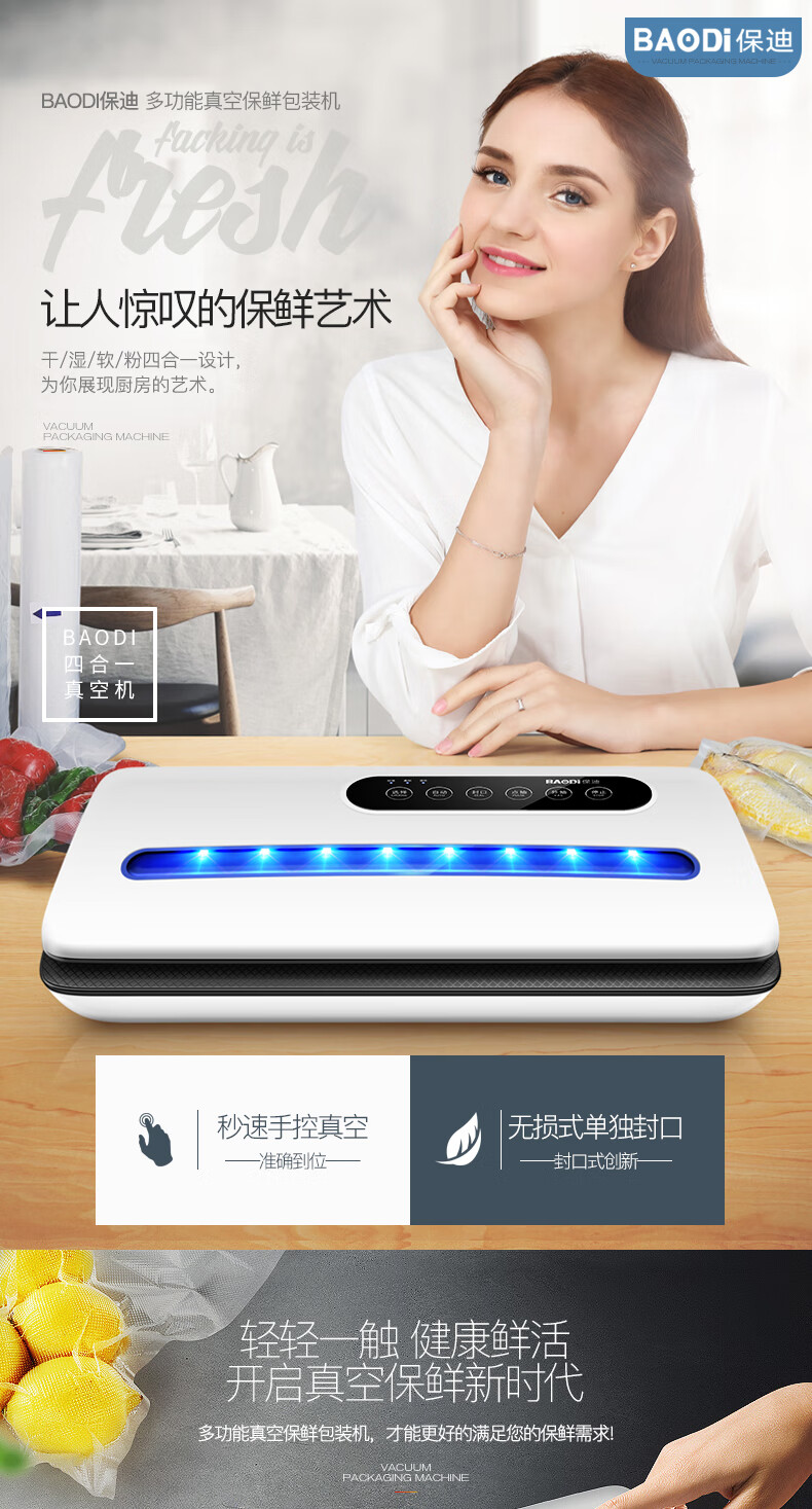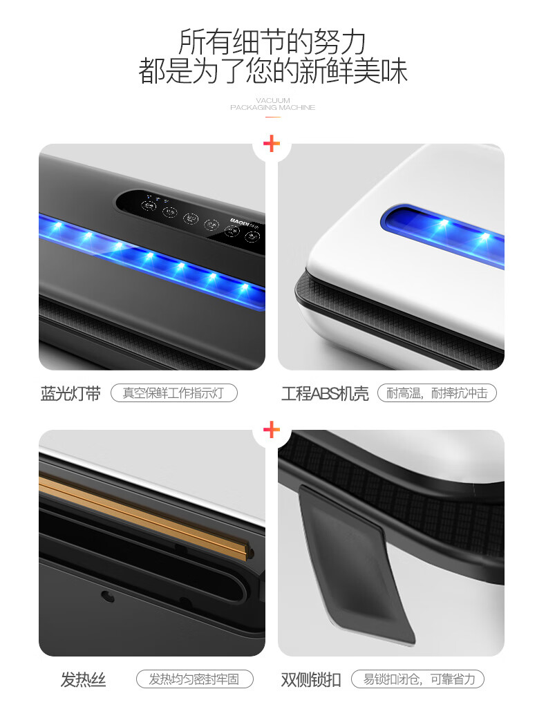 Yanuoju Baodi vacuum sealing machine food sealing and preservation machine vacuum machine packaging machine household vacuum machine small commercial basic model vacuum rate 99%-white