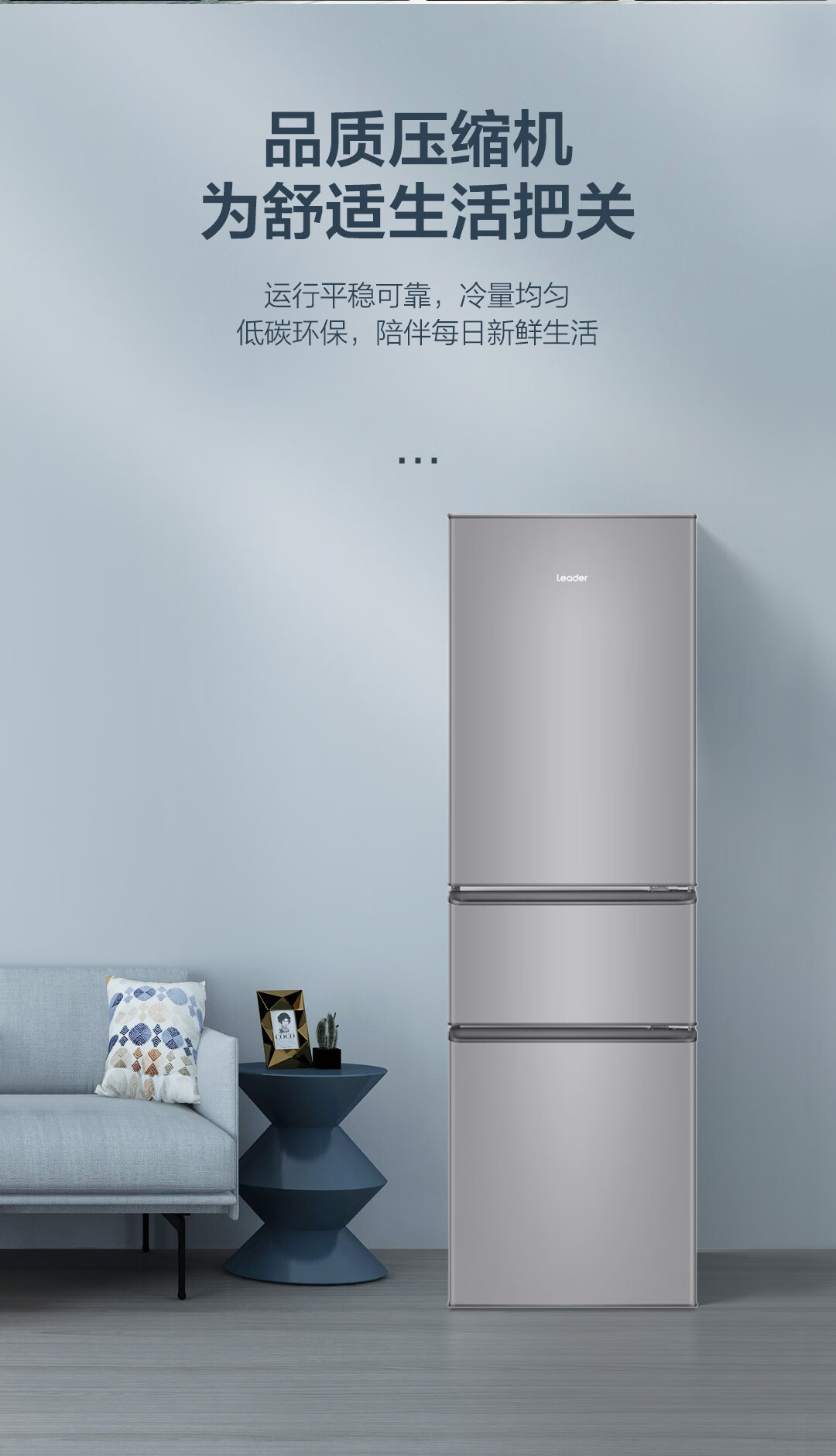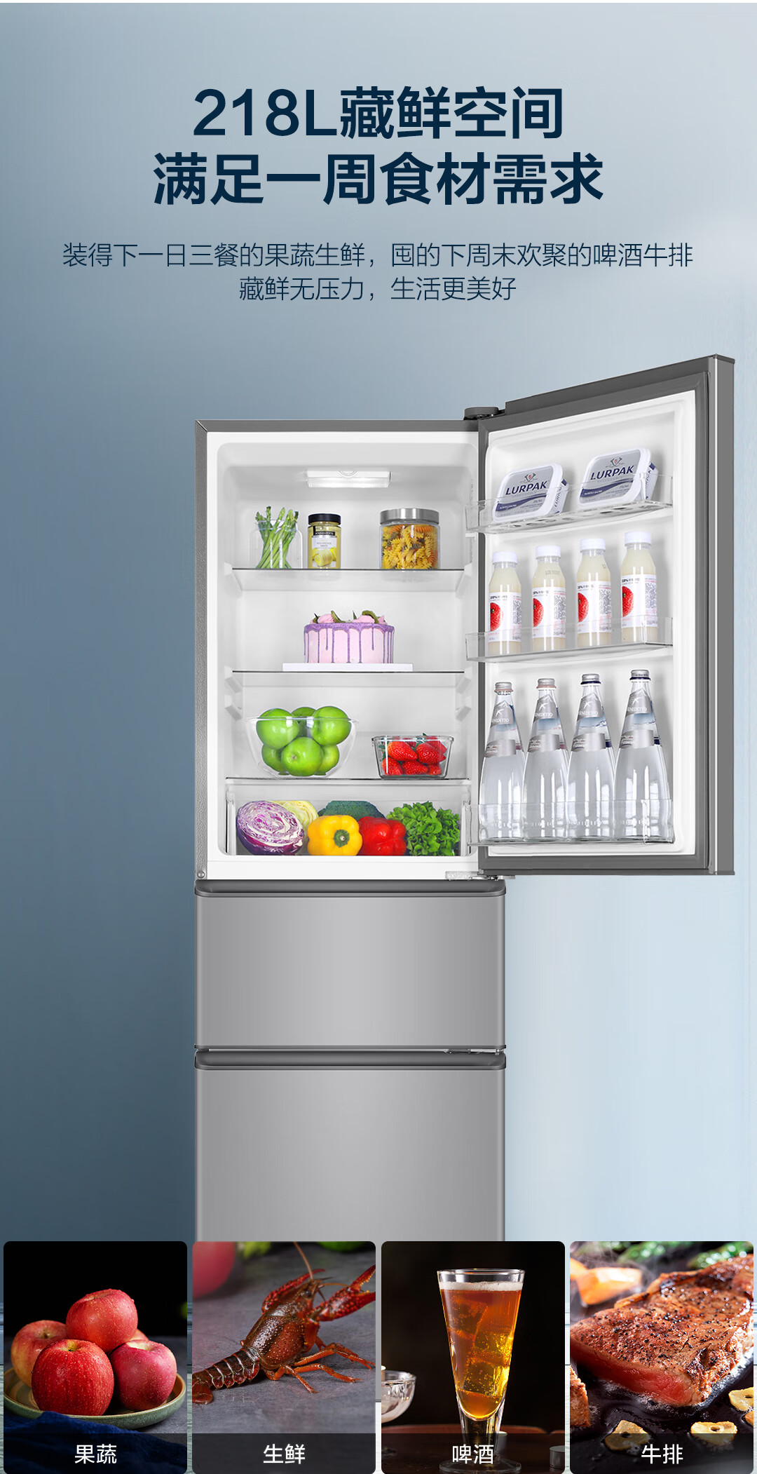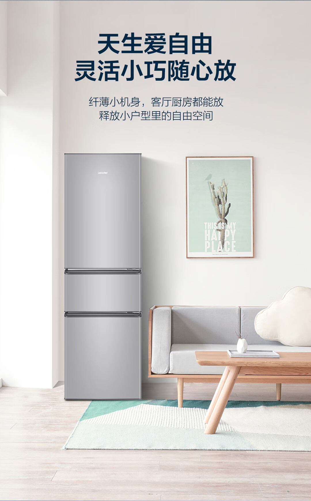 Haier refrigerator small three-door refrigerator household small refrigerator a new level of energy efficiency large capacity refrigerated freezing rental room electricity-saving refrigerator produced by Haier 218 liter three-door three-temperature household energy-saving and electricity-saving refrigerator