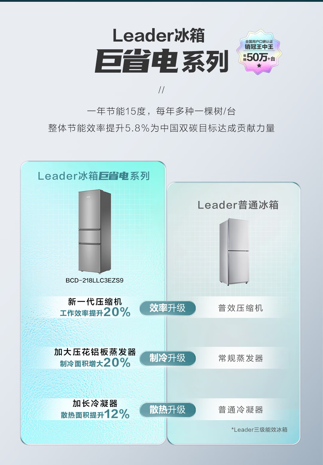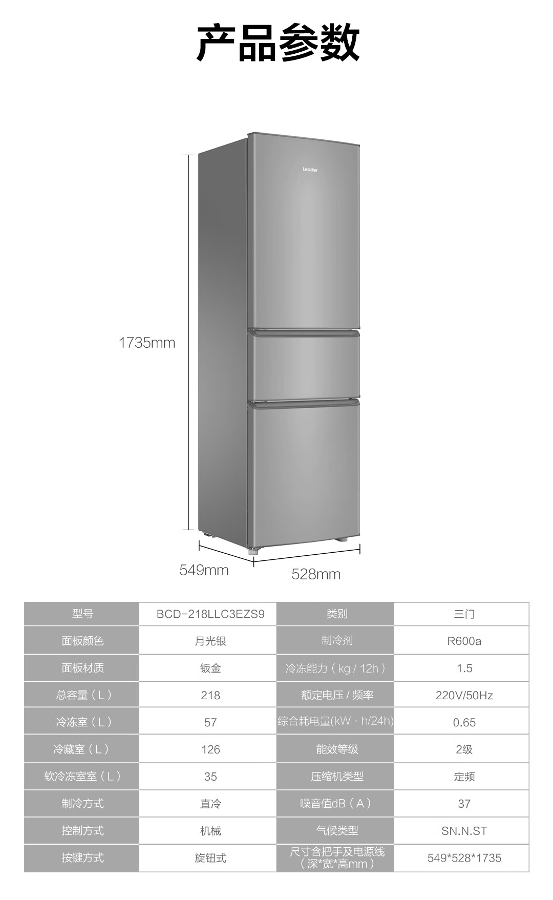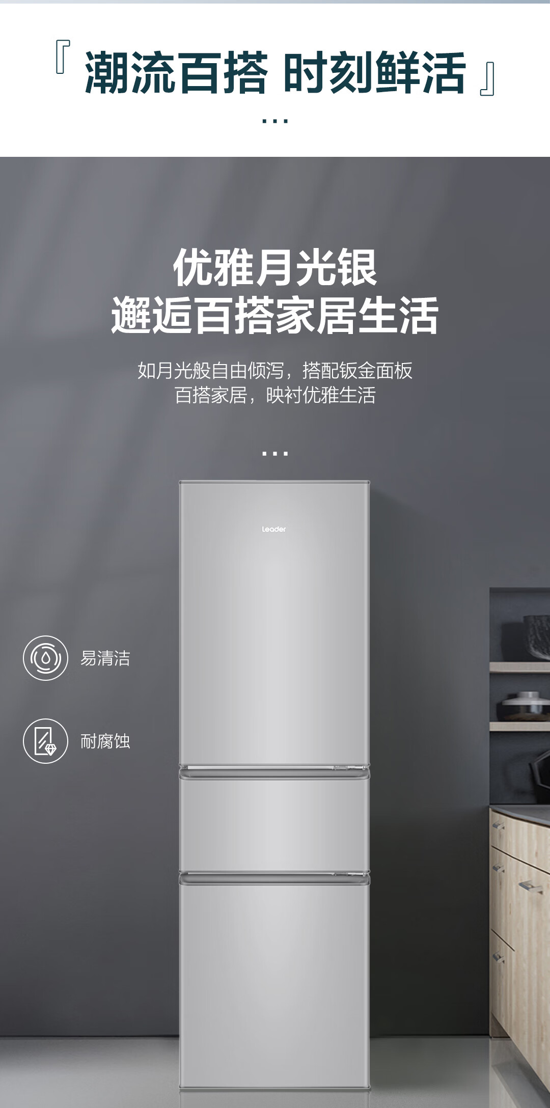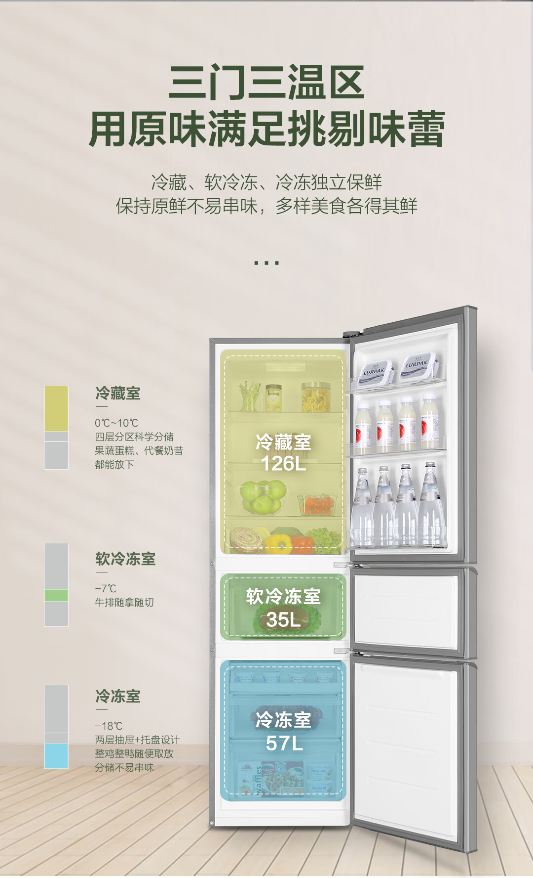 Haier refrigerator small three-door refrigerator household small refrigerator a new level of energy efficiency large capacity refrigerated freezing rental room electricity-saving refrigerator produced by Haier 218 liter three-door three-temperature household energy-saving and electricity-saving refrigerator