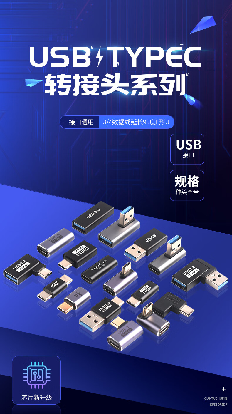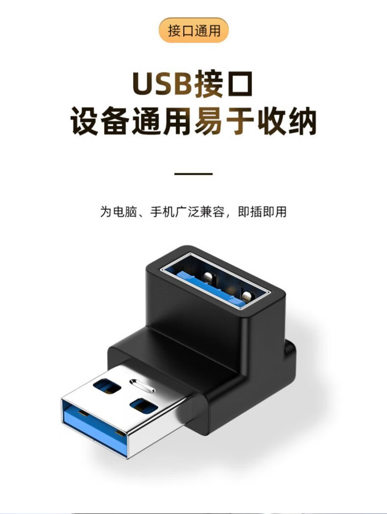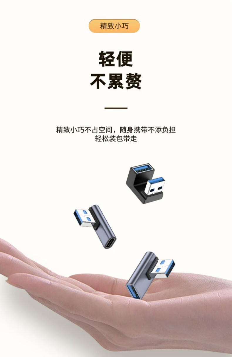 USB adapter Typec male to female mobile phone tablet 40G Thunderbolt 3/4 data cable extension 90 degrees L-shaped U Type-C male to USB3.2 female elbow 10G no specifications