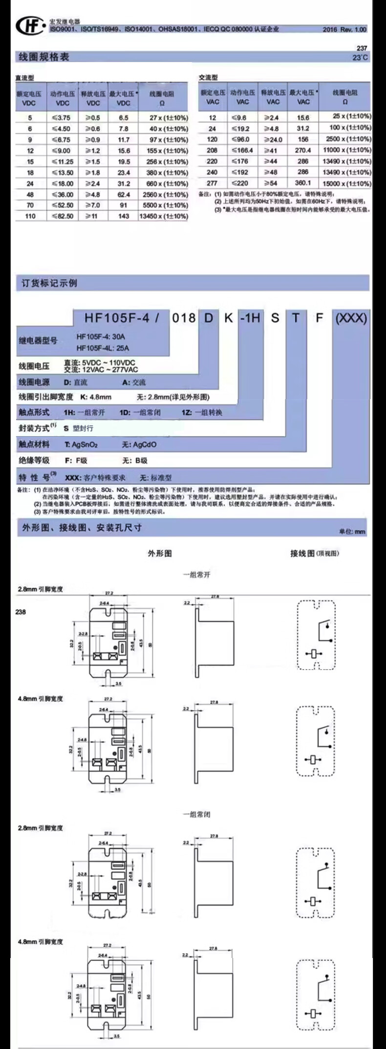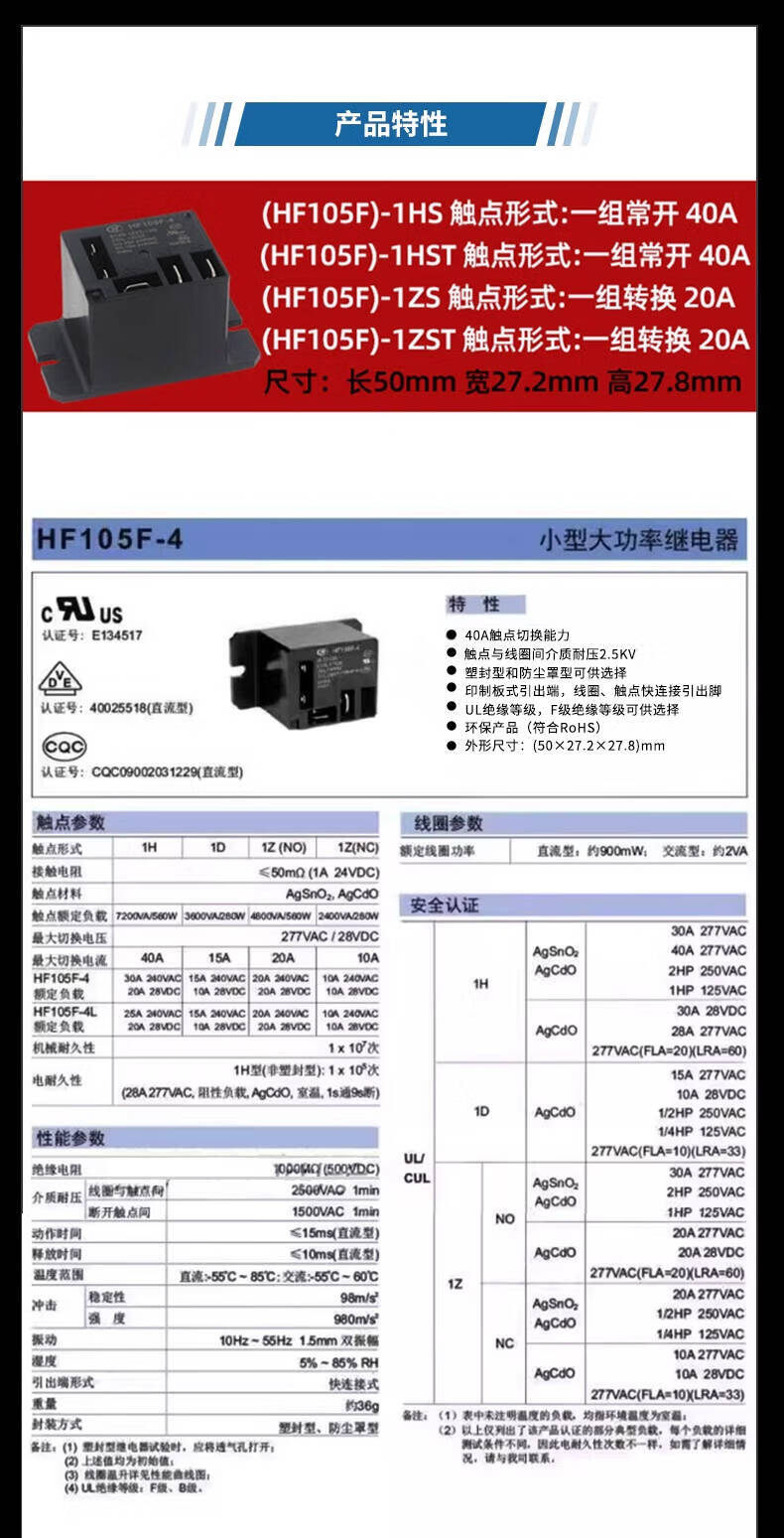 220V air conditioning relay HF/JQX-105F-4-012D 024D220A-1HST 1ZST1HSF HF-105F-4/012D-1HS No specification