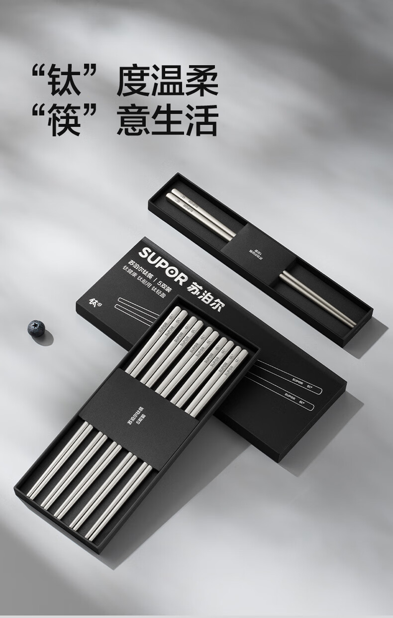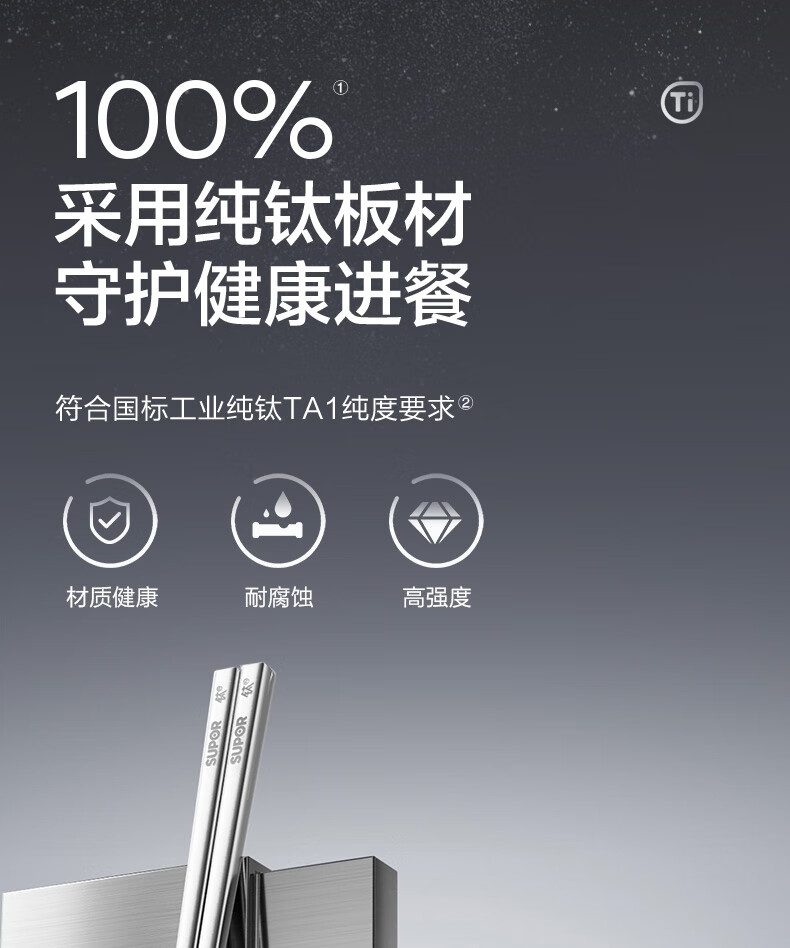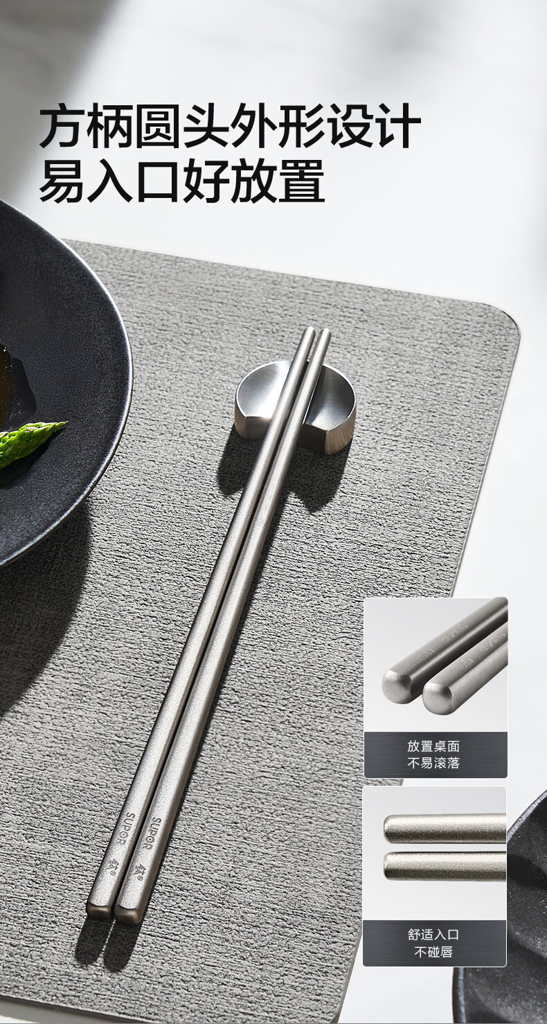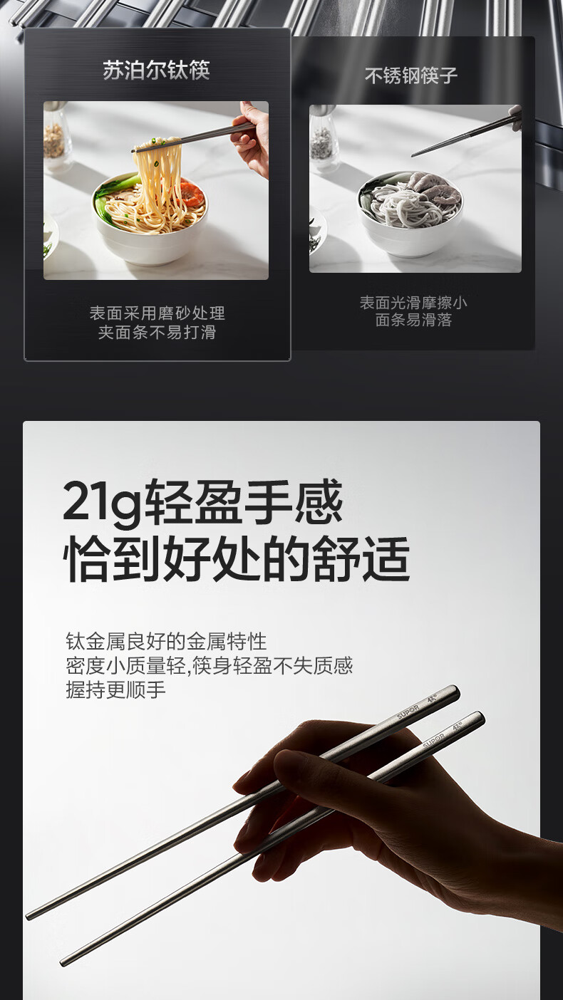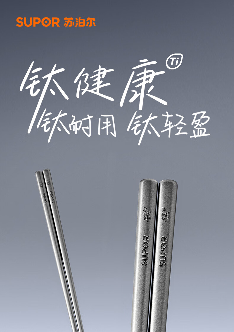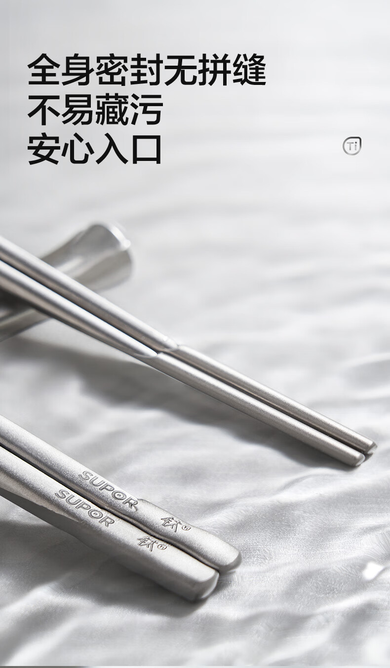 SUPOR 100% pure titanium chopsticks, household high-end chopsticks and tableware, dedicated food-grade metal titanium chopsticks, portable and non-slip, 100% pure titanium, 1 pair