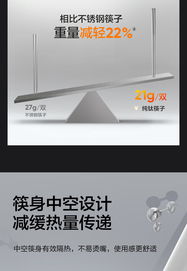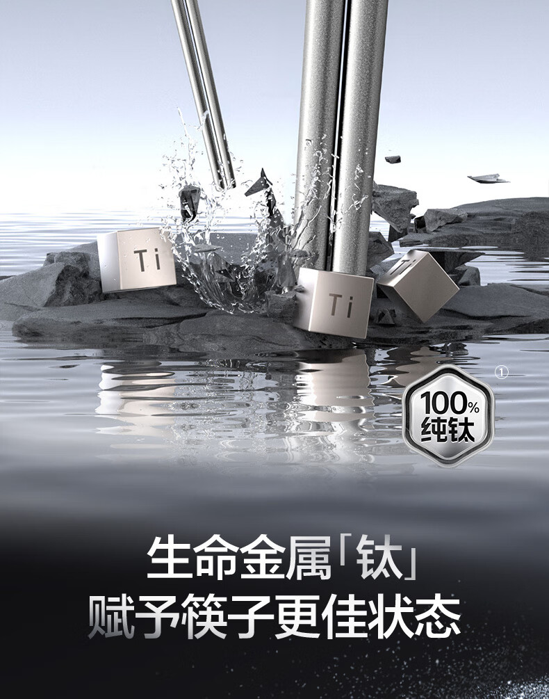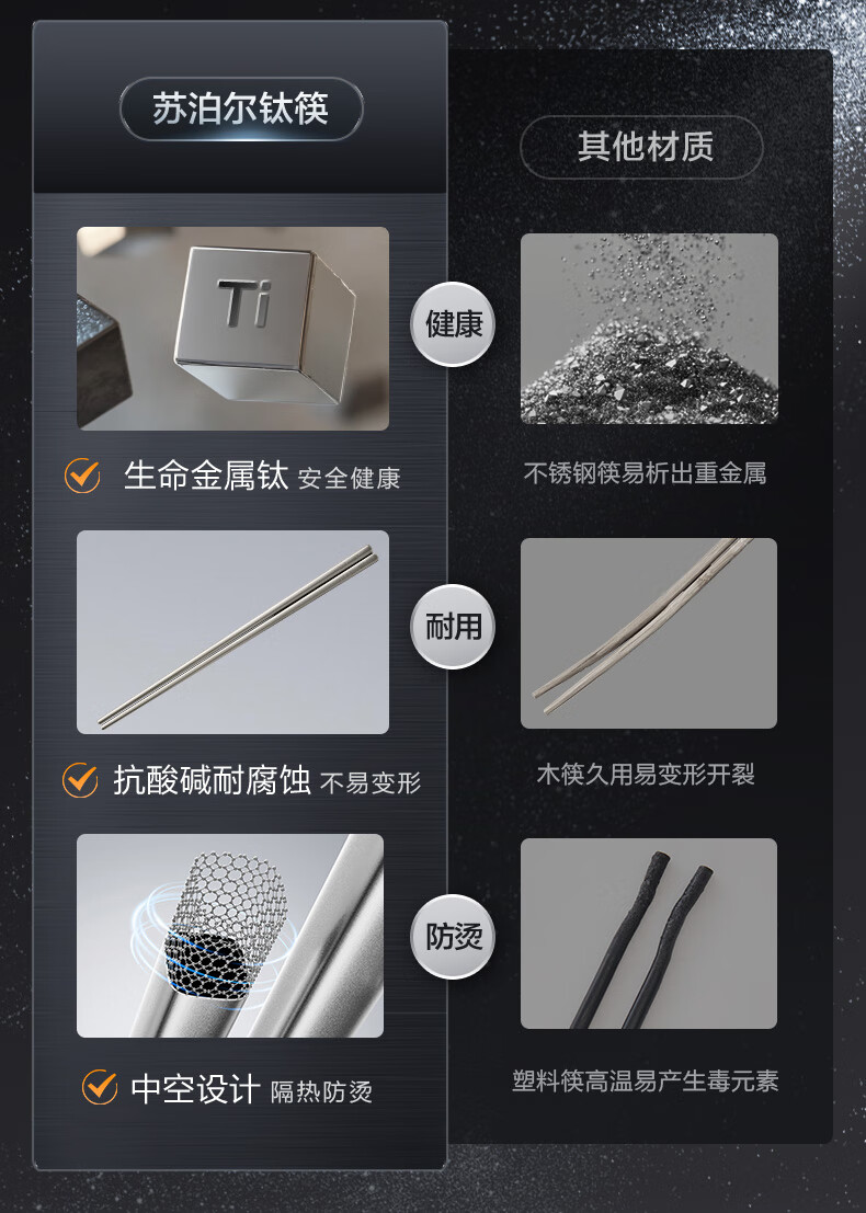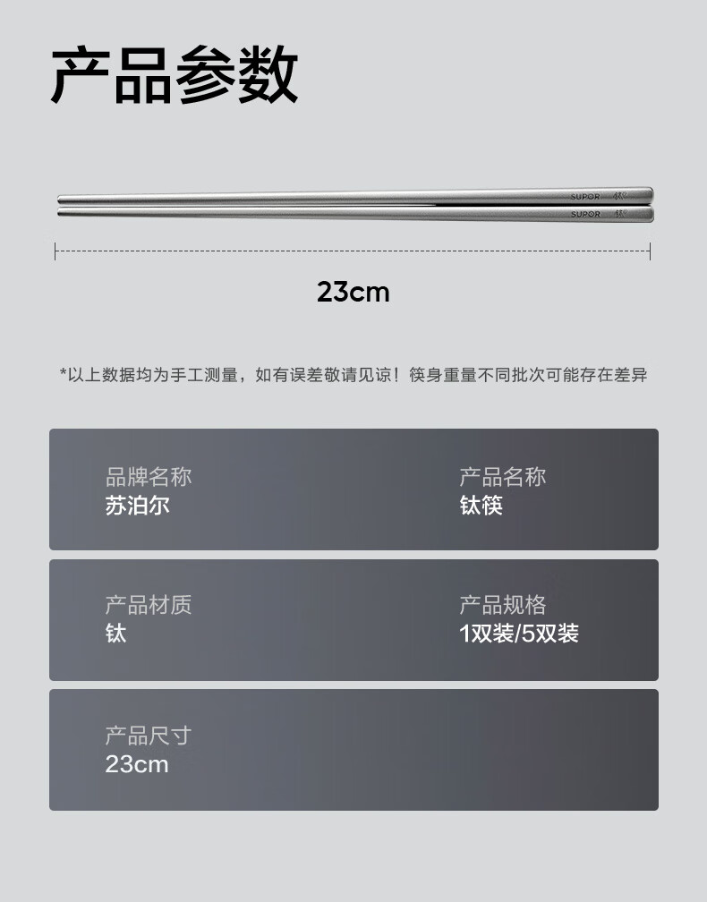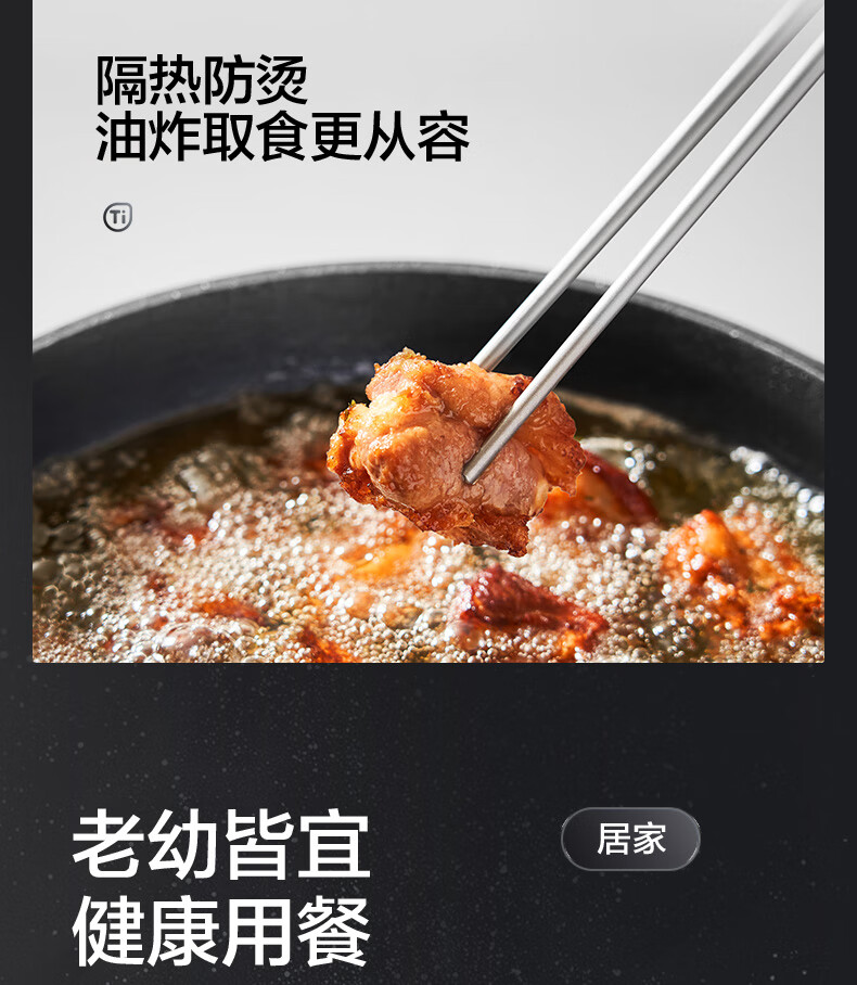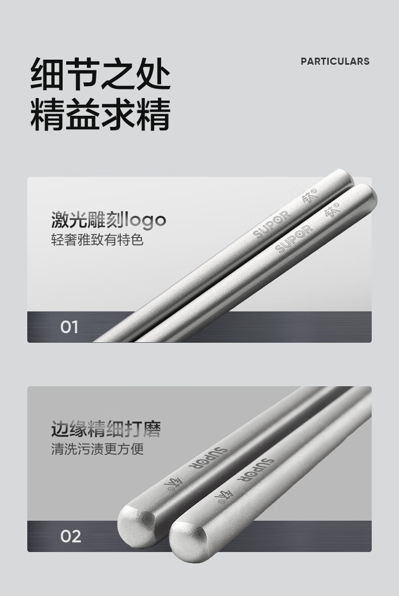 SUPOR 100% pure titanium chopsticks, household high-end chopsticks and tableware, dedicated food-grade metal titanium chopsticks, portable and non-slip, 100% pure titanium, 1 pair