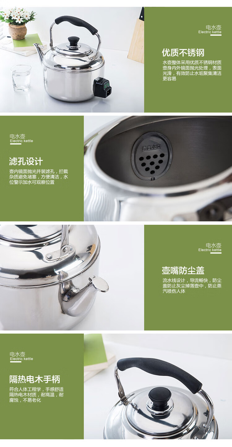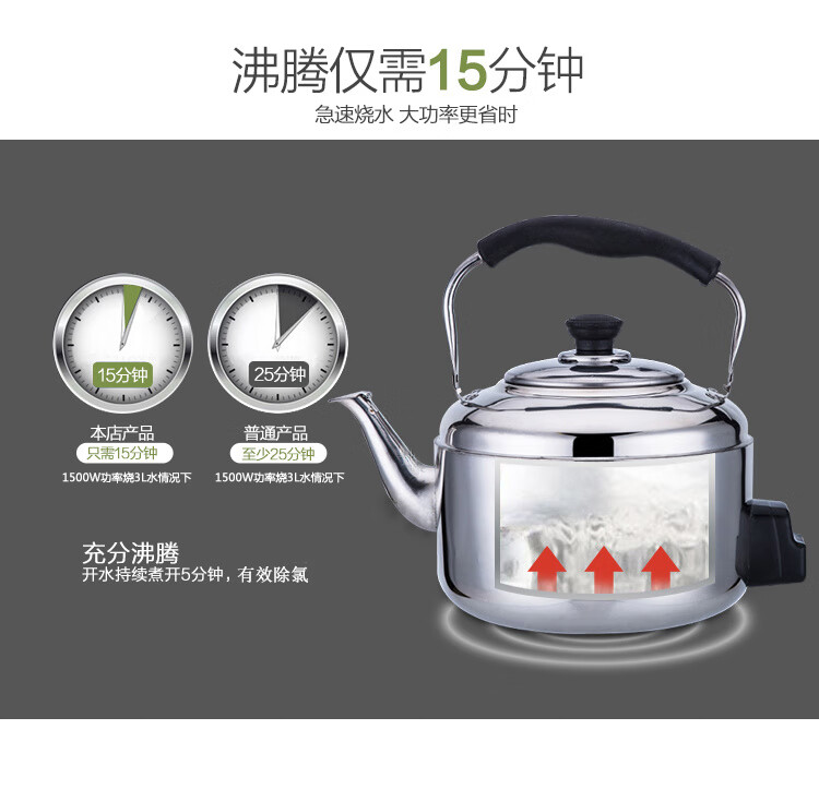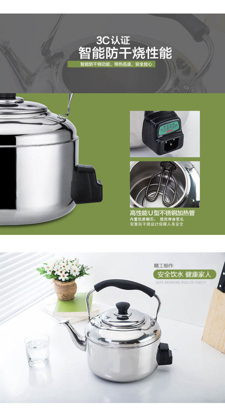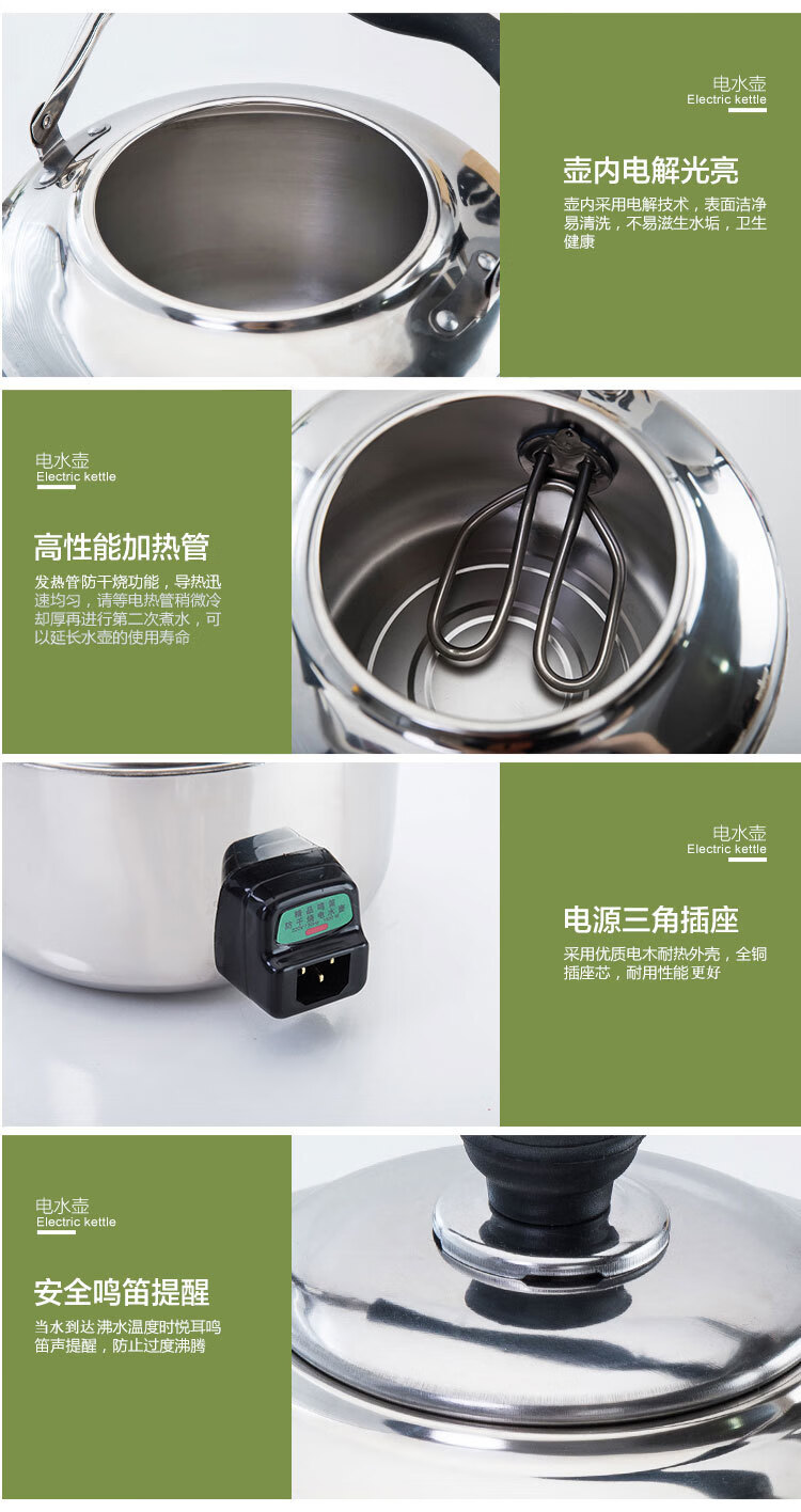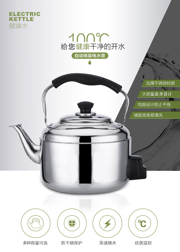 Chaosihui 304 stainless steel electric kettle large capacity anti-dry boiling household kettle electric kettle whistle teapot water boiler thickened electric kettle (95cm wire) 4000ml