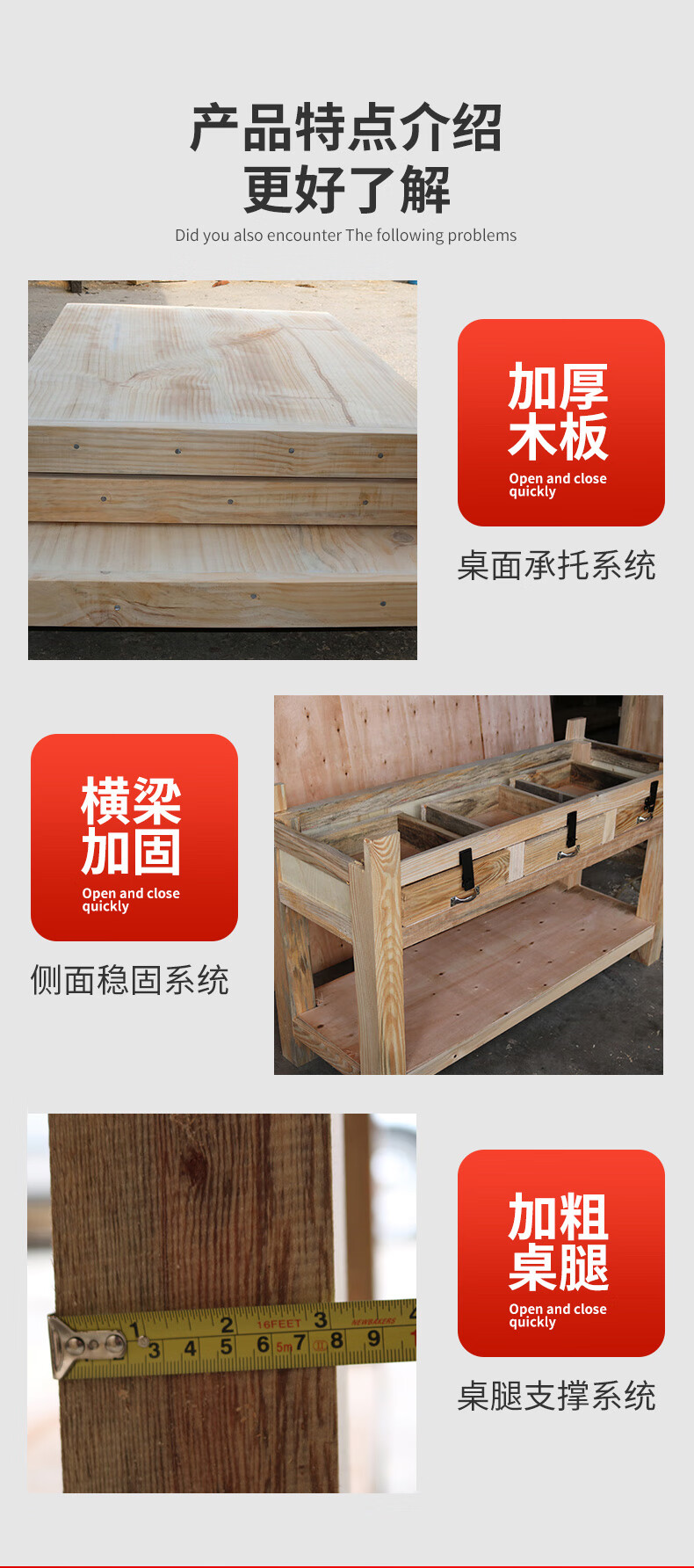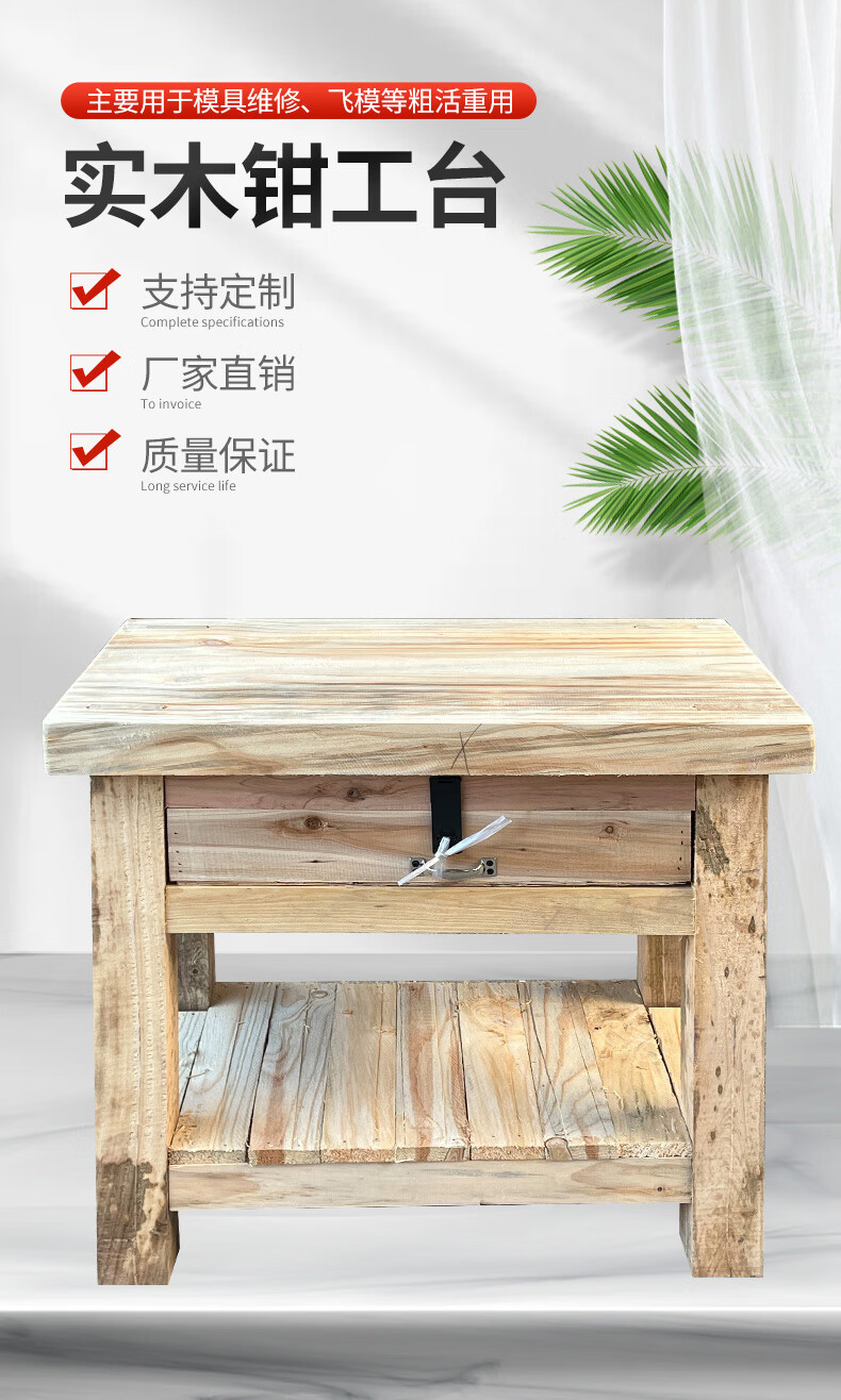 Heavy wooden workbench, fitter's workbench, mold operating table, iron fitter's bench, custom pork table, one-draw ordinary nailing model 85*52*78