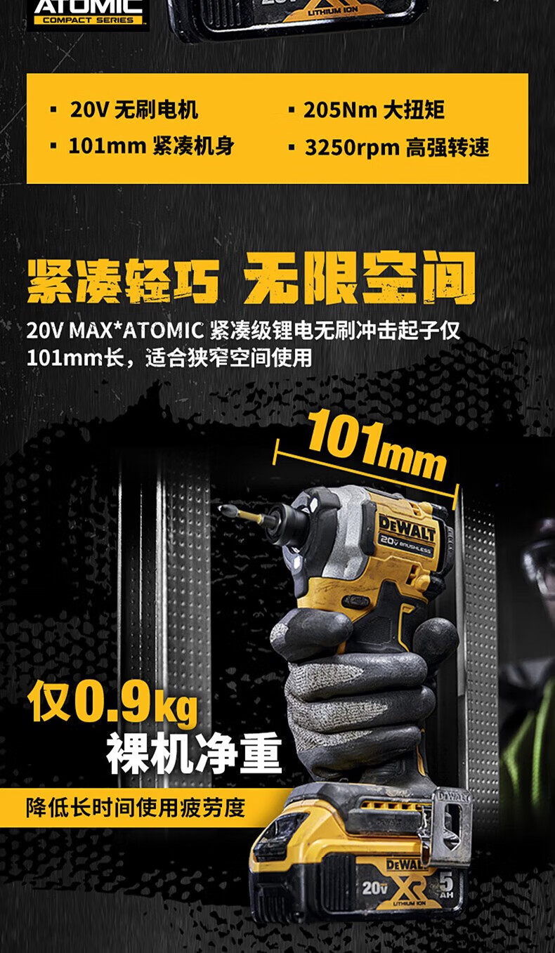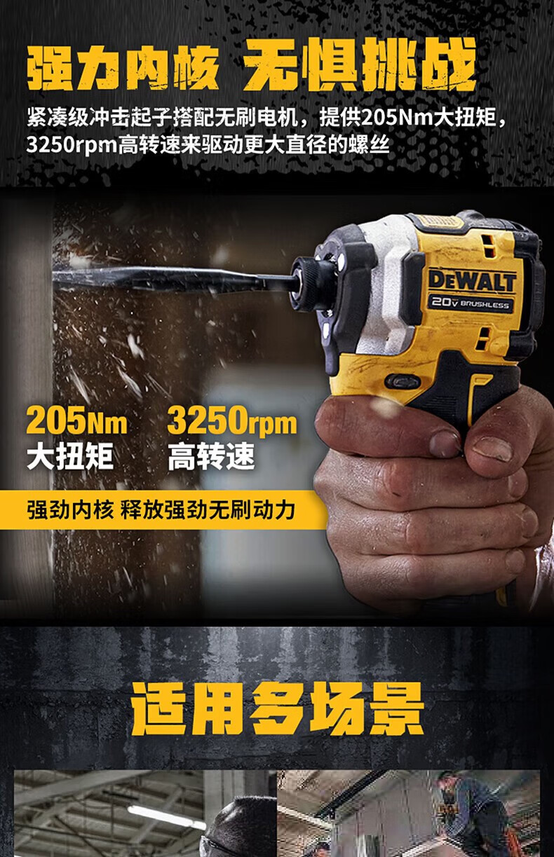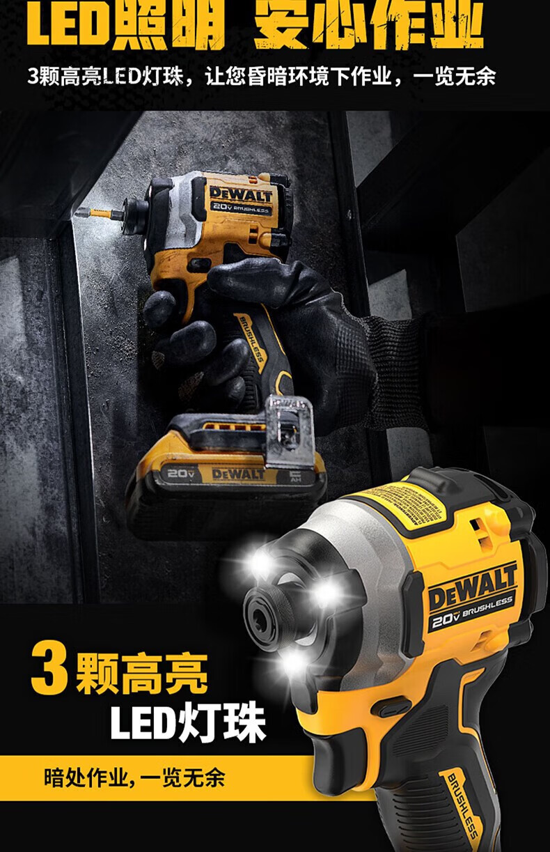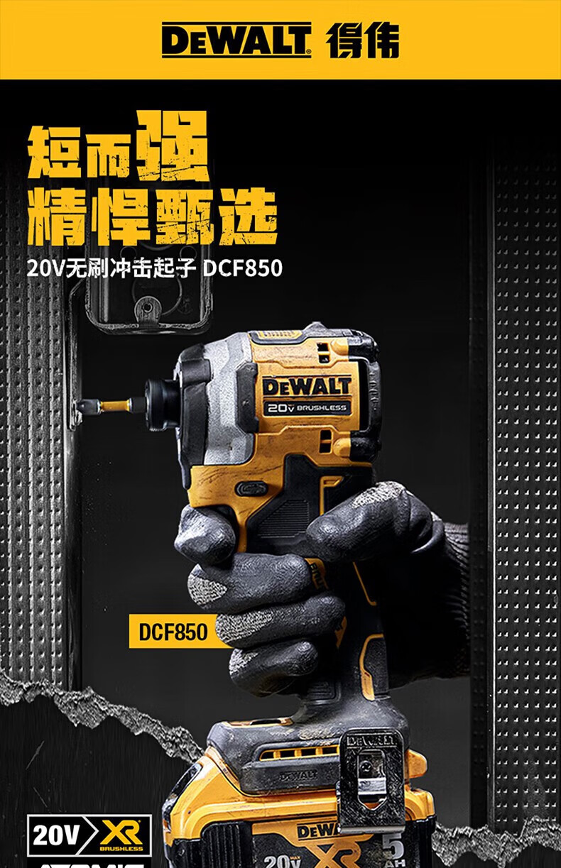 DEWALT DCF850/20V lithium battery brushless motor impact driver machine for drilling color steel tile dovetail screws with high torque and adjustable speed DCF850N 2.0 dual electric