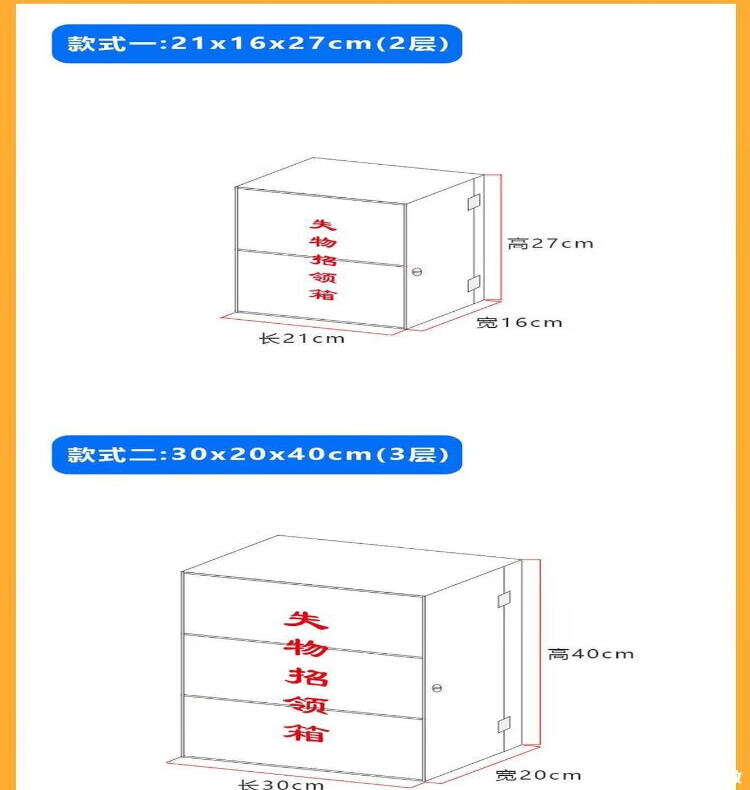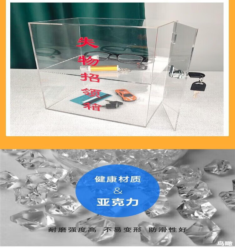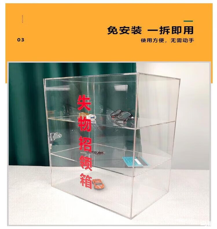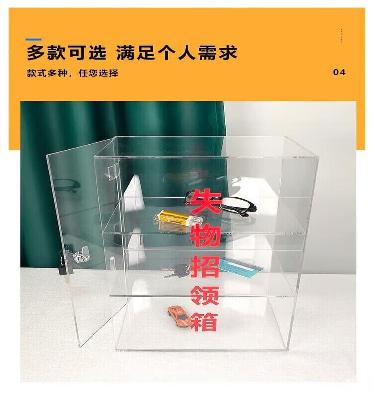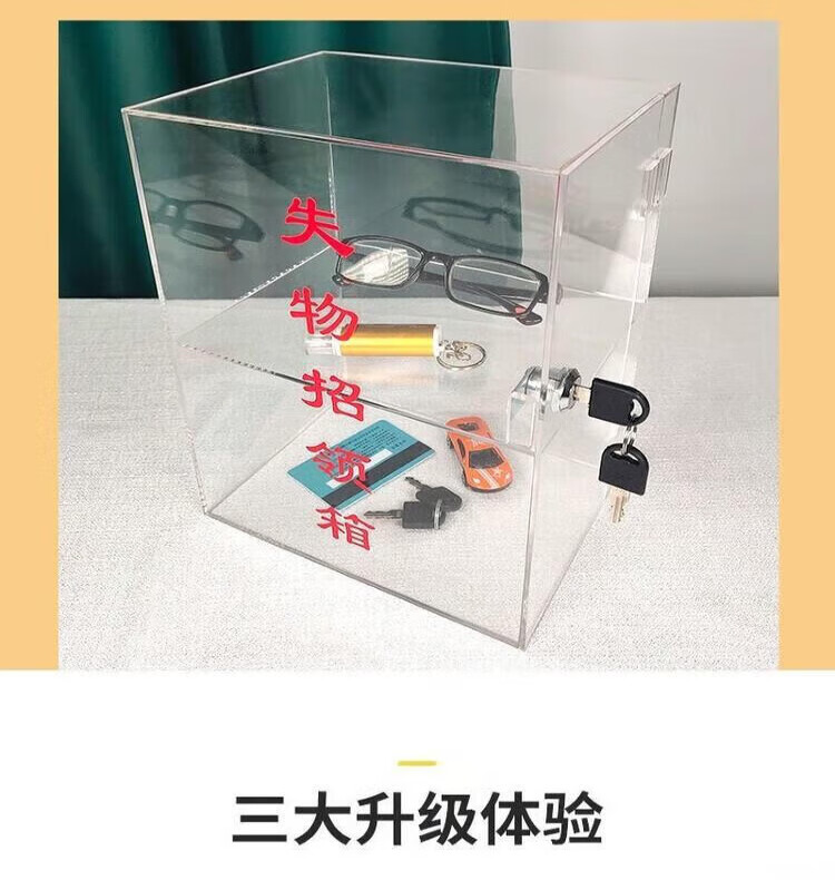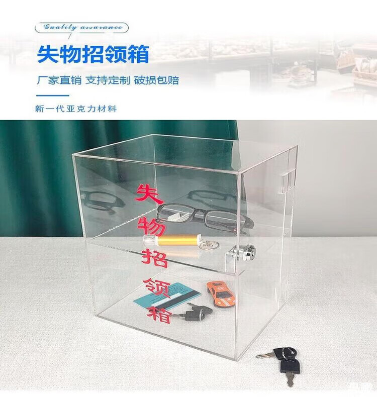 Lost and found box, transparent acrylic voting donation box, merit box, charity box, customized box with lock, small size 21*16*27CM, second floor, lock