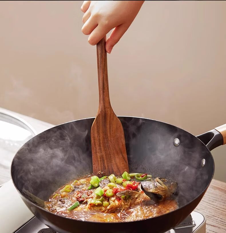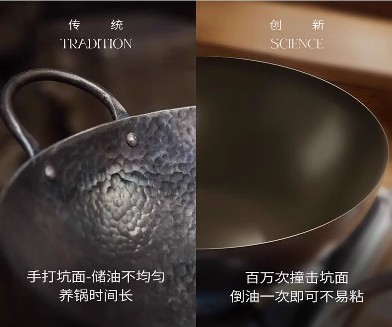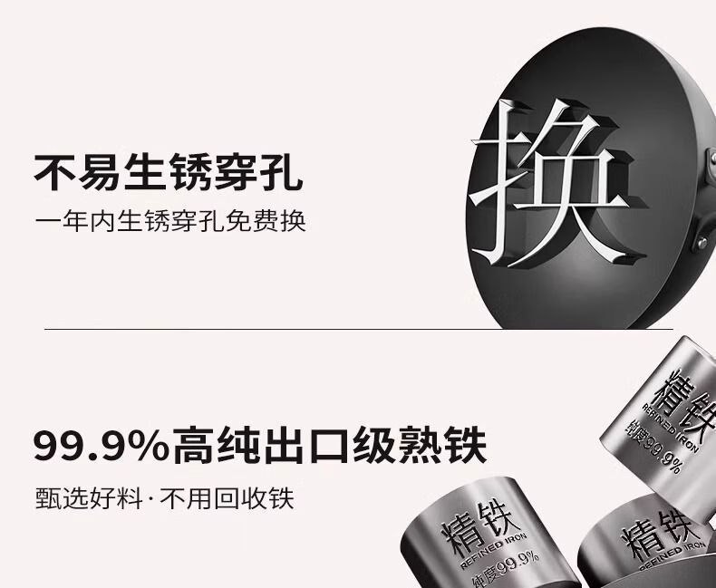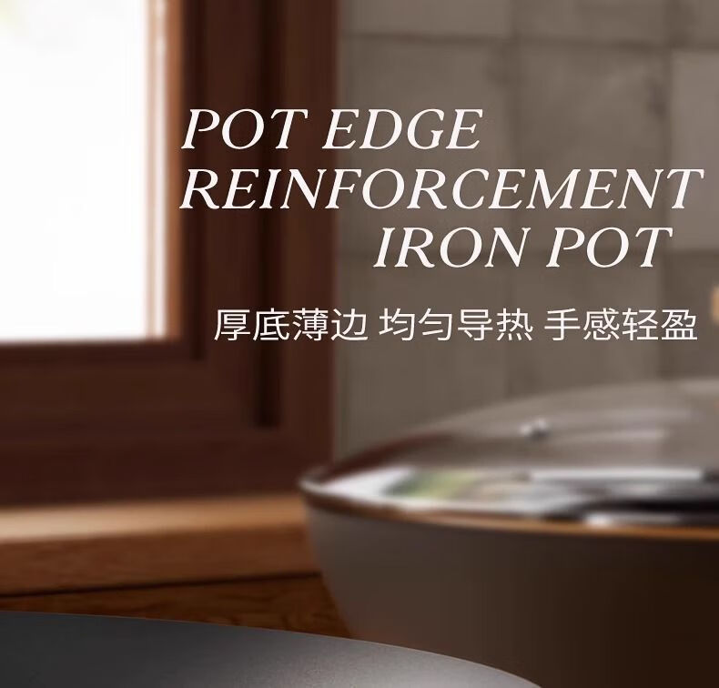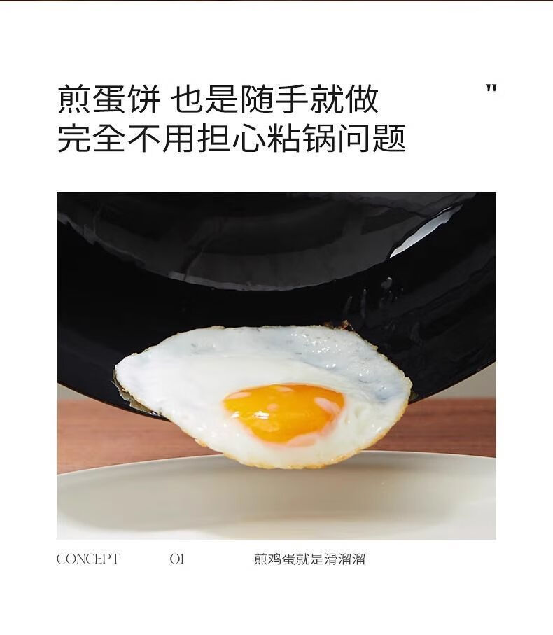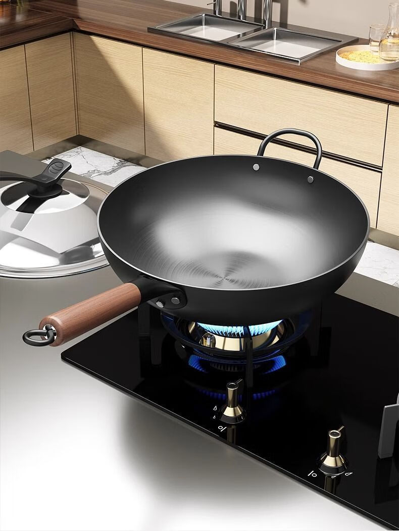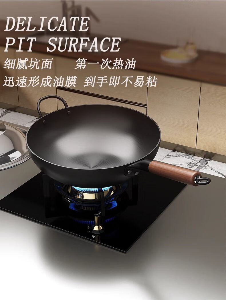 Zhangqiu round bottom iron pot non-stick wok wok cooking pot household traditional old-fashioned uncoated gas stove open flame special pot extra thick bottom thread with lid open pot 34cm