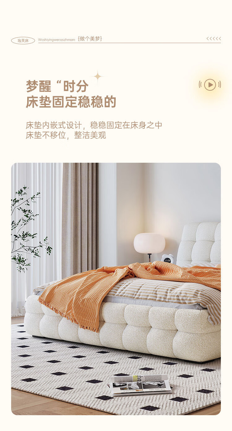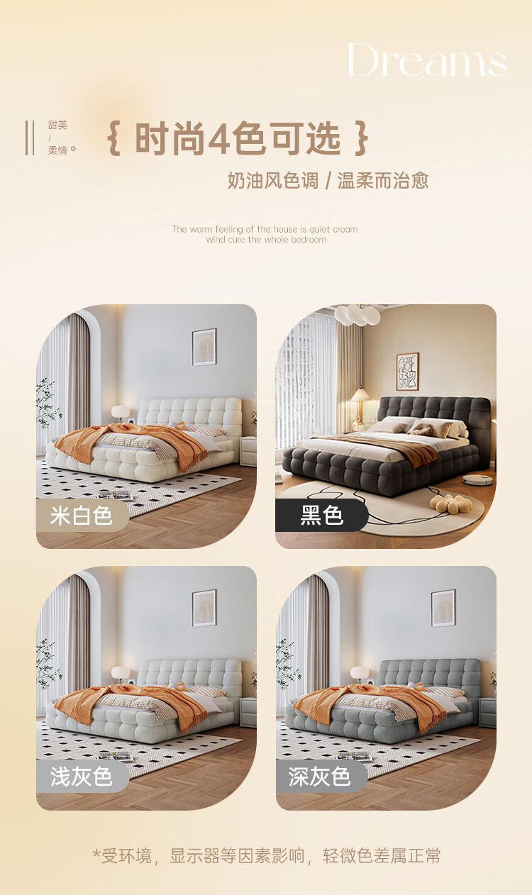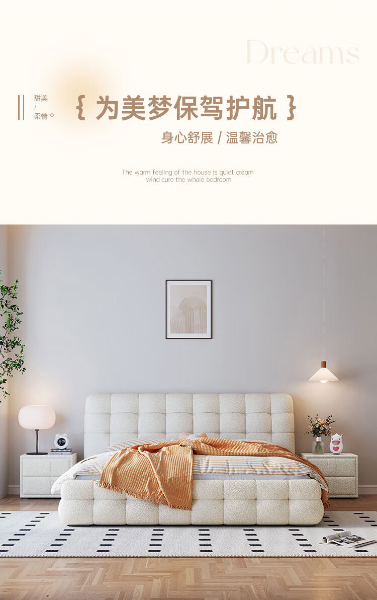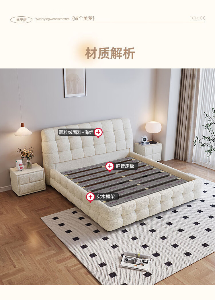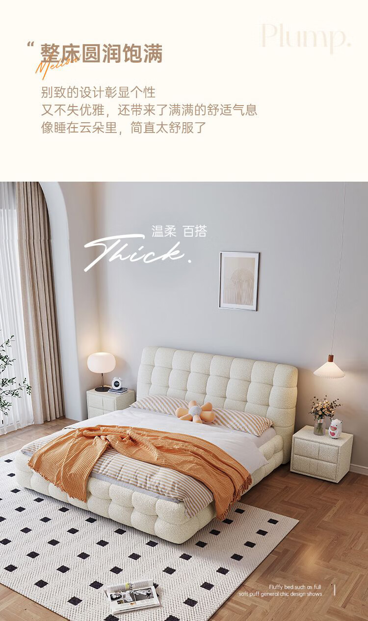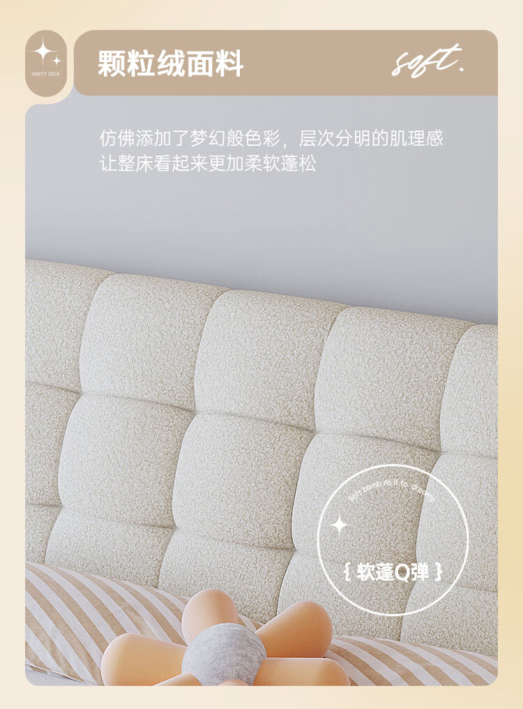 Cream style new Internet celebrity bed modern simple puff bed girls secondary master bedroom large bed light luxury fabric bed double bed light luxury fabric bed ready for delivery - delivery to home 1.5m*2.0m full bed frame structure