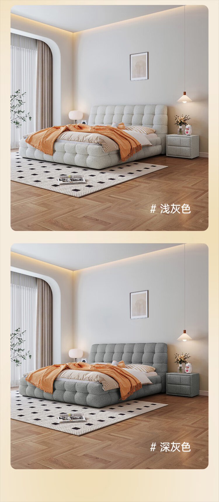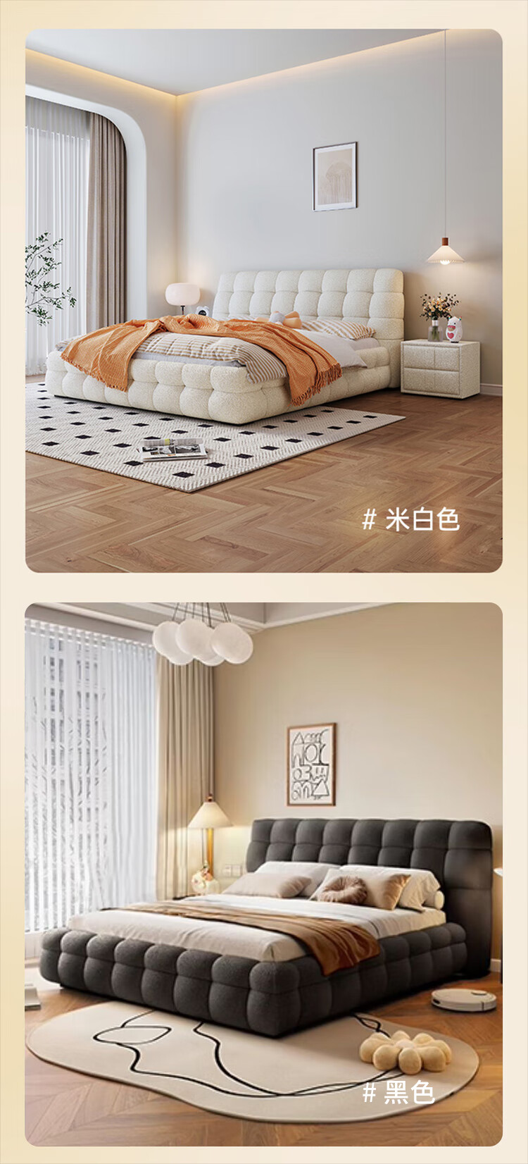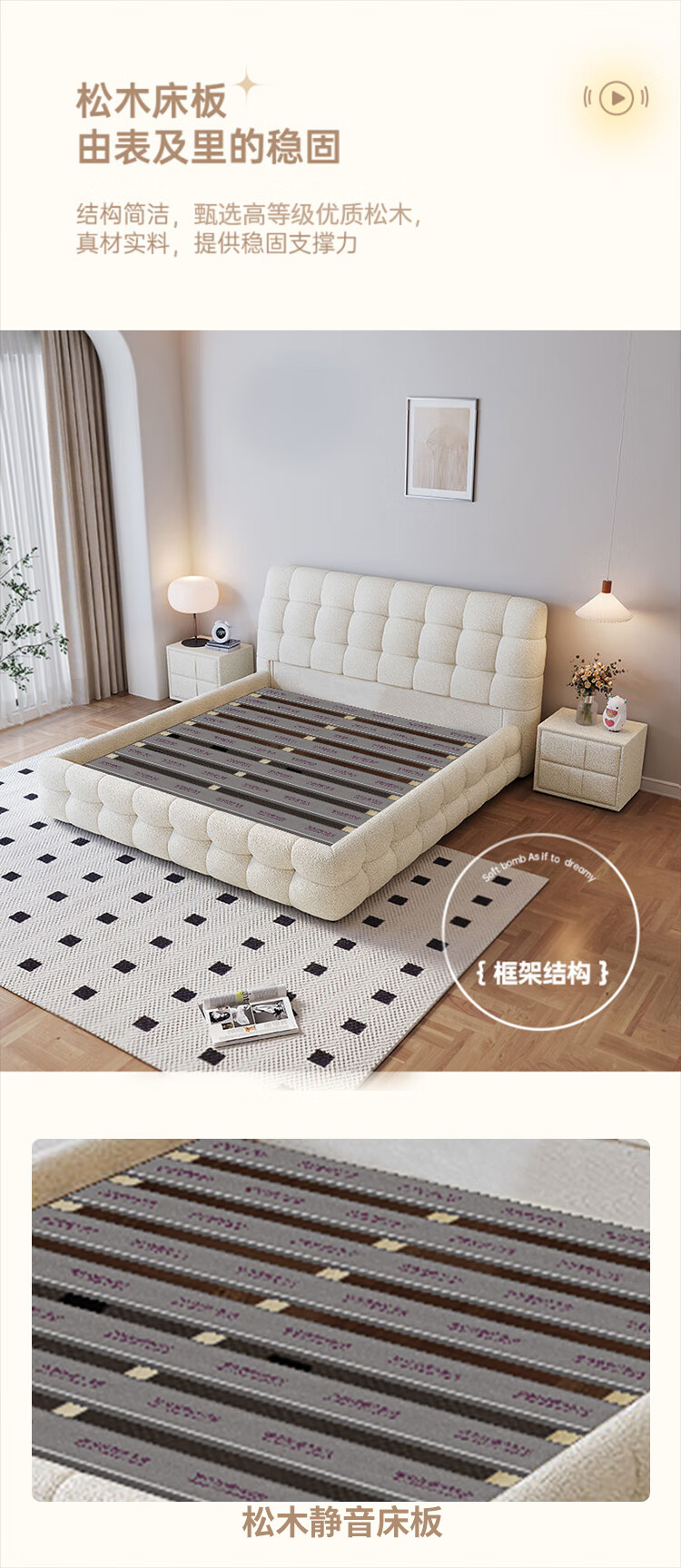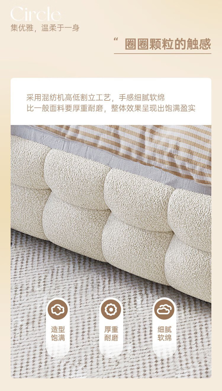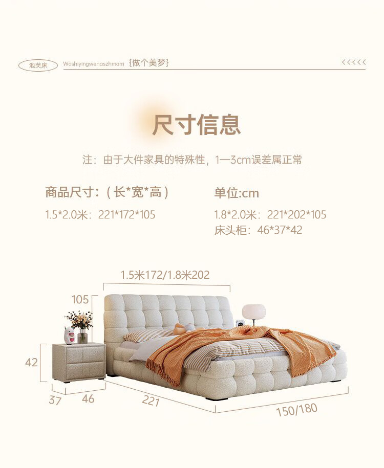 Cream style new Internet celebrity bed modern simple puff bed girls secondary master bedroom large bed light luxury fabric bed double bed light luxury fabric bed ready for delivery - delivery to home 1.5m*2.0m full bed frame structure
