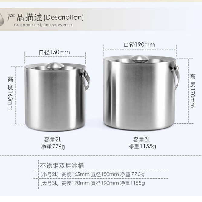 SUPU304 stainless steel ice bucket double-layer thickened handle insulated ice bucket household red wine beer large ice bucket with lid 1.6L double-layer thickened 304 ice bucket (ice clip included)