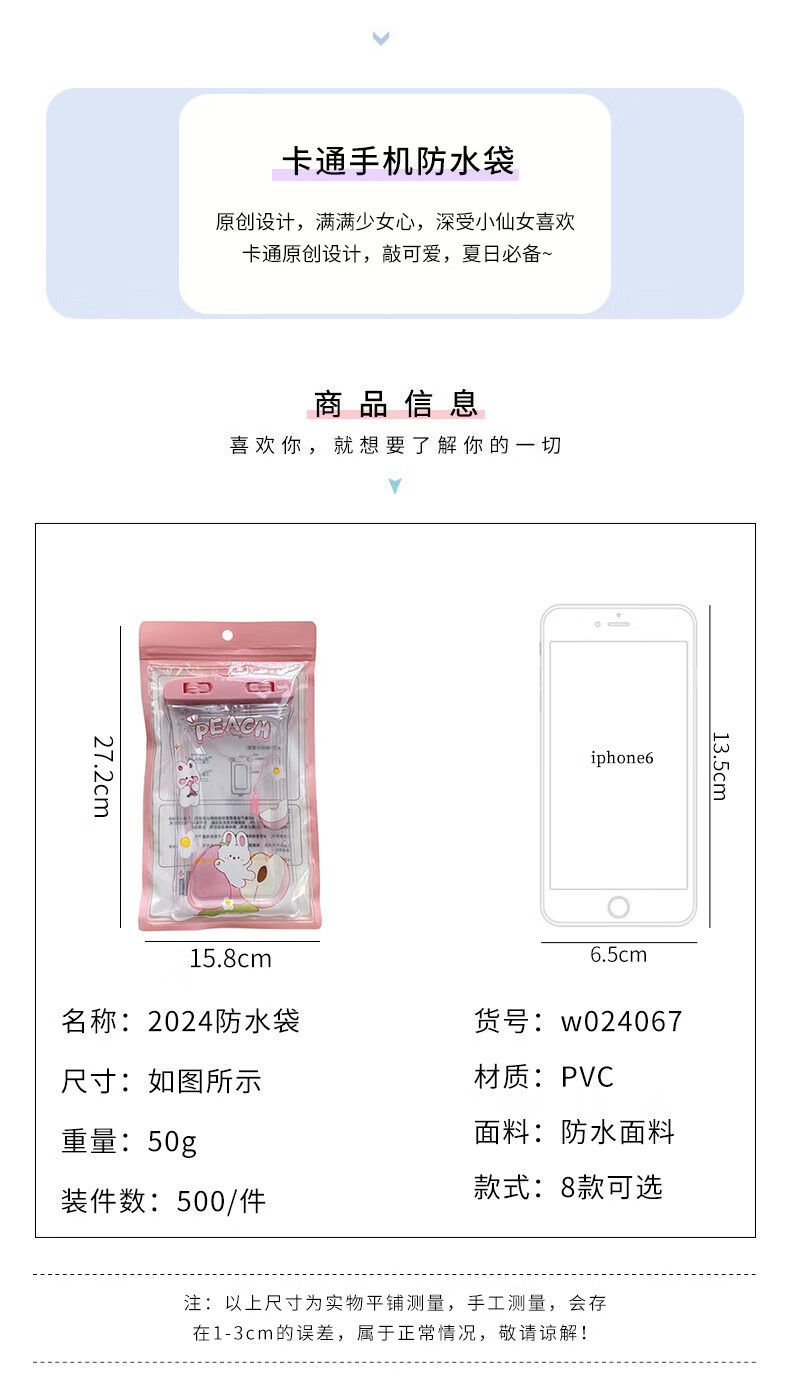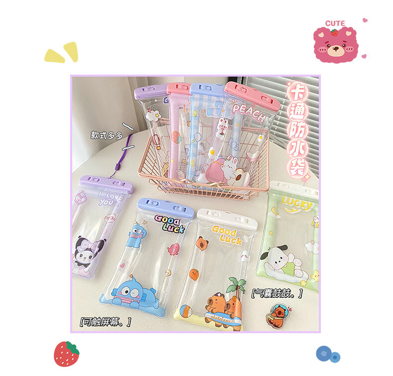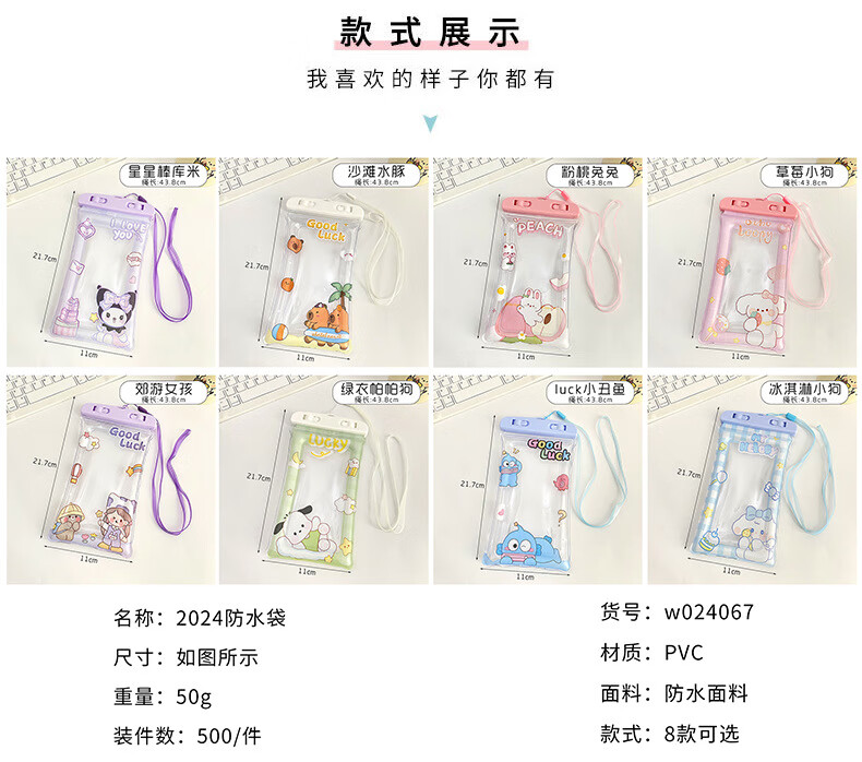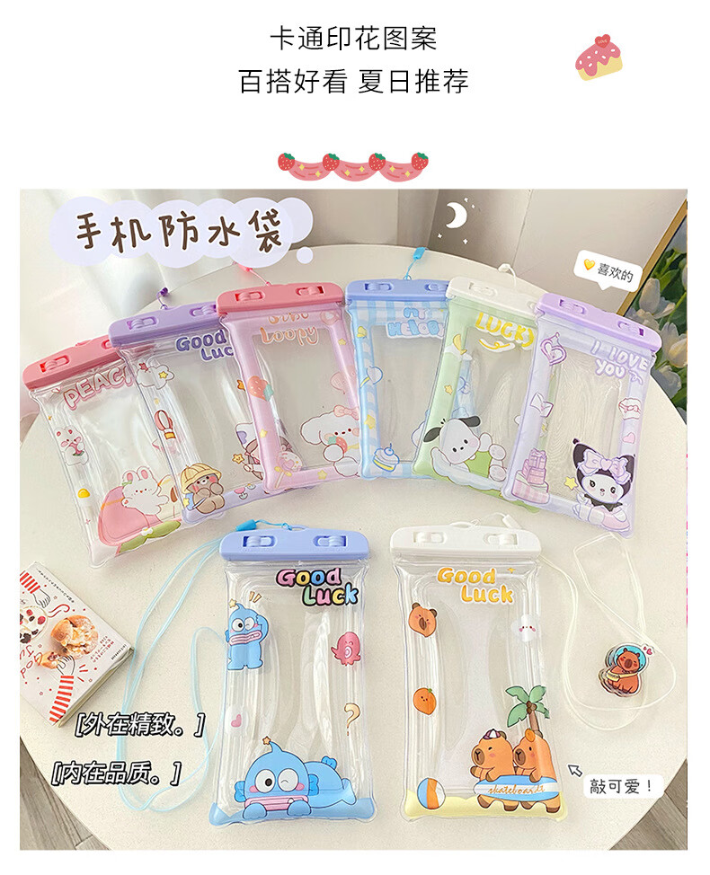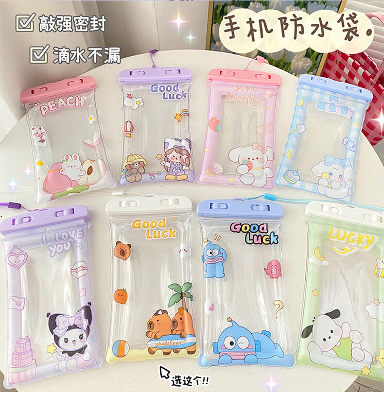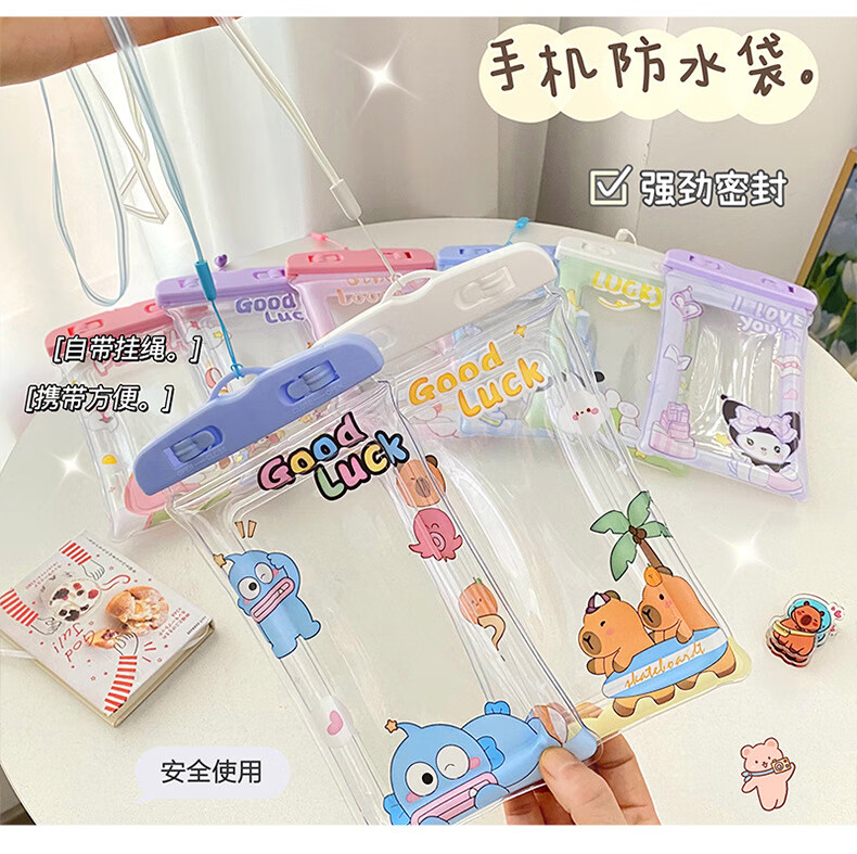 Cartoon touch screen mobile phone waterproof bag mobile phone universal diving cover transparent swimming rafting sealed waterproof bag halter green papa dog 1 pc