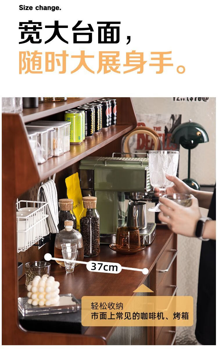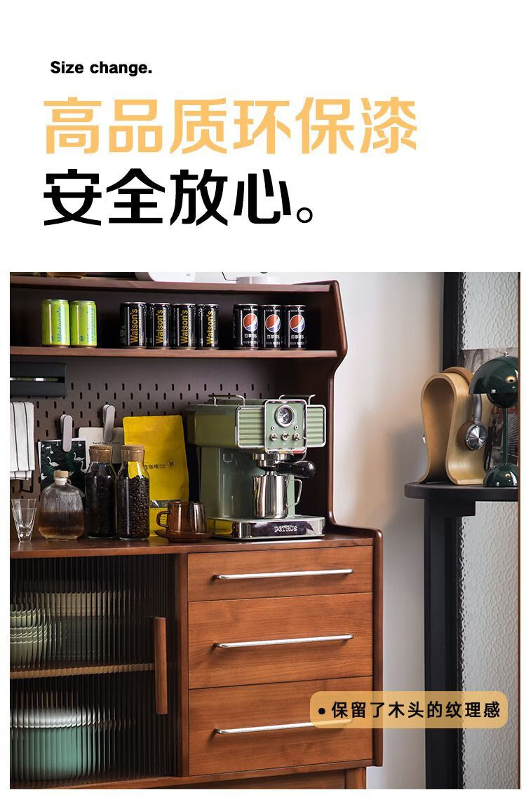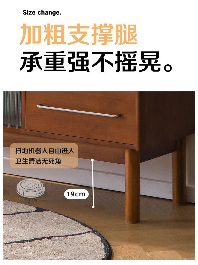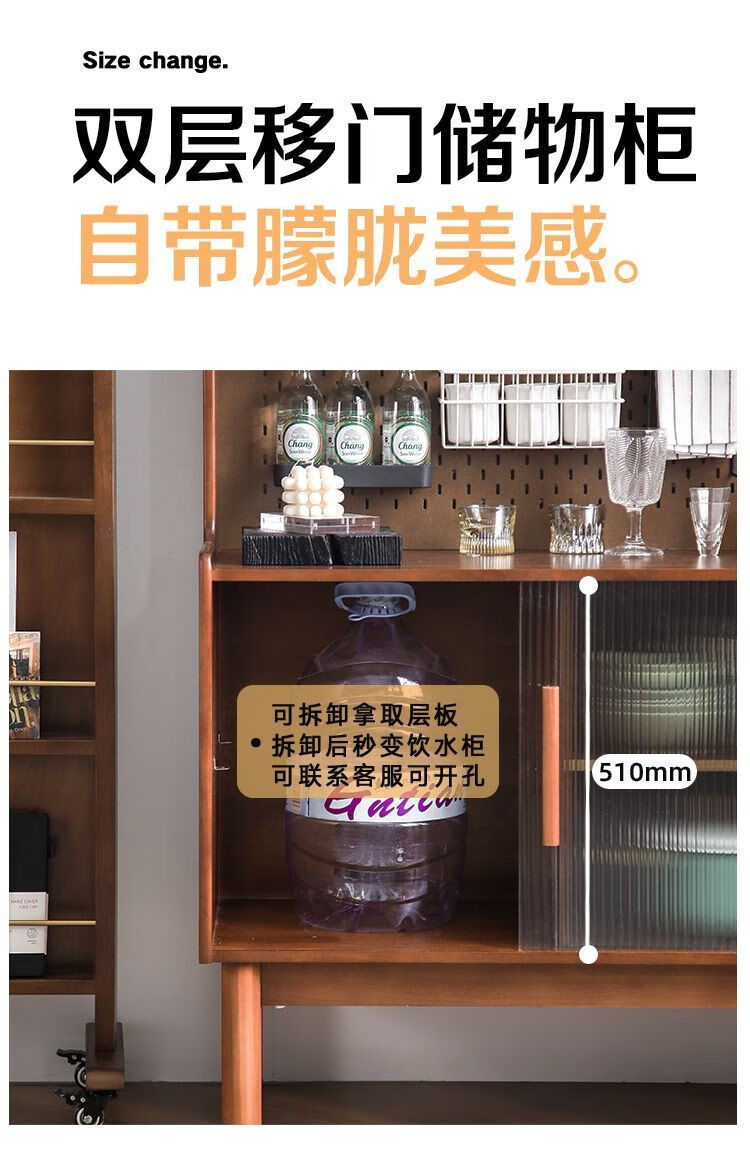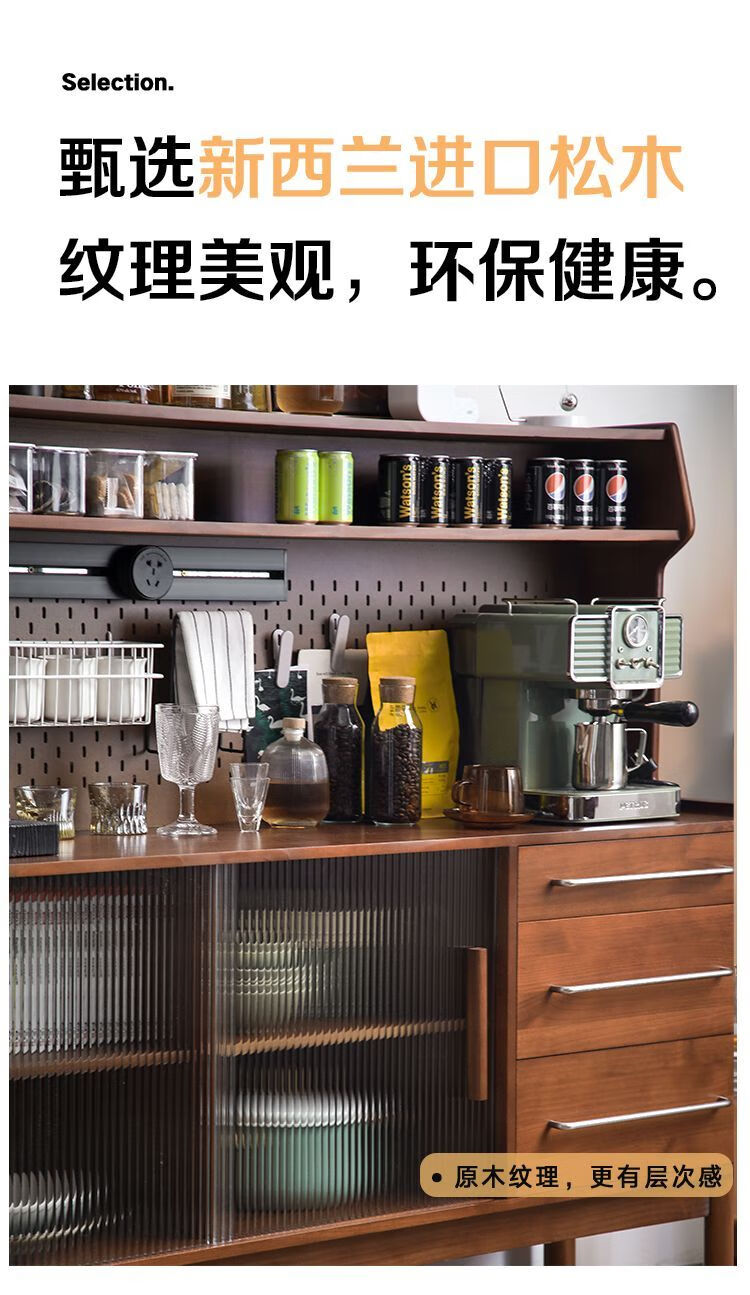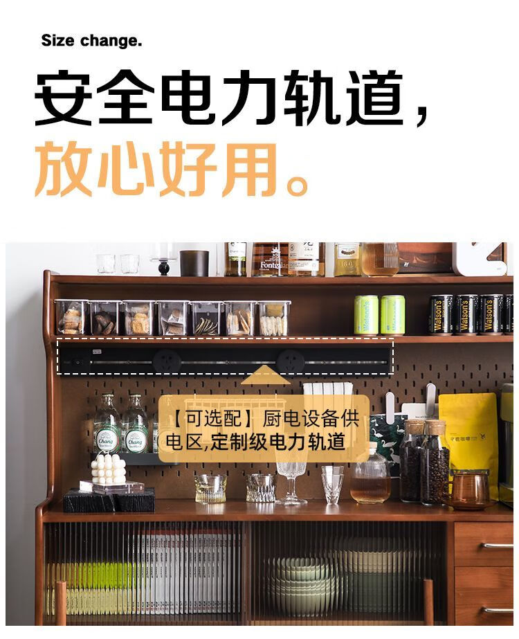 Fu Zhen solid wood sideboard Nordic all-in-one storage wall living room wine cabinet tea multi-function storage cabinet with electric rail 80cm+ hole board style medium antique color