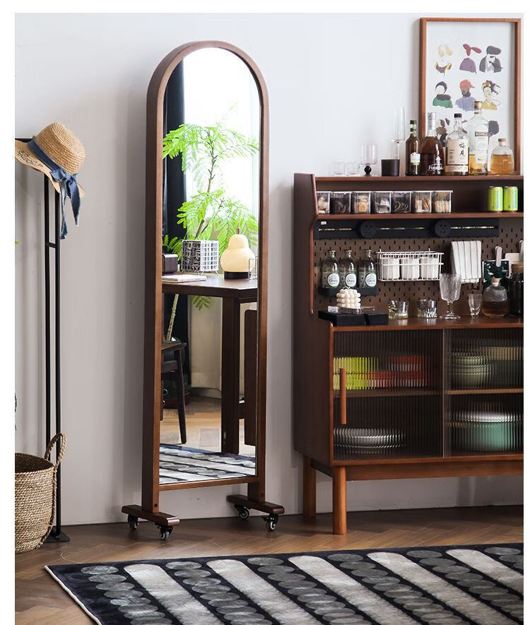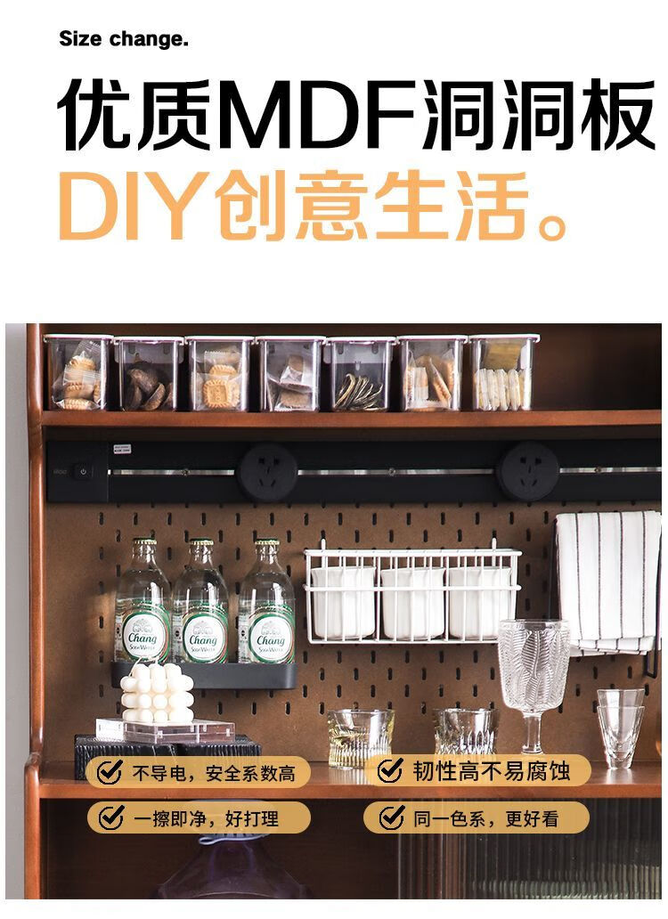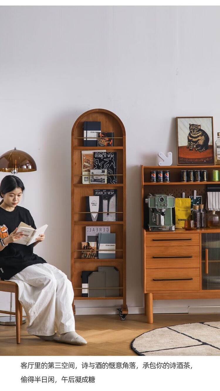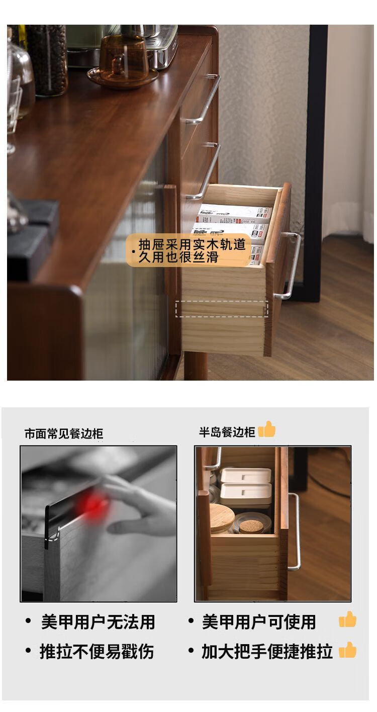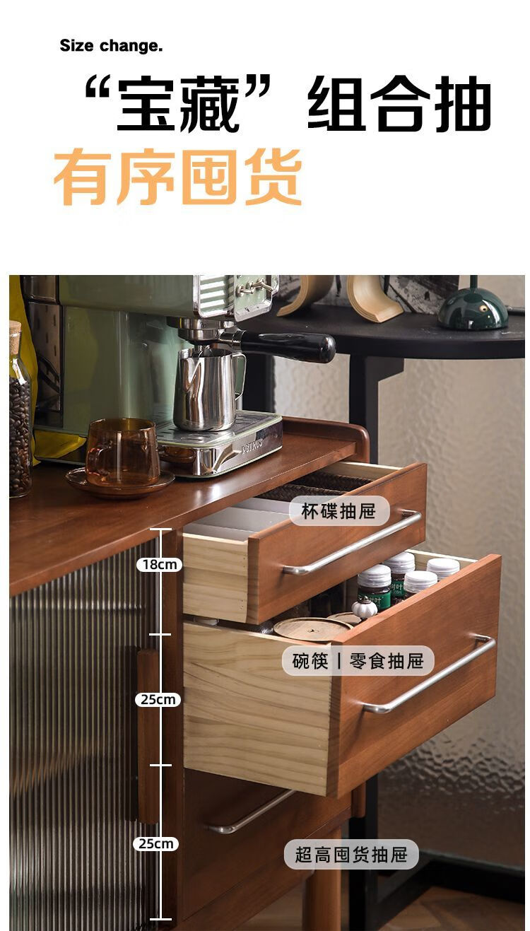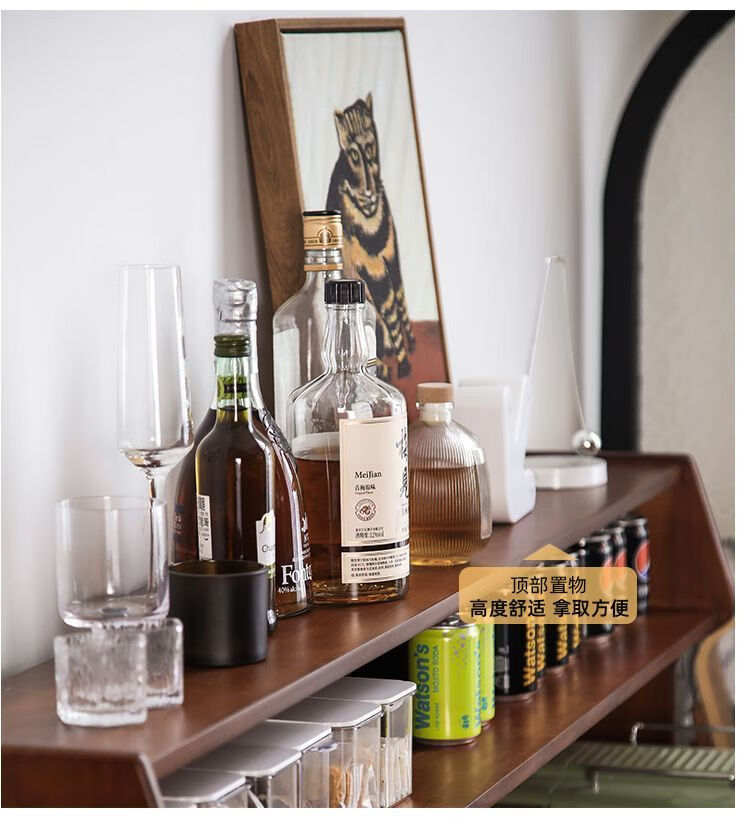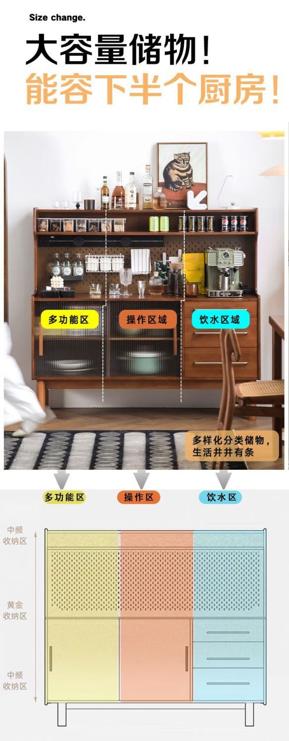Fu Zhen solid wood sideboard Nordic all-in-one storage wall living room wine cabinet tea multi-function storage cabinet with electric rail 80cm+ hole board style medium antique color