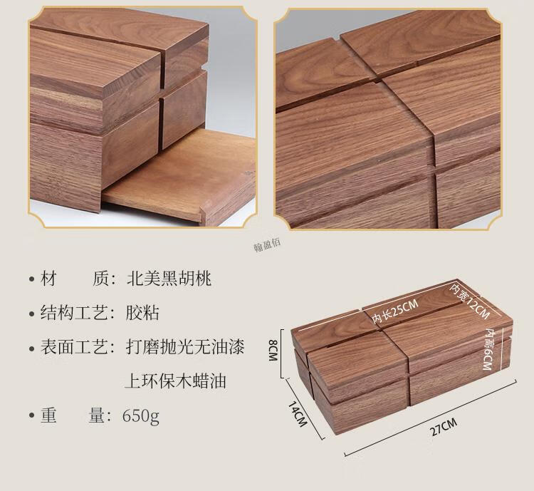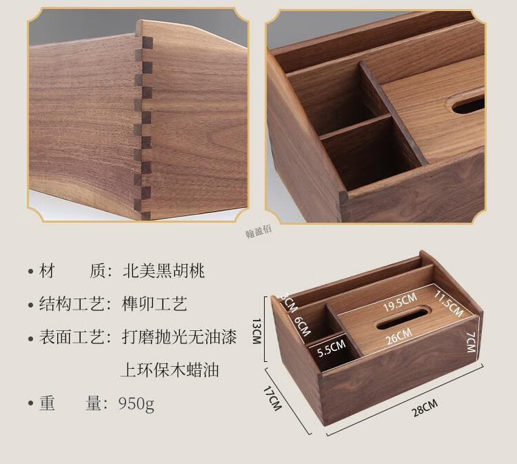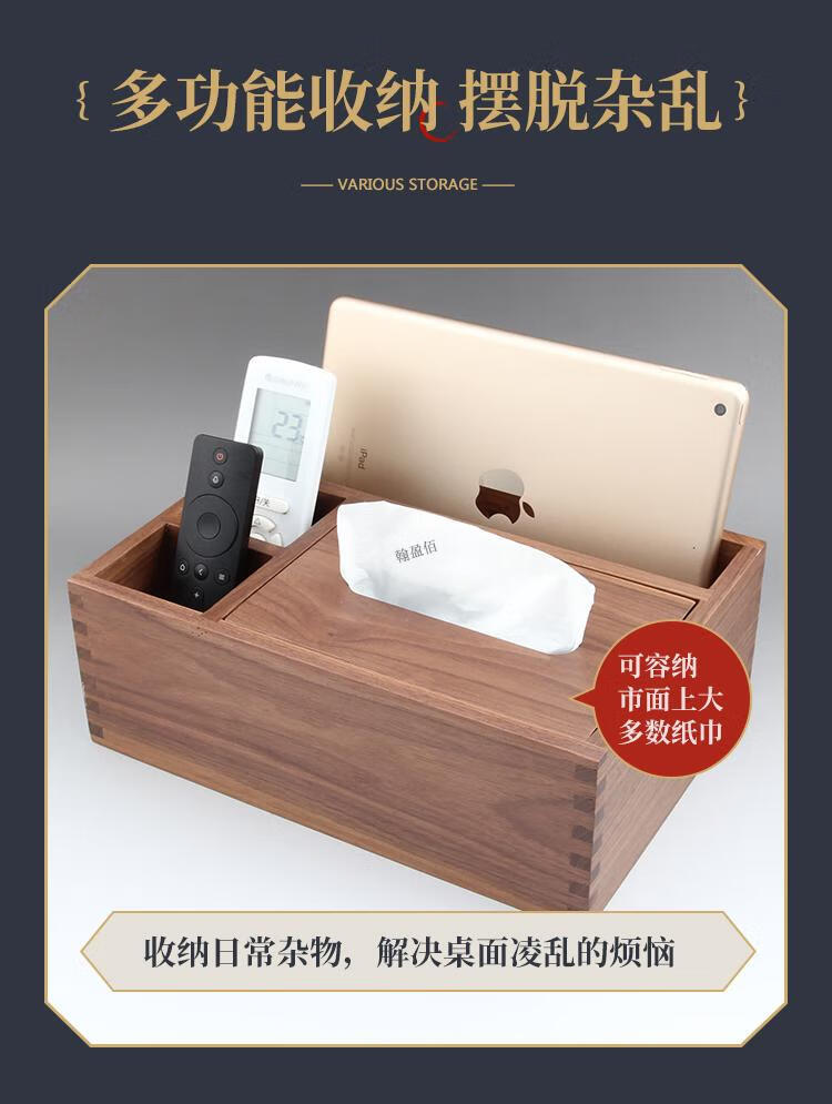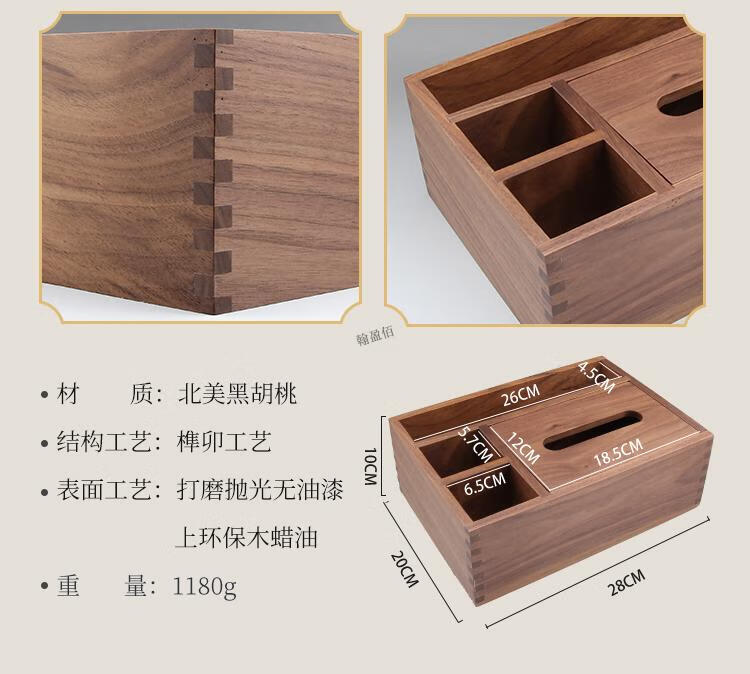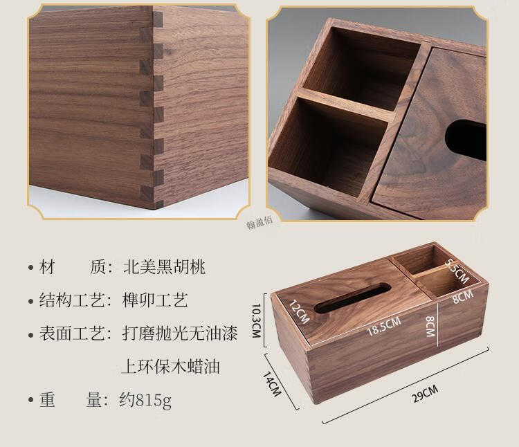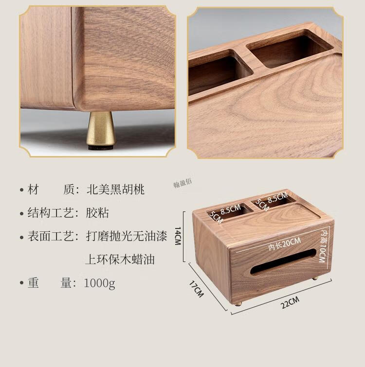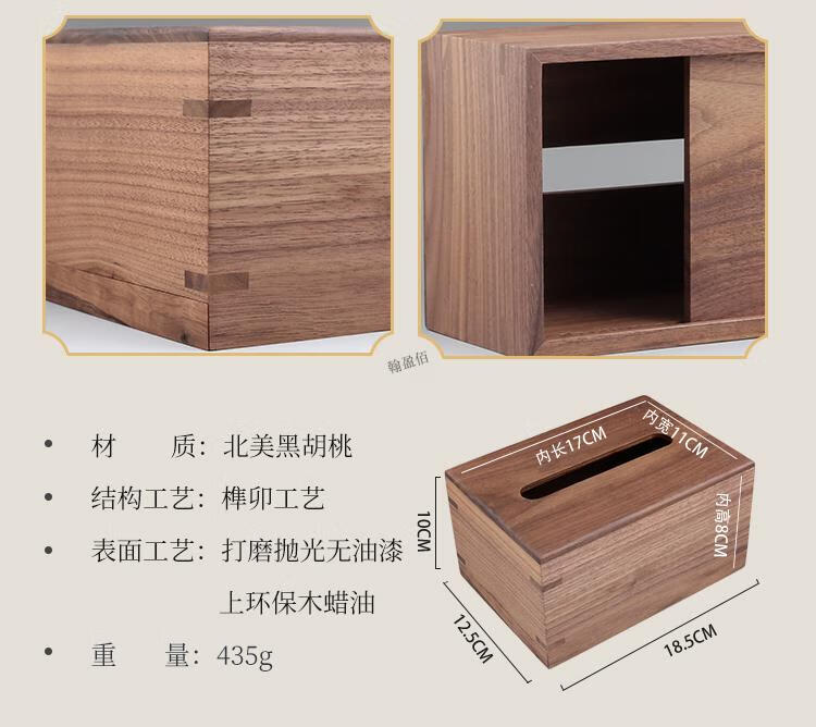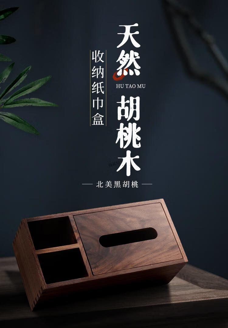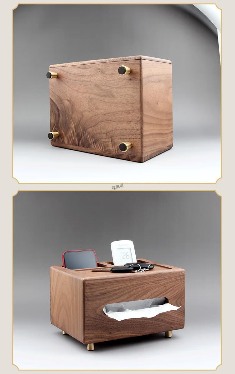 North American black walnut solid wood paper box black walnut tissue box home living room coffee table light luxury remote control elegant trumpet - free big mushroom - solid copper bird North