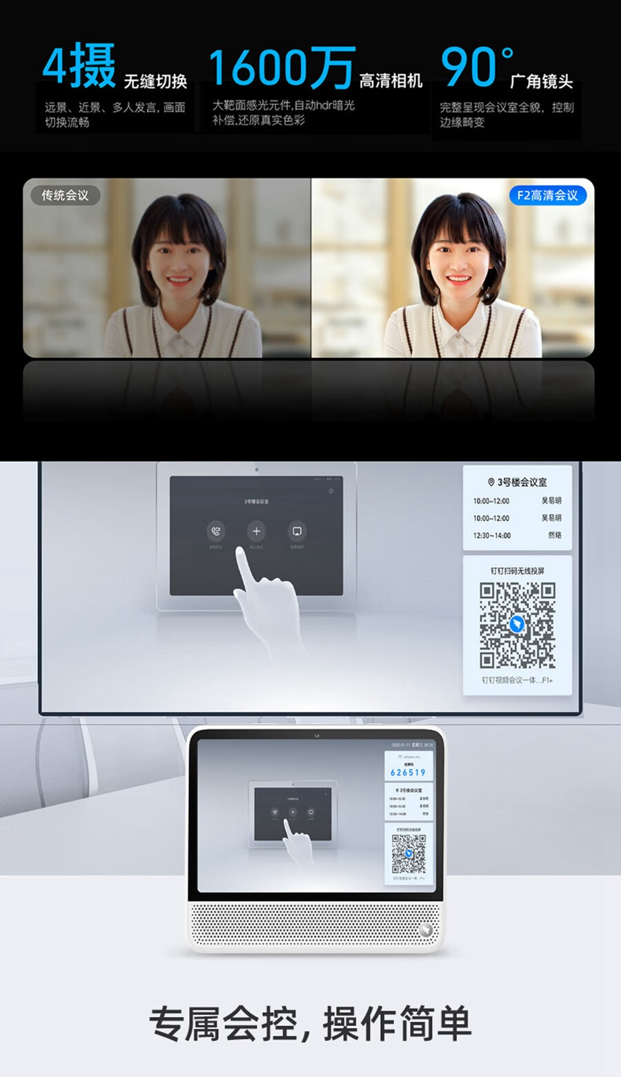 DingTalk new product F2 video conferencing terminal all-in-one HD 4-camera USB peripheral wireless expansion microphone conference control tablet system F2 TV stand + mobile TV stand