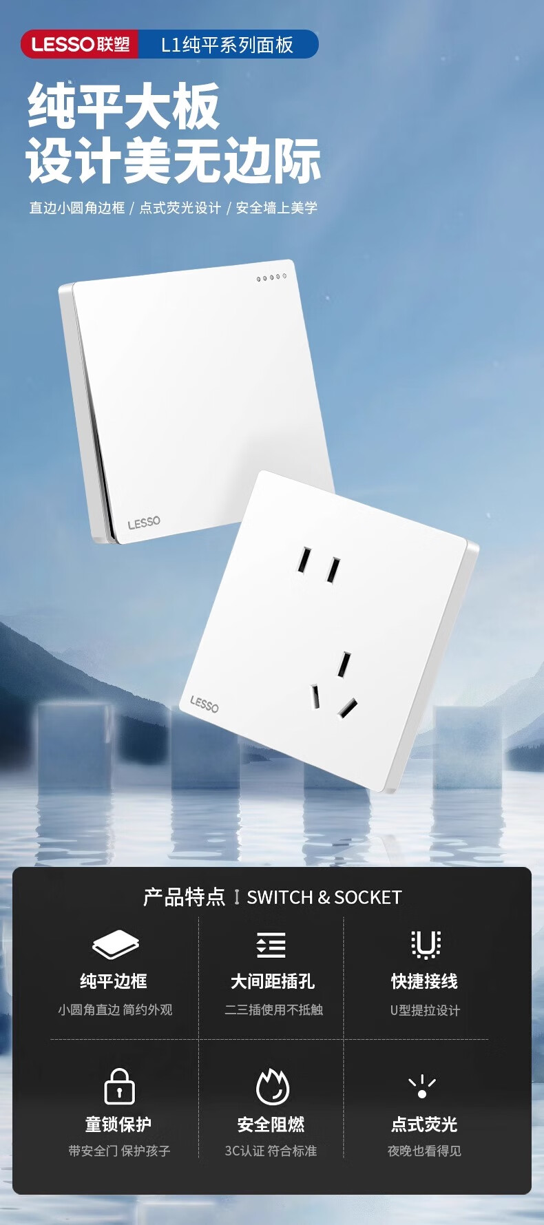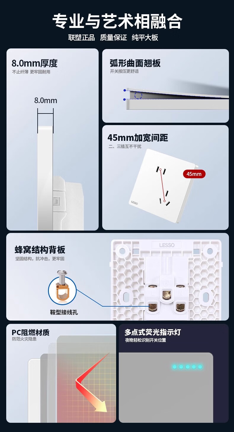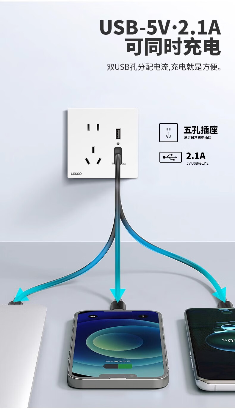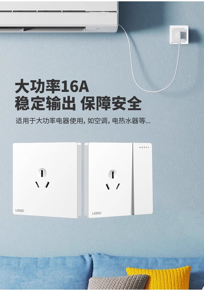 Liansu switch socket panel home concealed one-open five-hole 16a air conditioning socket 5-hole power socket L1 Haoyue white five-hole socket