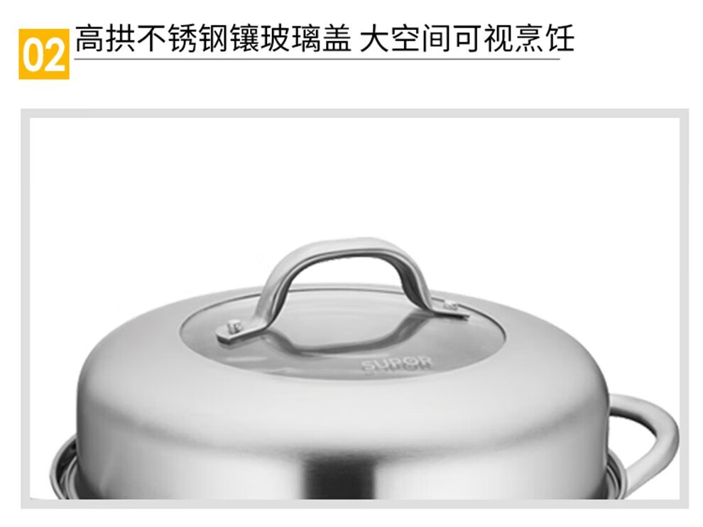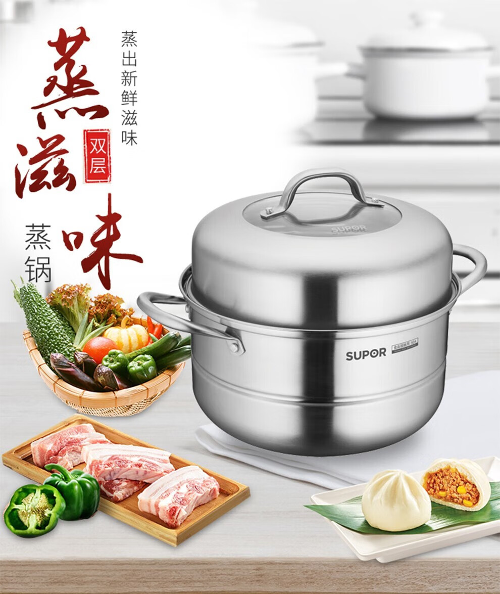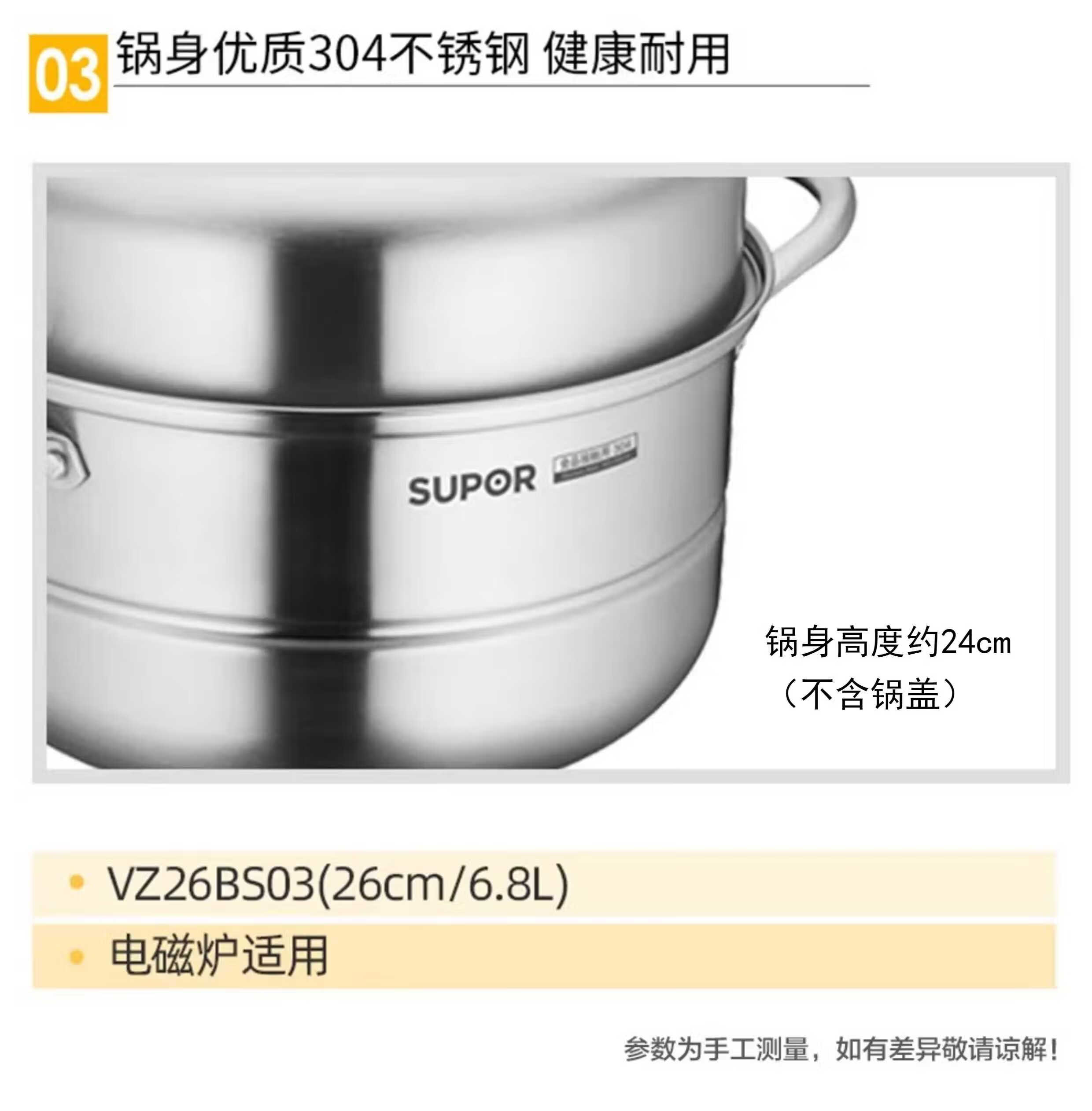 Supor's good helper stainless steel double-layer steamer household multi-layer large VZ26BS03 double-layer steamer vz26bs03 26cm