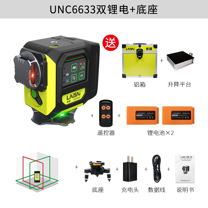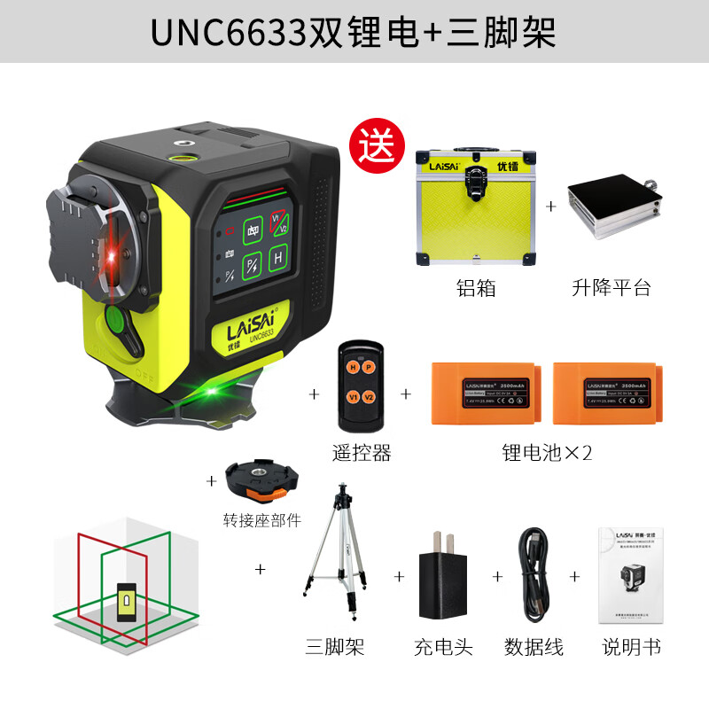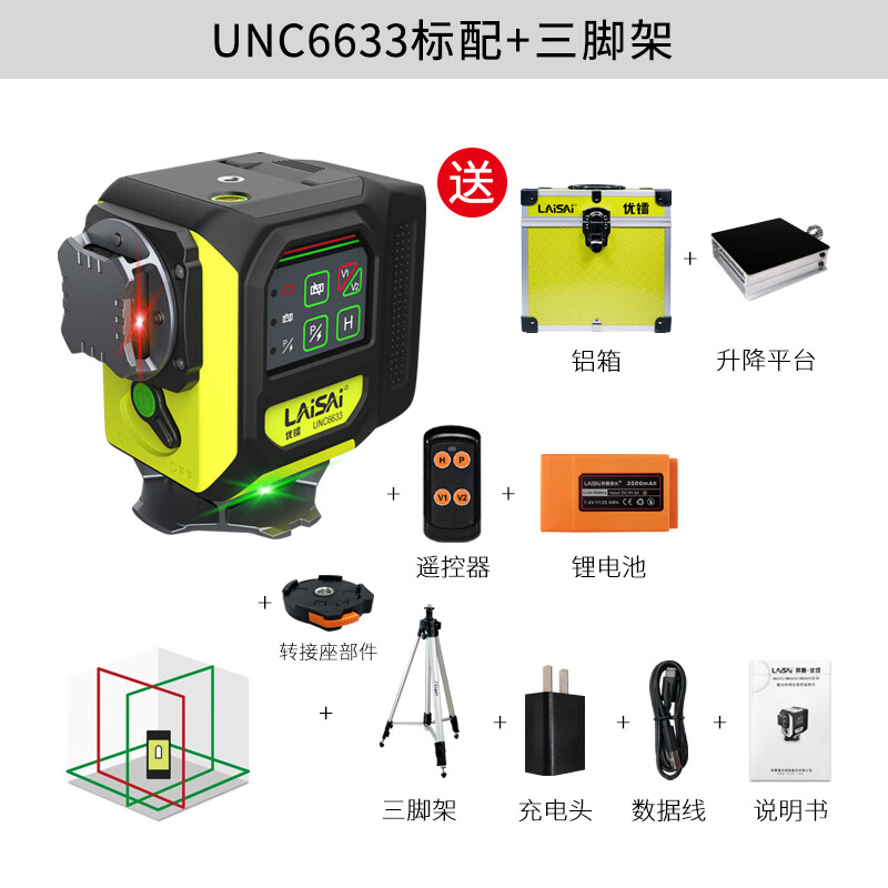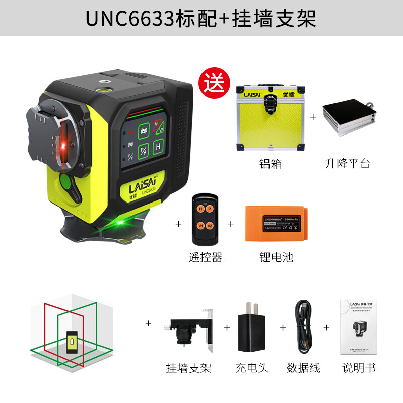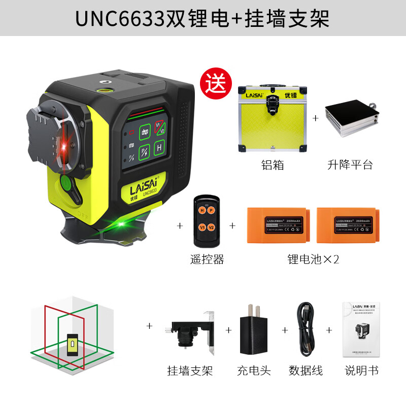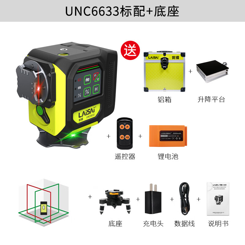 Laisai Laser Excellent Radium UNC6633 two-color 12-ray infrared level meter high-precision strong light thin line automatic leveling water meter UNC6633 standard
