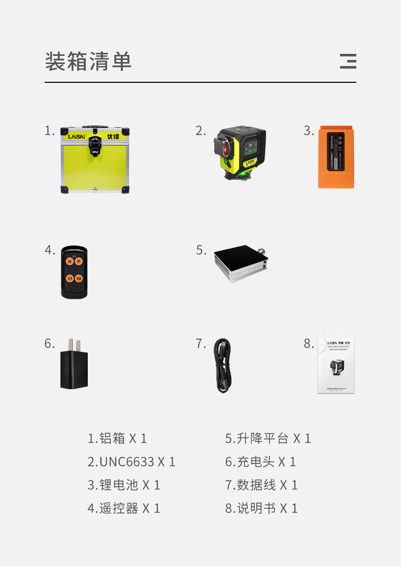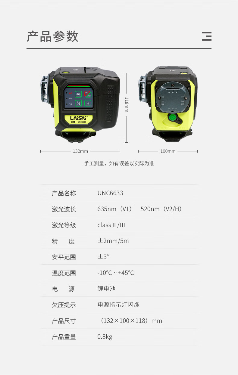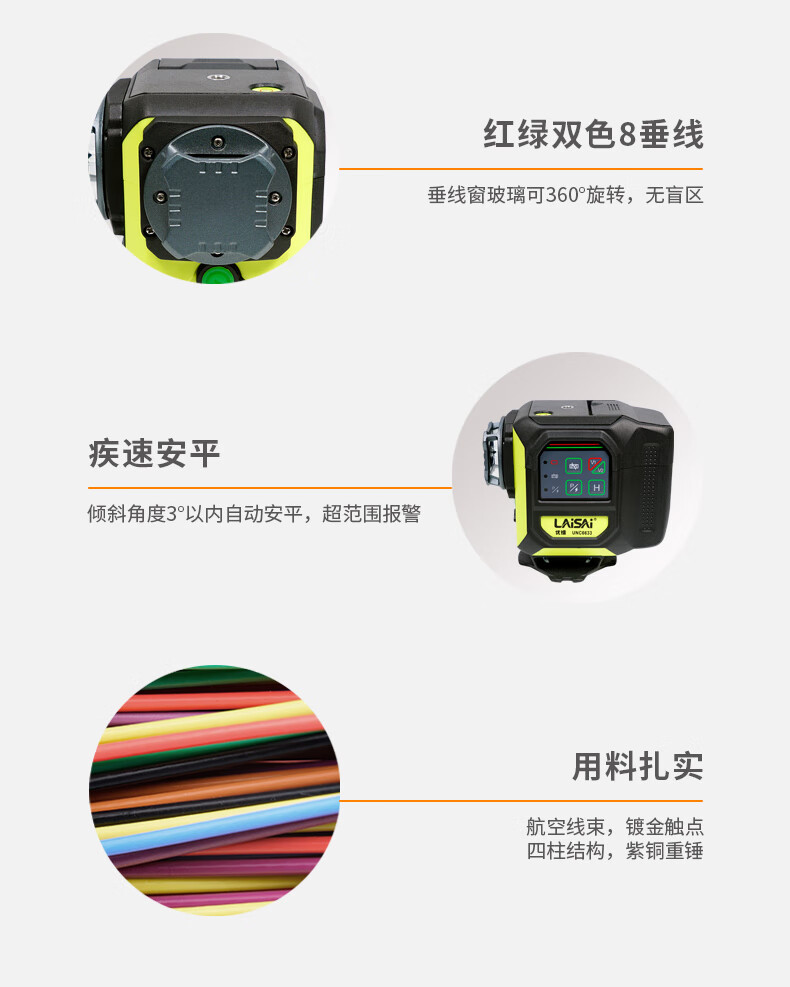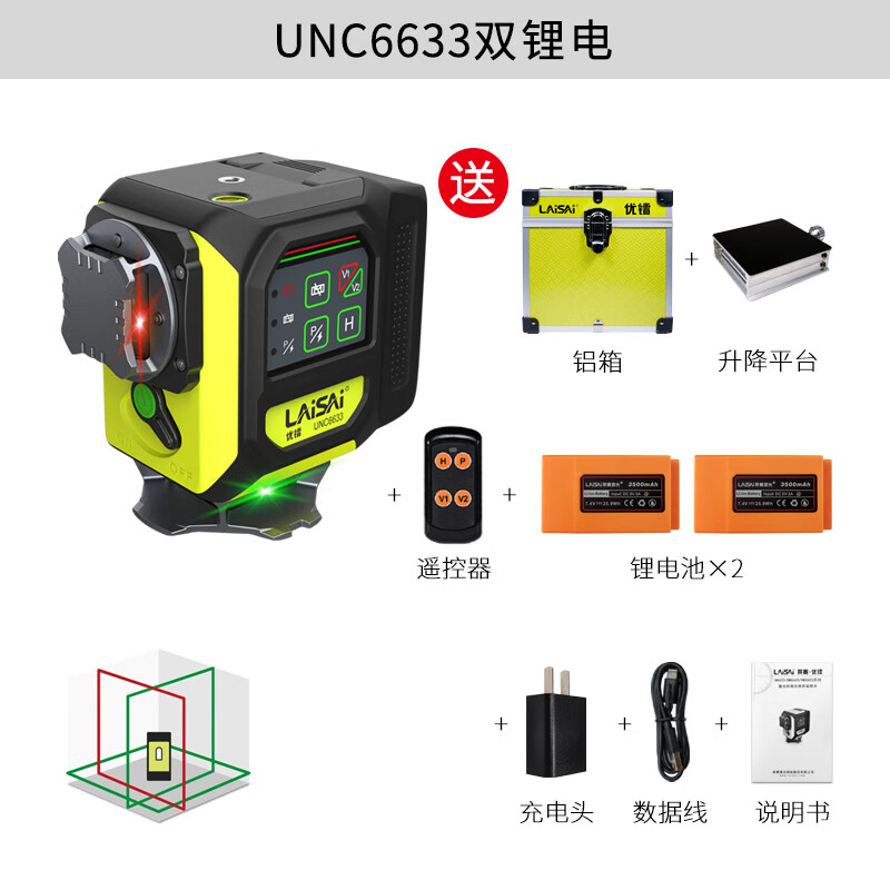 Laisai Laser Excellent Radium UNC6633 two-color 12-ray infrared level meter high-precision strong light thin line automatic leveling water meter UNC6633 standard