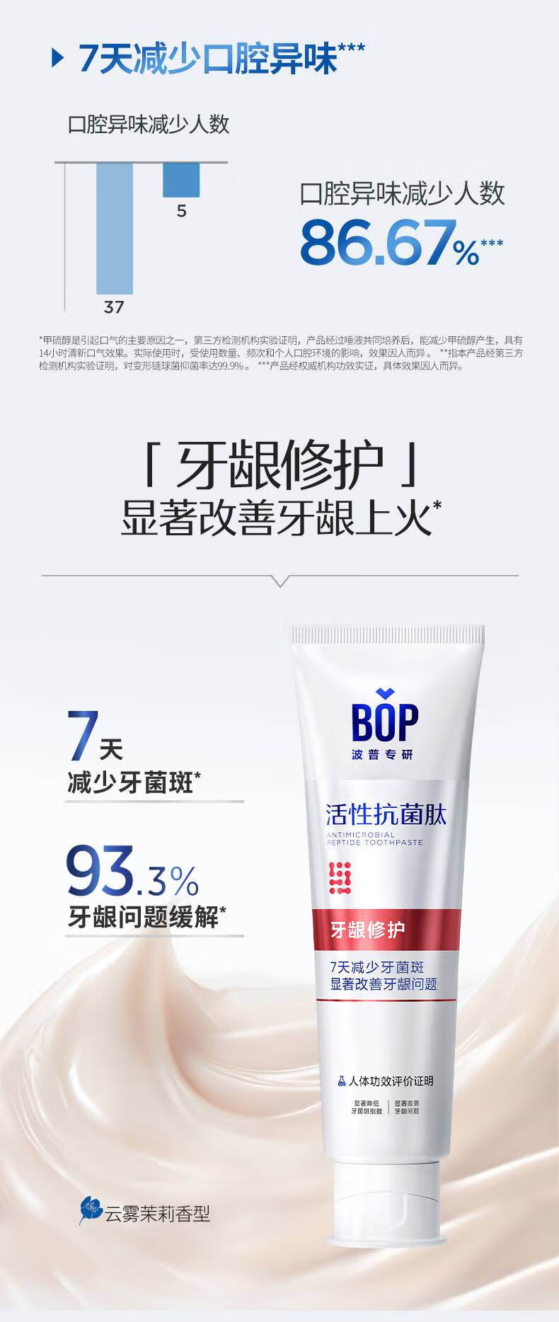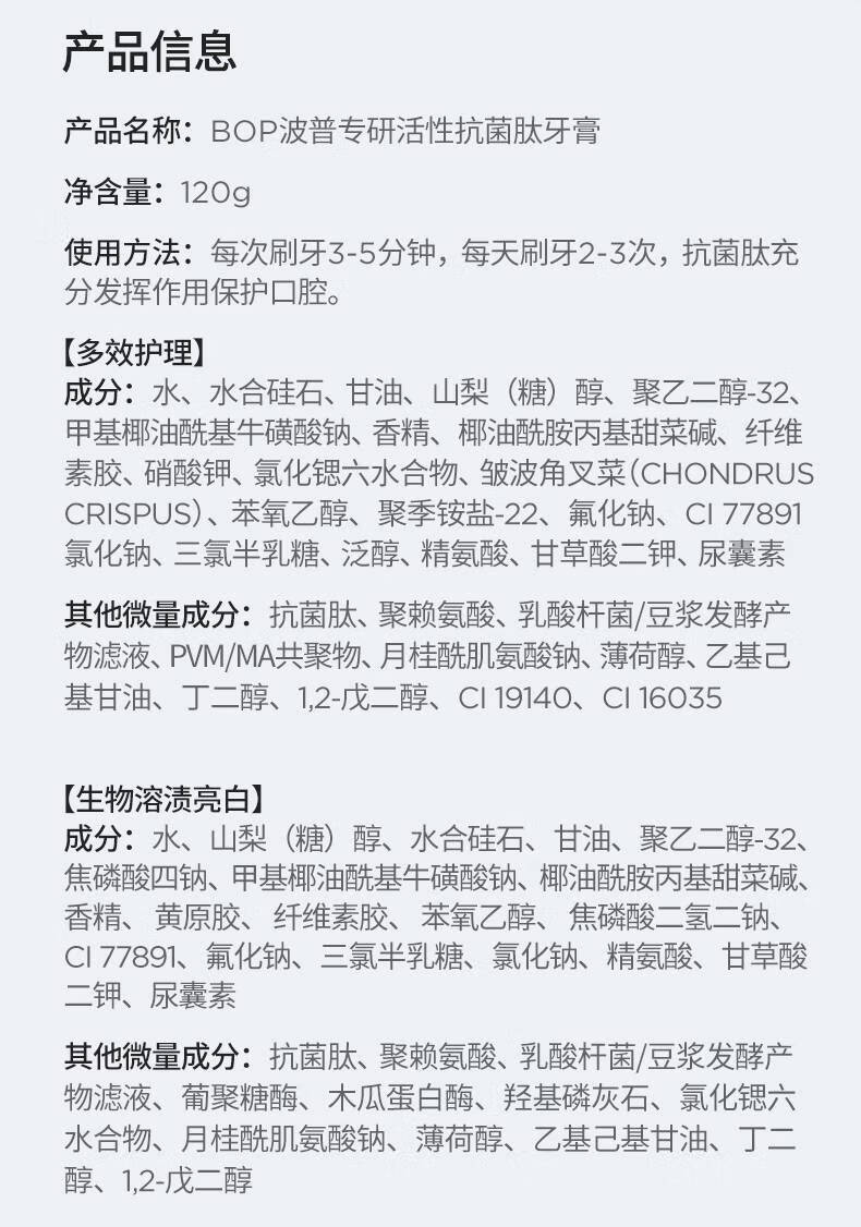 Pop specializes in active antibacterial peptide toothpaste to whiten, freshen breath, repair gums, and improve oral problems such as bad breath. Dissolved whitening 120g*3 pieces. Stock up.