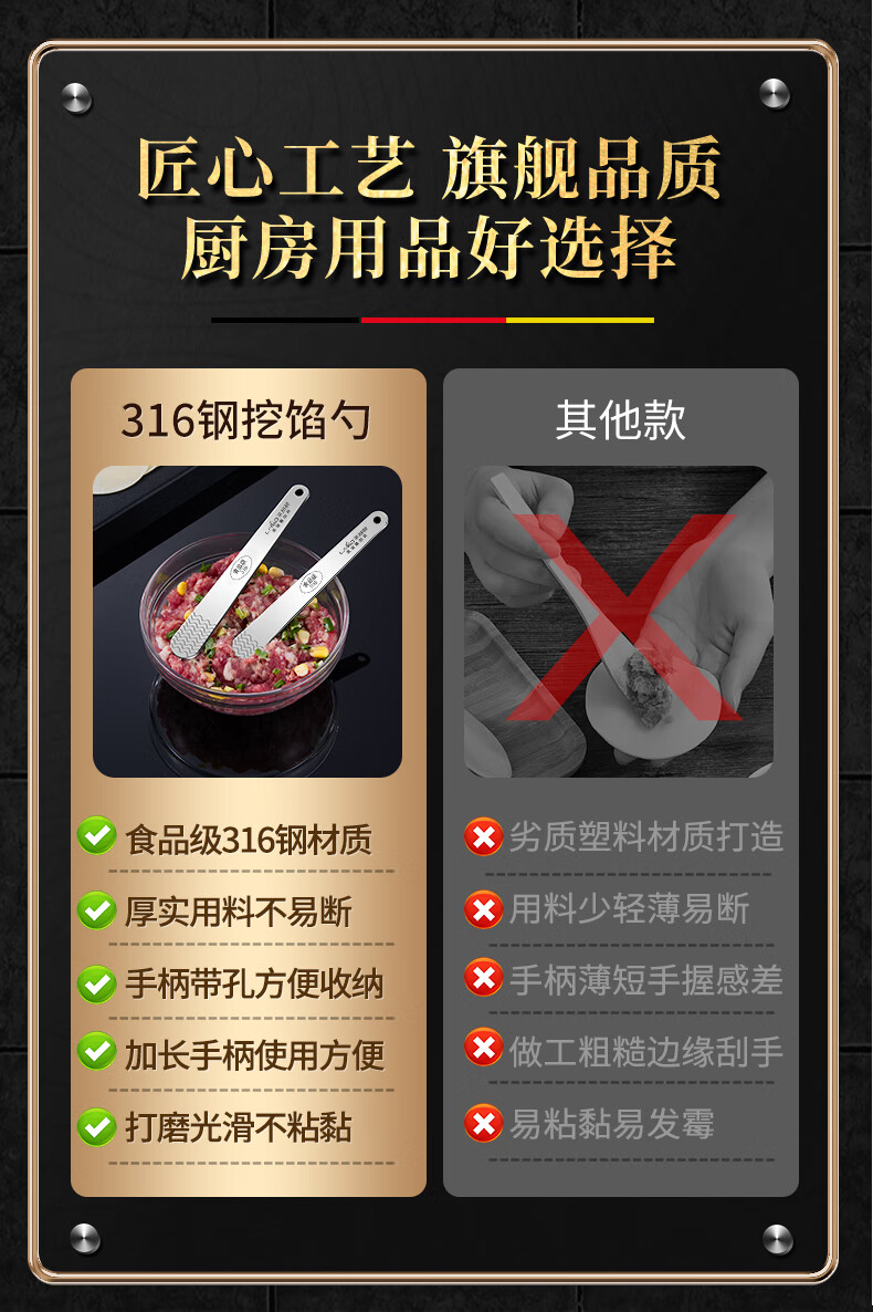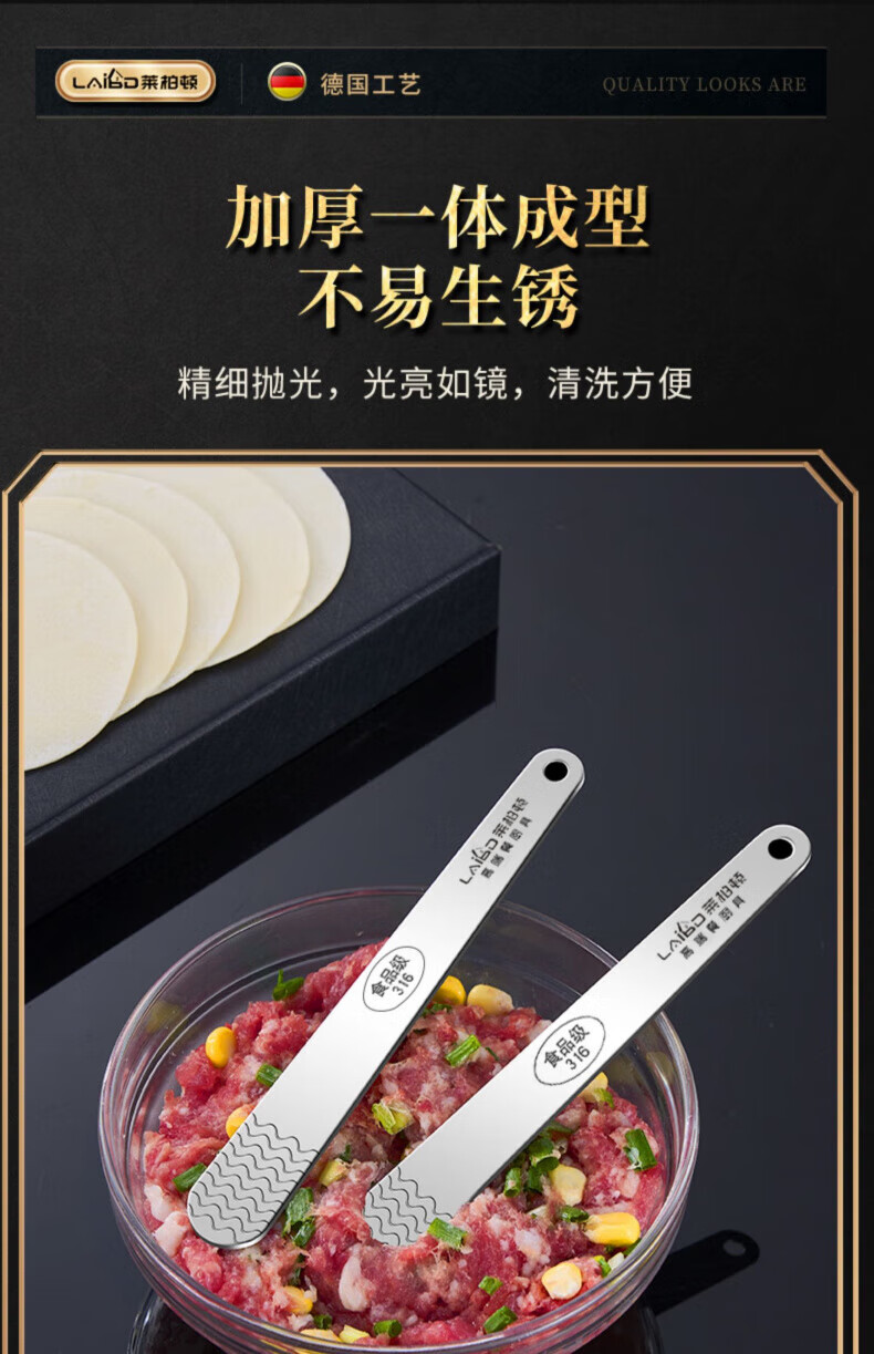 Luluo high-quality stainless steel dumpling artifact new filling spoon special tool for making wonton dumplings flat ruler to pick filling 2 filling spoons thickened 316 stainless steel