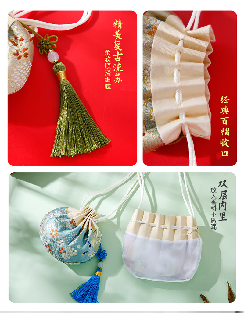 Dragon Boat Festival high-end brocade sachet antique sachet tassel sachet empty bag mosquito repellent car pendant Hanfu red