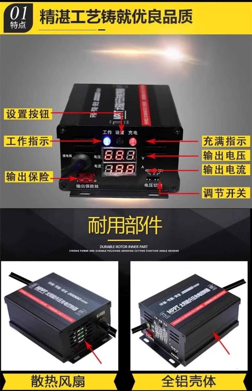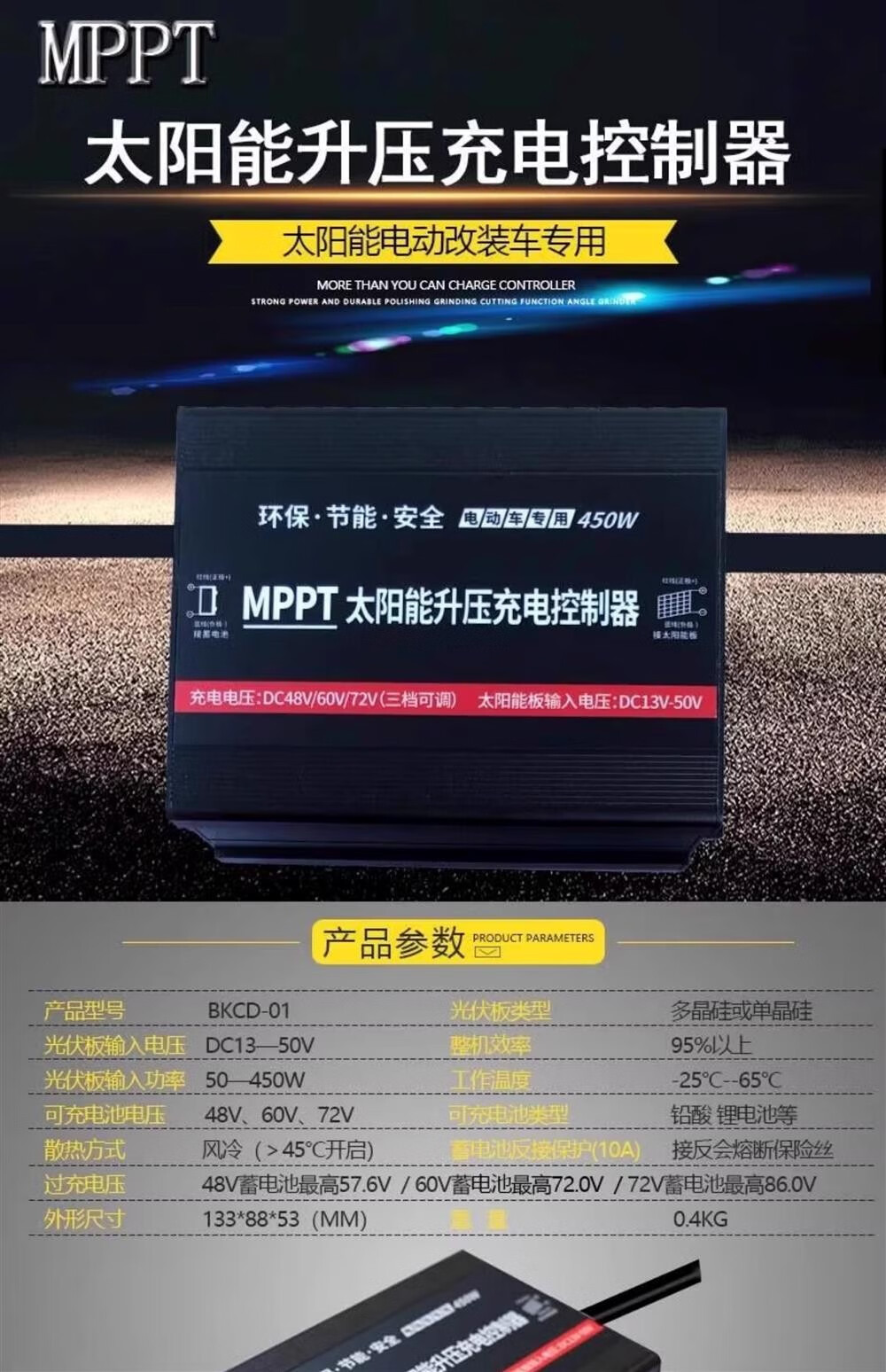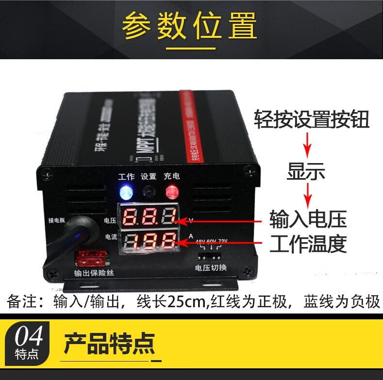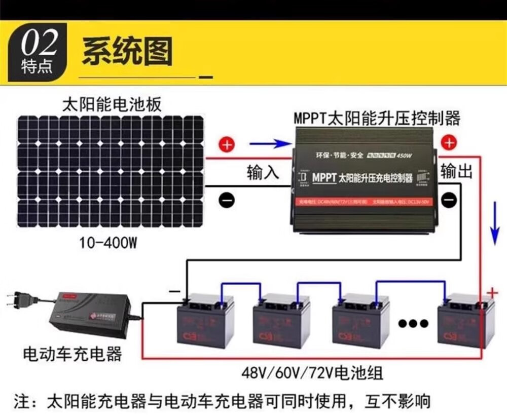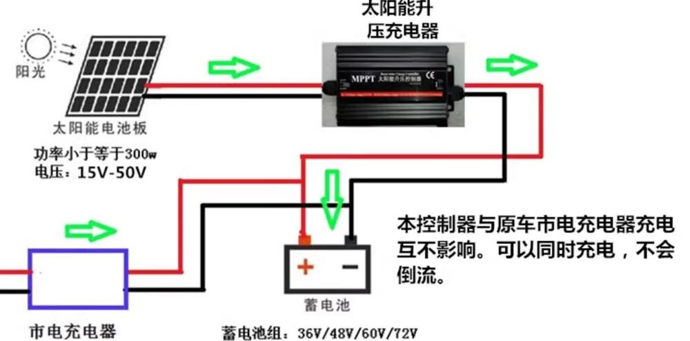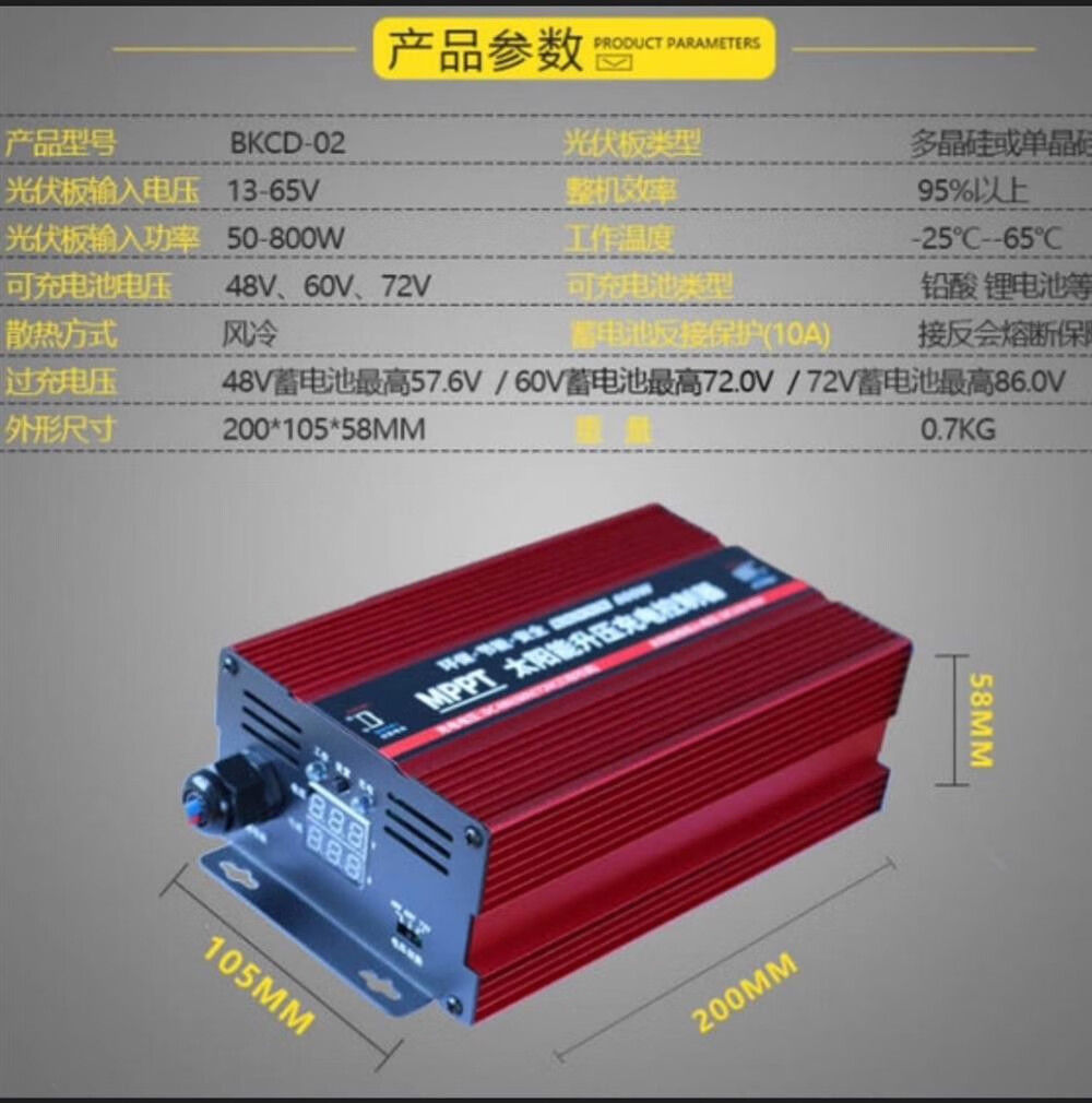 Solar controller MPPT boost battery power generation board 36V48V60V72V electric vehicle battery car charger 24V36V48V60V72V300W boost