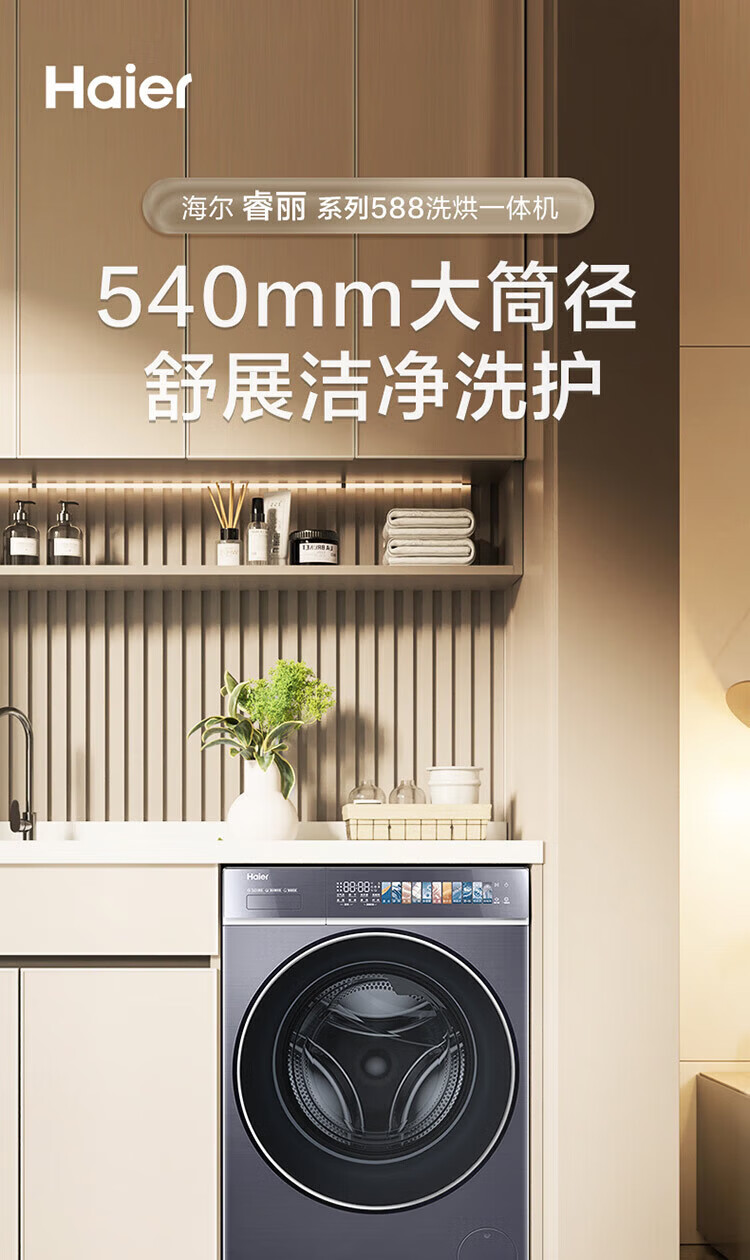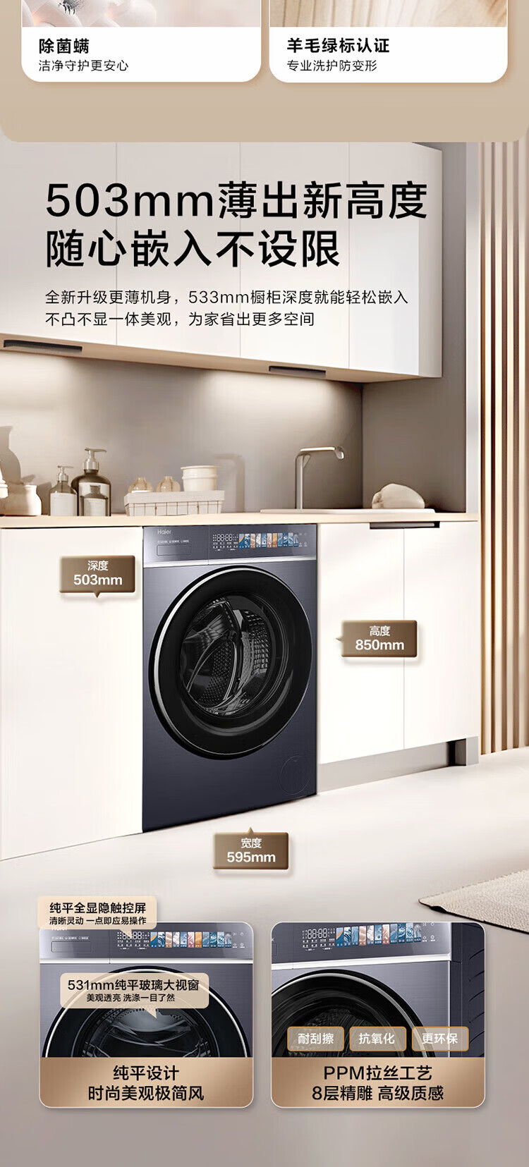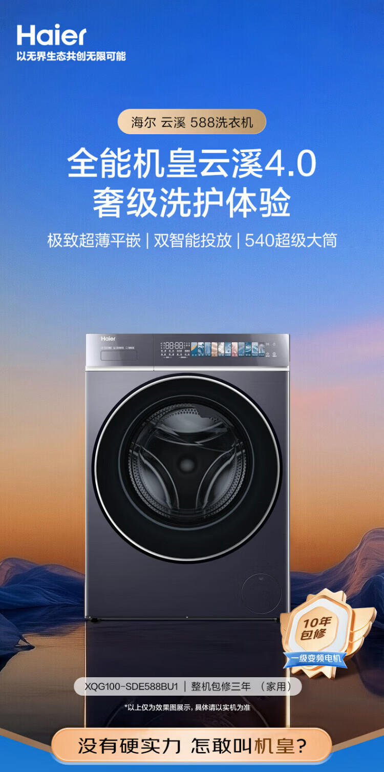 Haier Yunxi 4.0 ultra-thin 588 drum washing machine fully automatic 10kg ultra-thin flat screen fully embedded 2.0 water-saving essence washing dual smart input home appliance subsidy 15% off 10kg-588 washing and drying | 1.23 high net ratio + dual smart input + large bucket