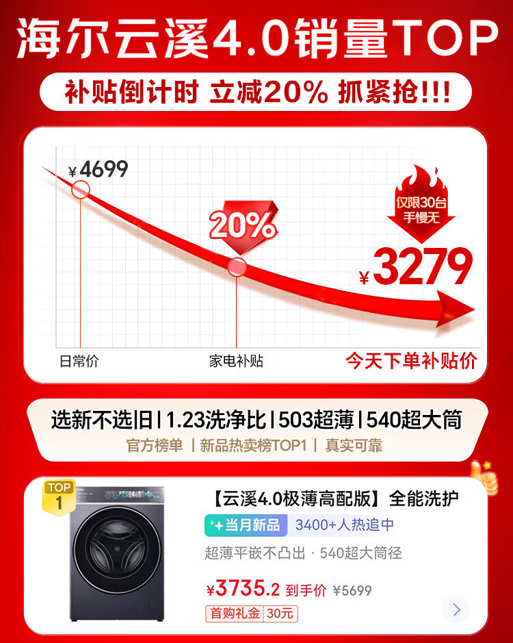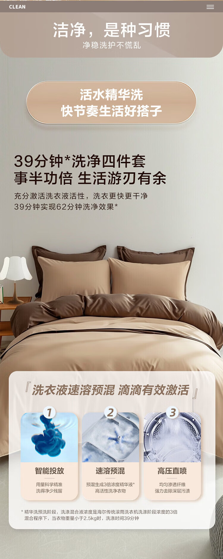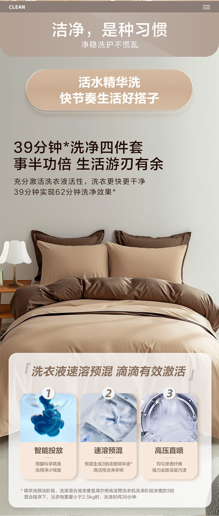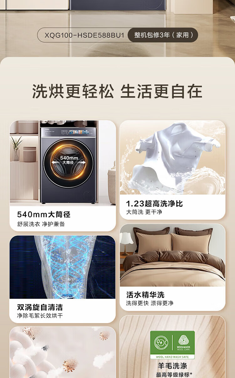 Haier Yunxi 4.0 ultra-thin 588 drum washing machine fully automatic 10kg ultra-thin flat screen fully embedded 2.0 water-saving essence washing dual smart input home appliance subsidy 15% off 10kg-588 washing and drying | 1.23 high net ratio + dual smart input + large bucket