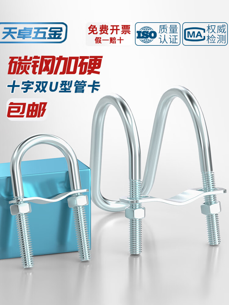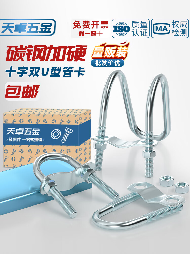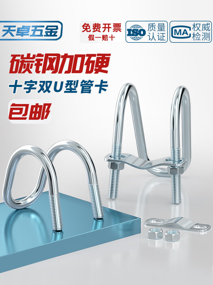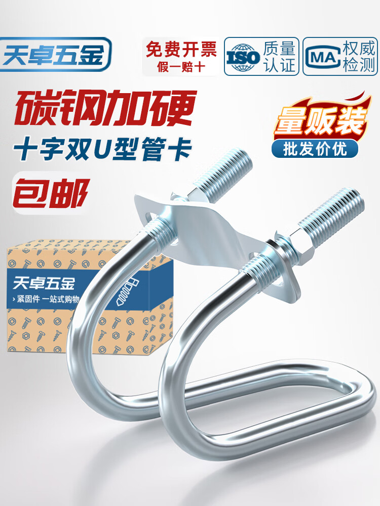 Tianzhuo Hardware galvanized cross pipe fastener steel pipe connector U-shaped scaffolding fixing clamp double U-shaped screw cross 1 inch/1 inch 32-32 8 pcs