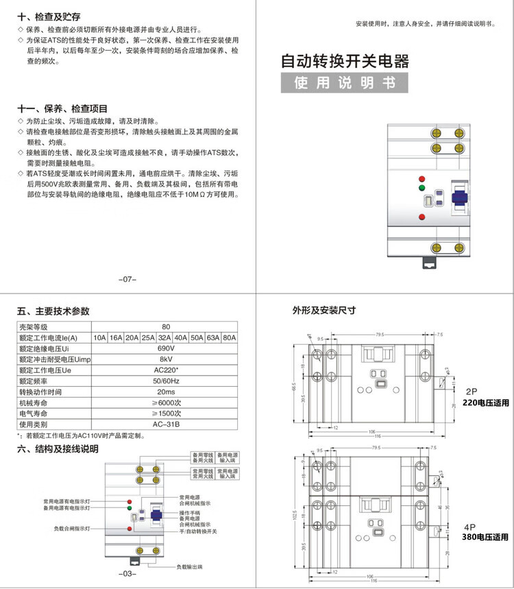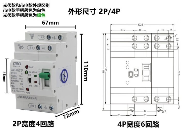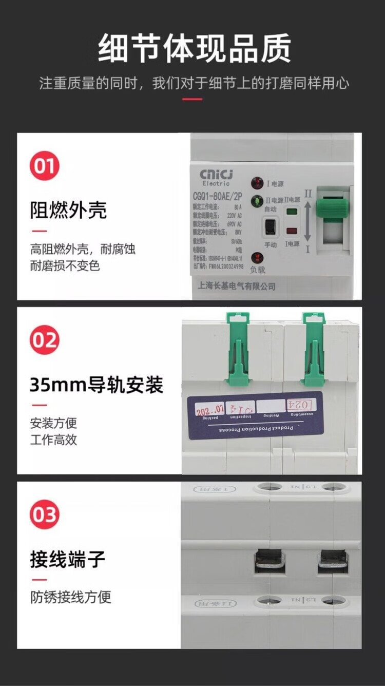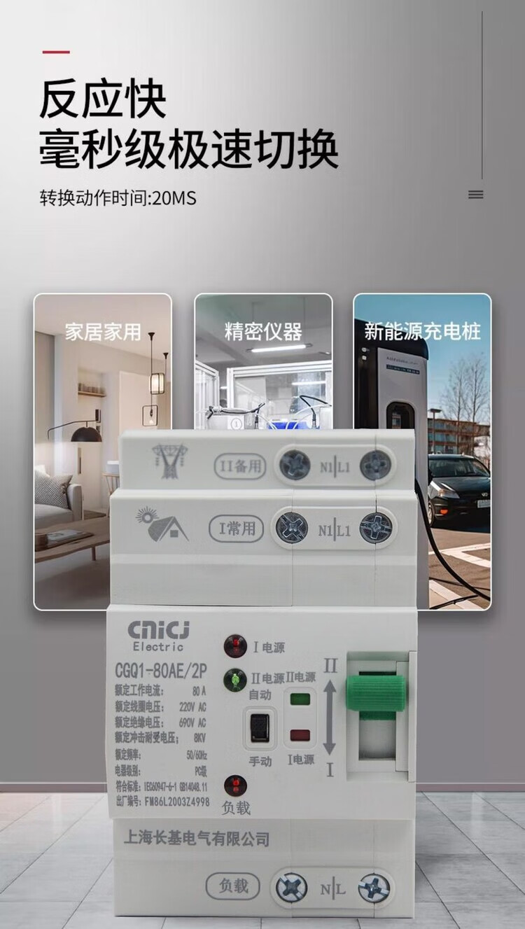 Dual power automatic transfer switch, uninterrupted power supply, uninterrupted photovoltaic household millisecond switching, ATS mains 220v 2P photovoltaic model (for inverter only), universal current within 80A, millisecond switching