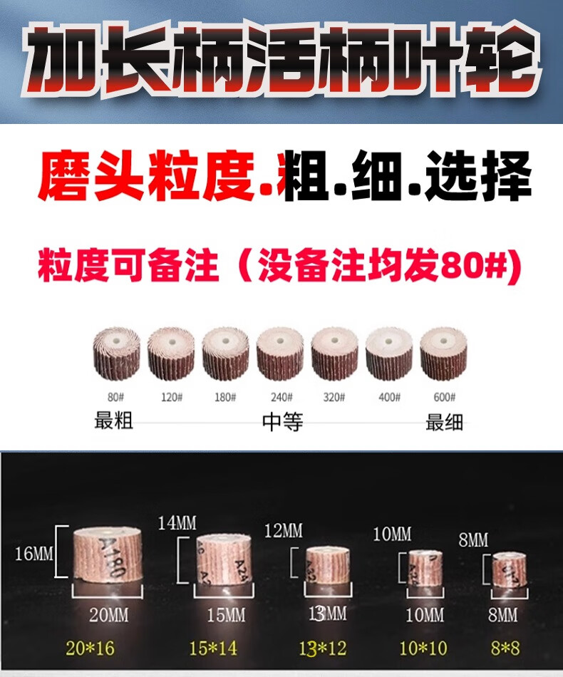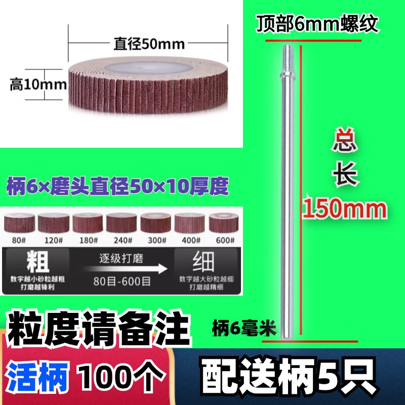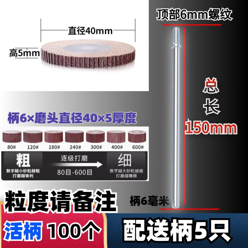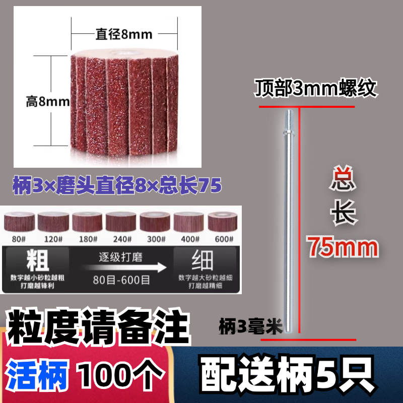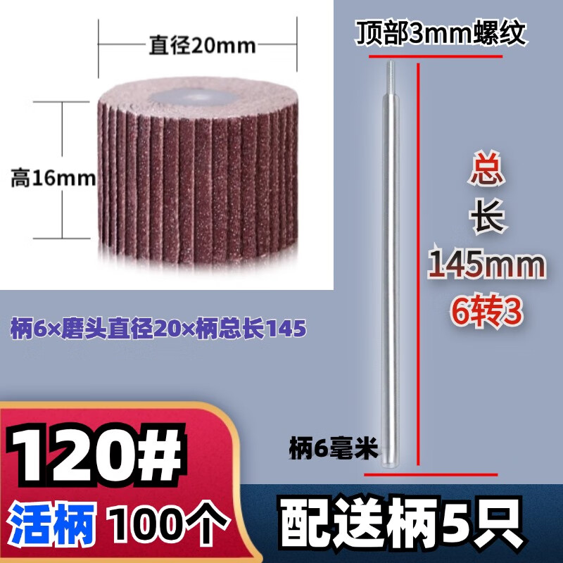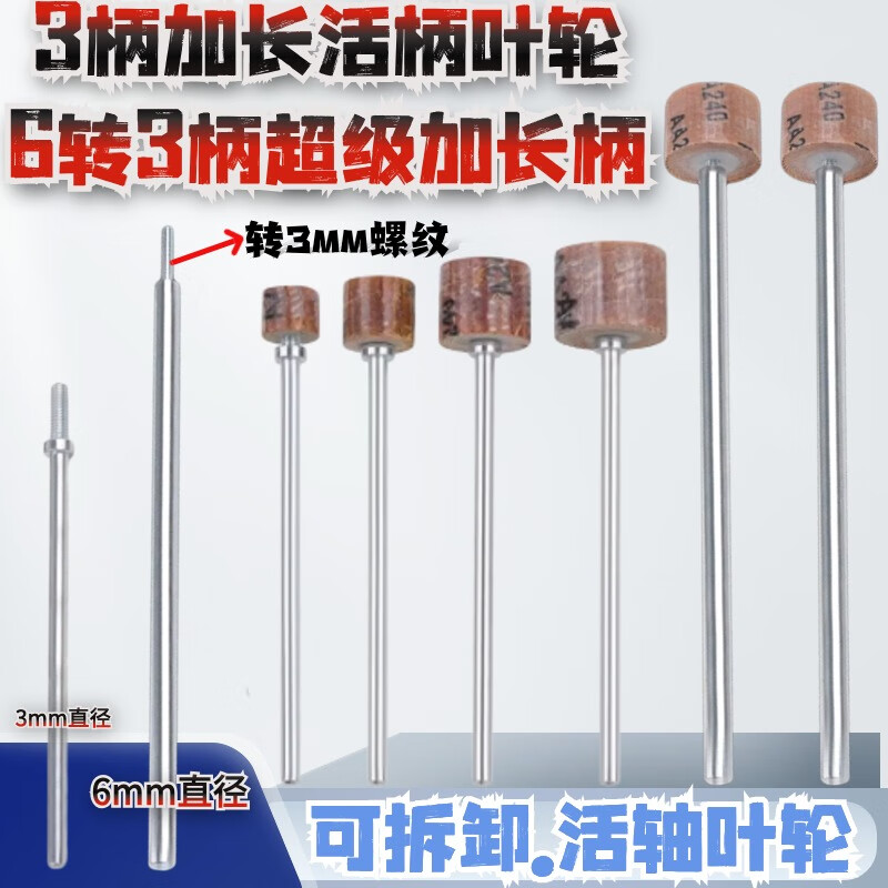 He Jiagong gauze live handle grinding head live handle impeller polishing head 6 handles turn 3mm extension rod shutter polishing wheel 3*20 grit remarks 100 pieces (75mm long handle 5 pieces)