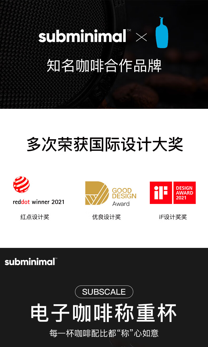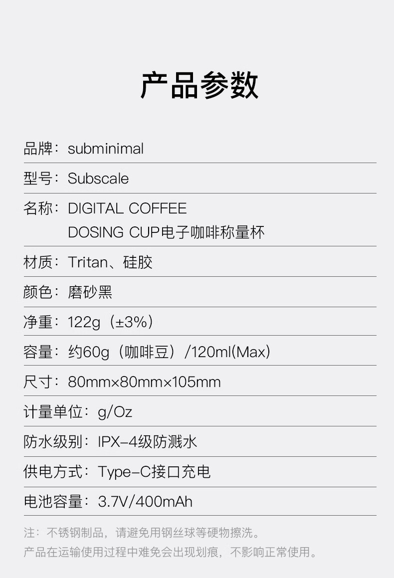 SUBMINIMALSubminimal electronic coffee weighing cup espresso coffee scale hand brewing electronic weighing bean cup waterproof electronic scale matte black electronic coffee measuring cup