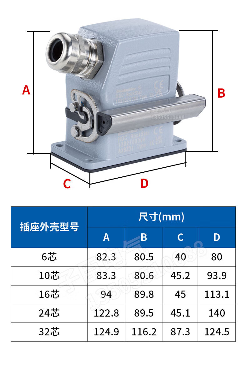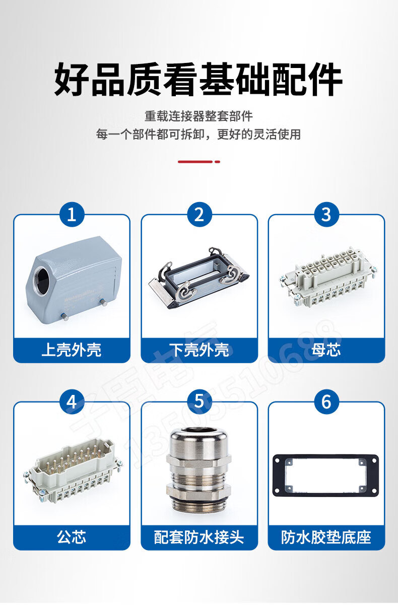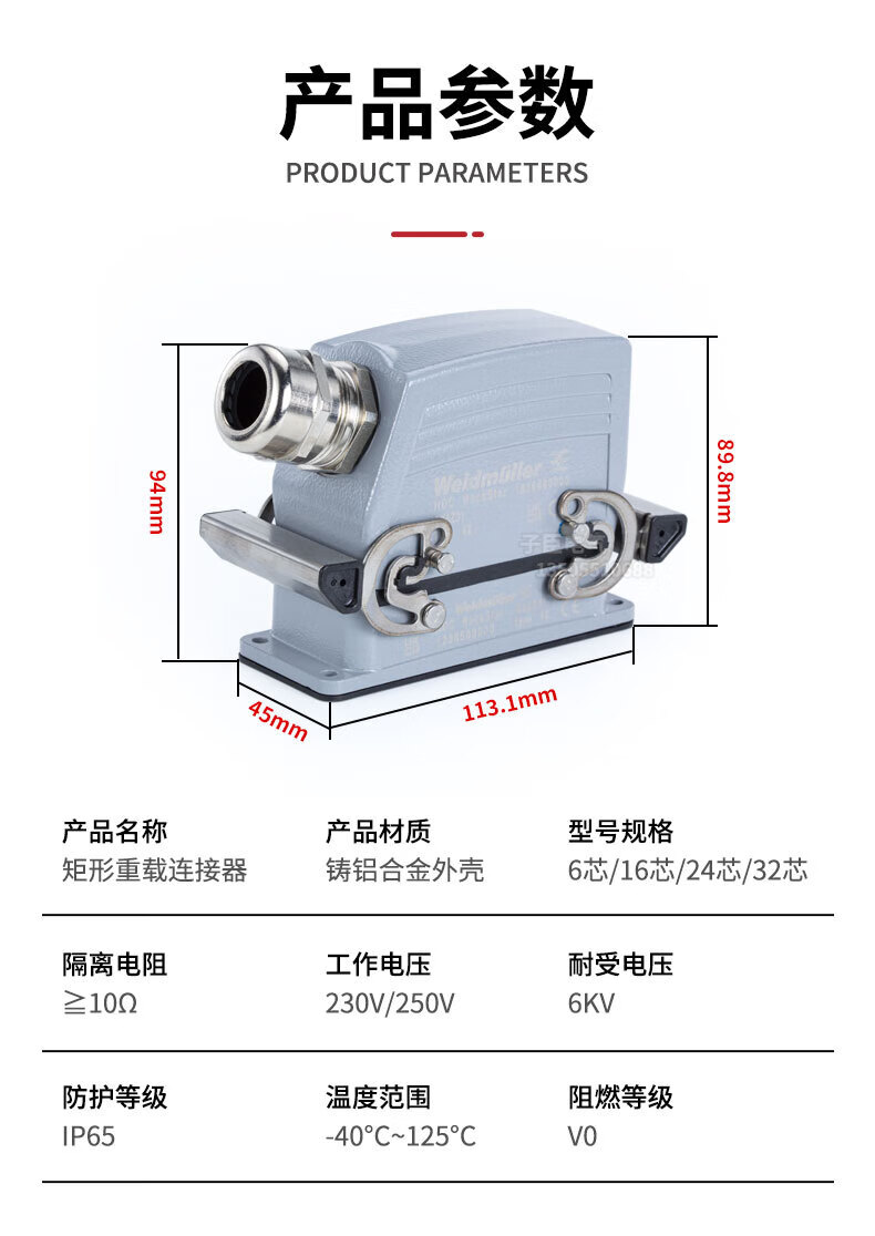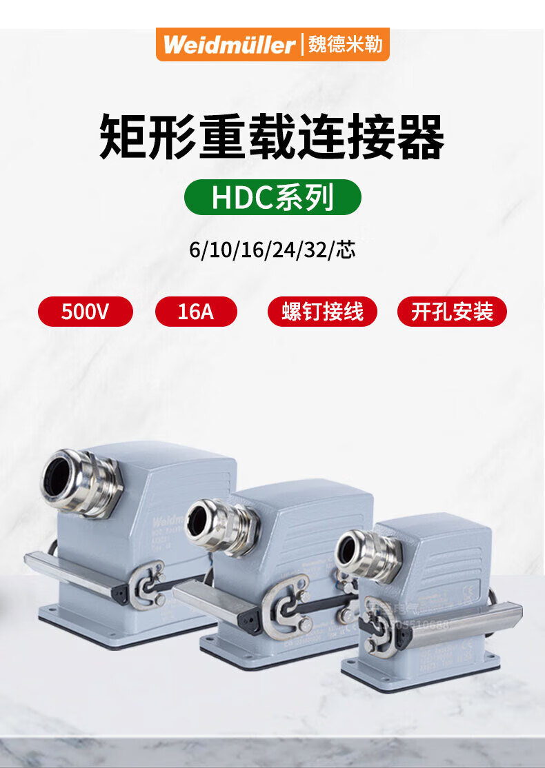 Weidmüller heavy-duty connector HDC HE-6P 10 16 24-pin 32-pin rectangular aviation plug socket 6-pin heavy-duty connector HDC-KIT-HE06.100