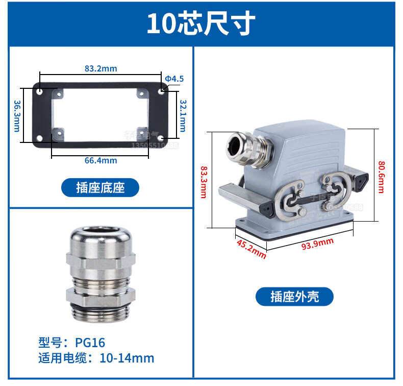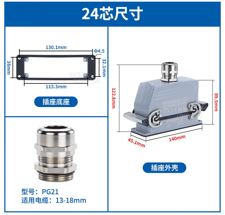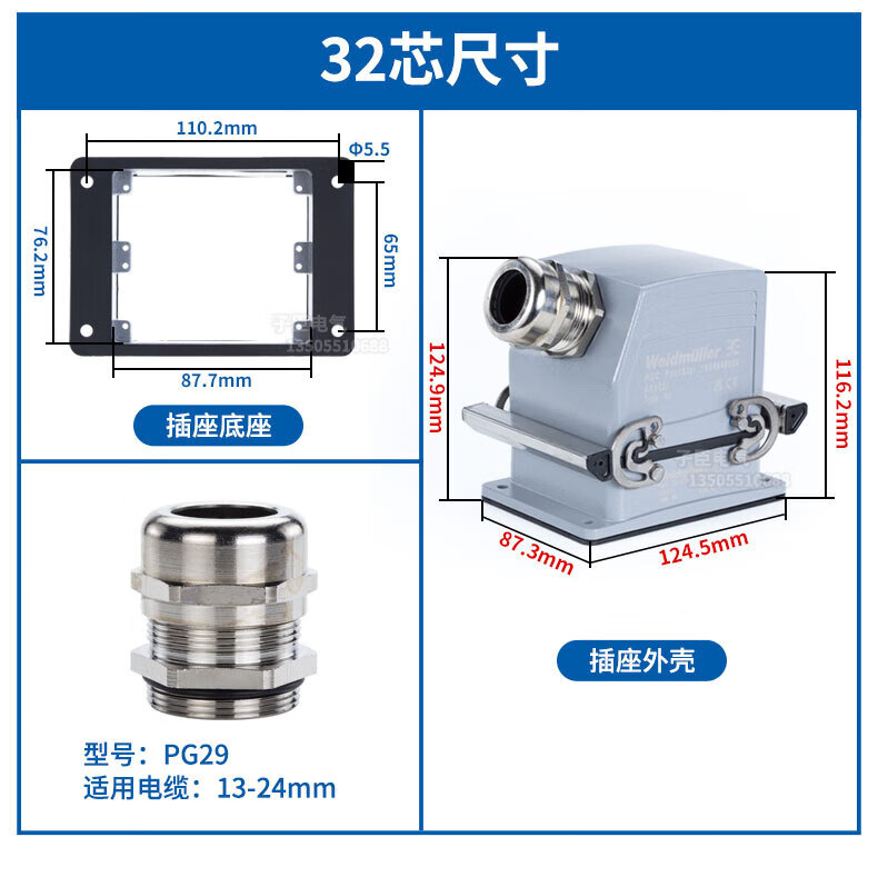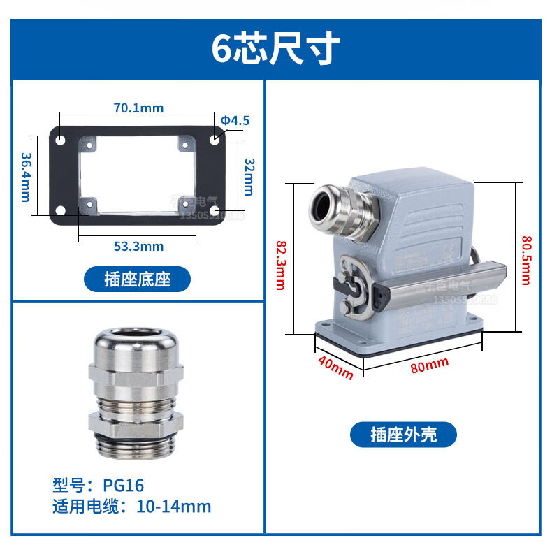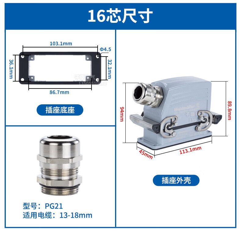 Weidmüller heavy-duty connector HDC HE-6P 10 16 24-pin 32-pin rectangular aviation plug socket 6-pin heavy-duty connector HDC-KIT-HE06.100